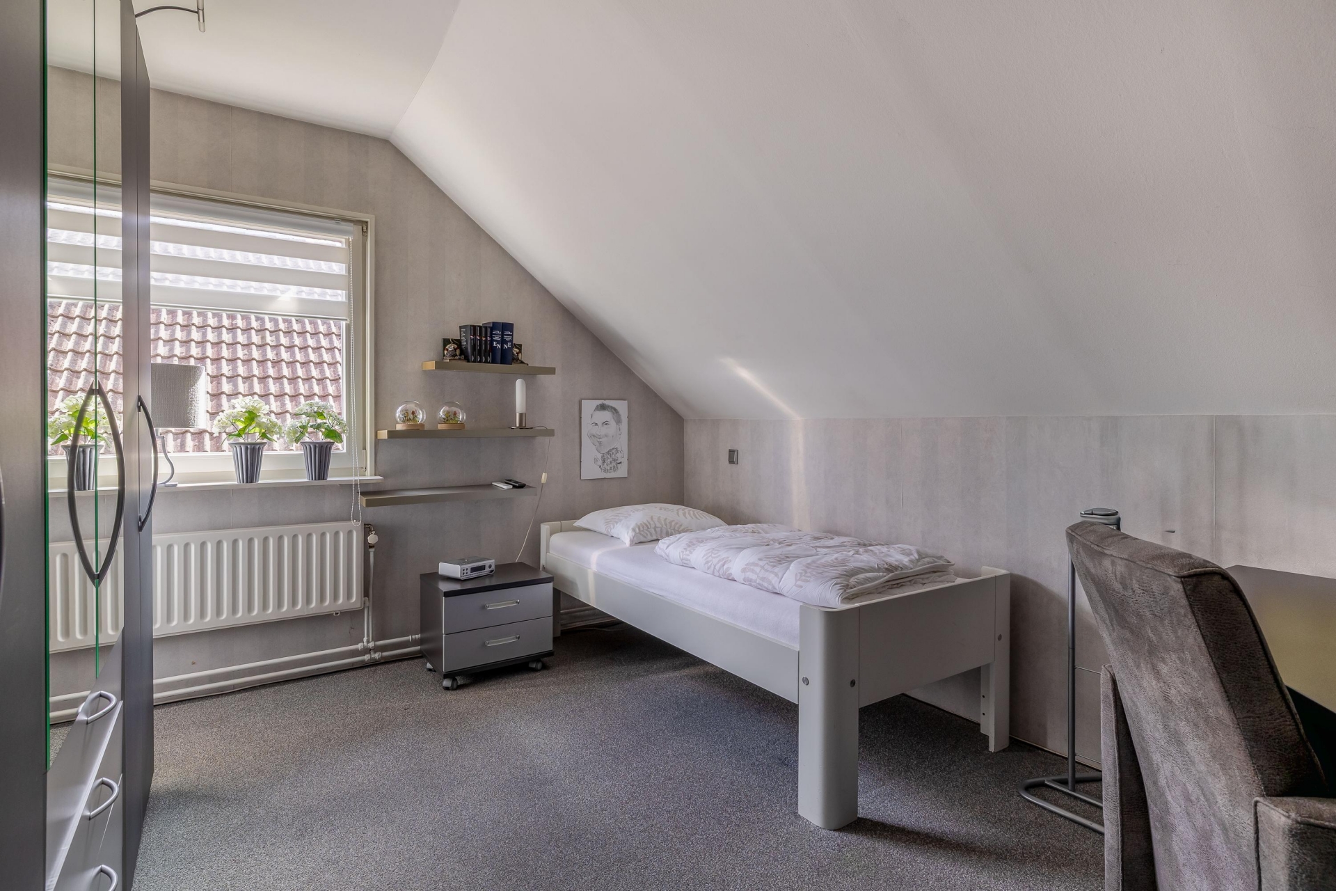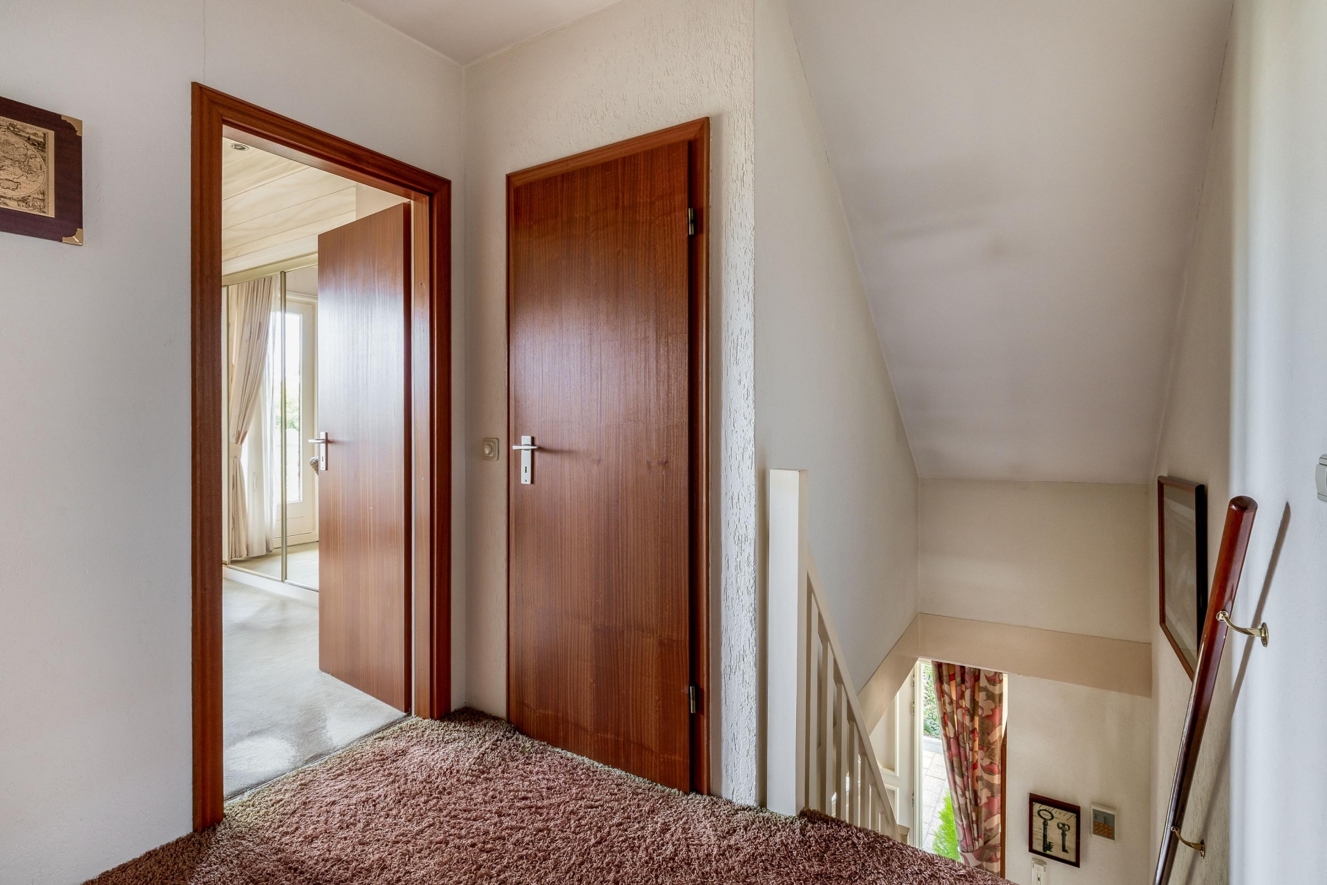 Op de eerste verdieping vind je nog drie slaapkamers van goed formaat. De grootste slaapkamer heeft toegang tot het balkon, wat zorgt voor een extra stukje buitenruimte. Daarnaast is er een tweede badkamer aanwezig, wat het huis ook geschikt maakt voor grotere gezinnen of logees.