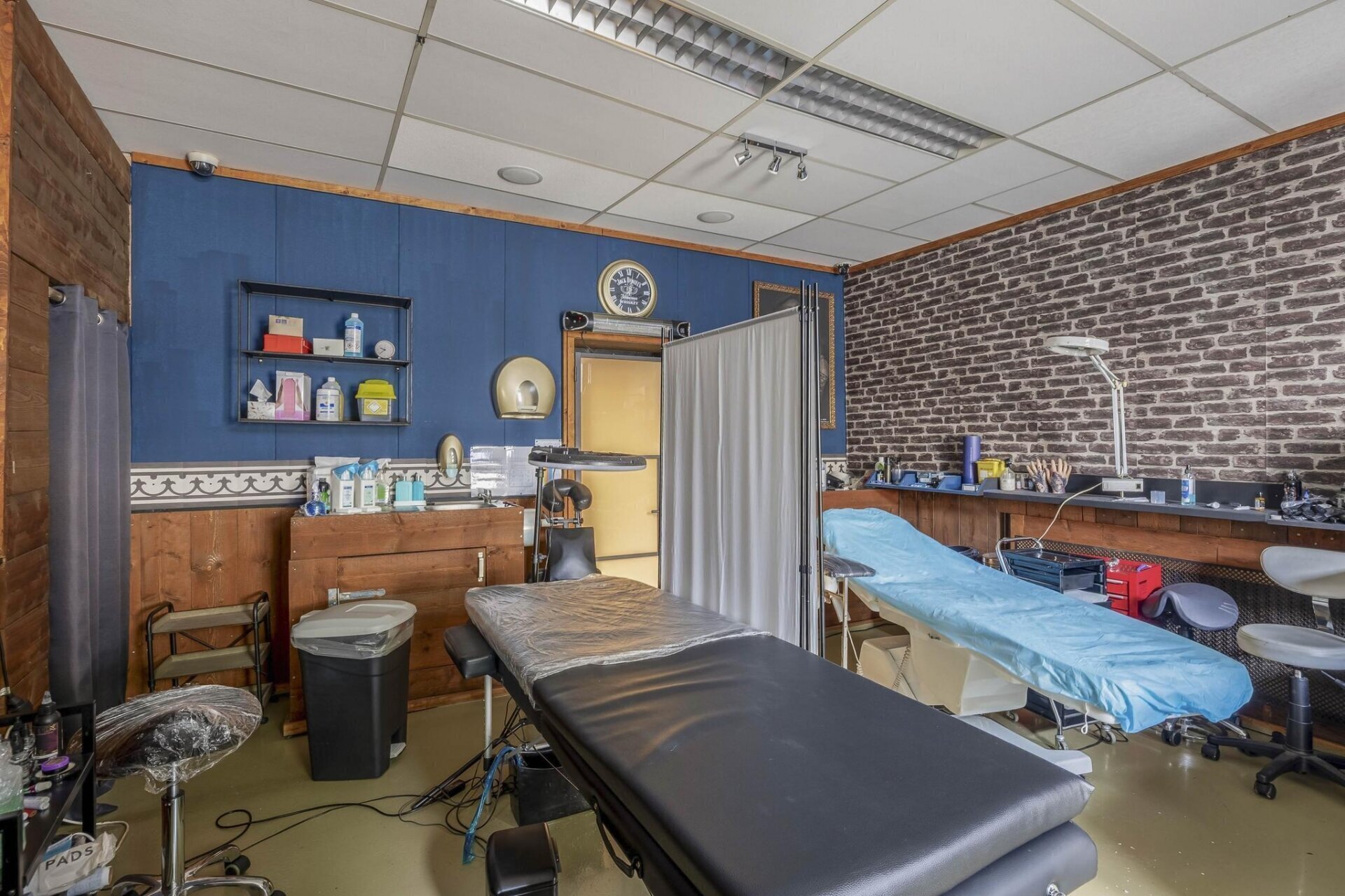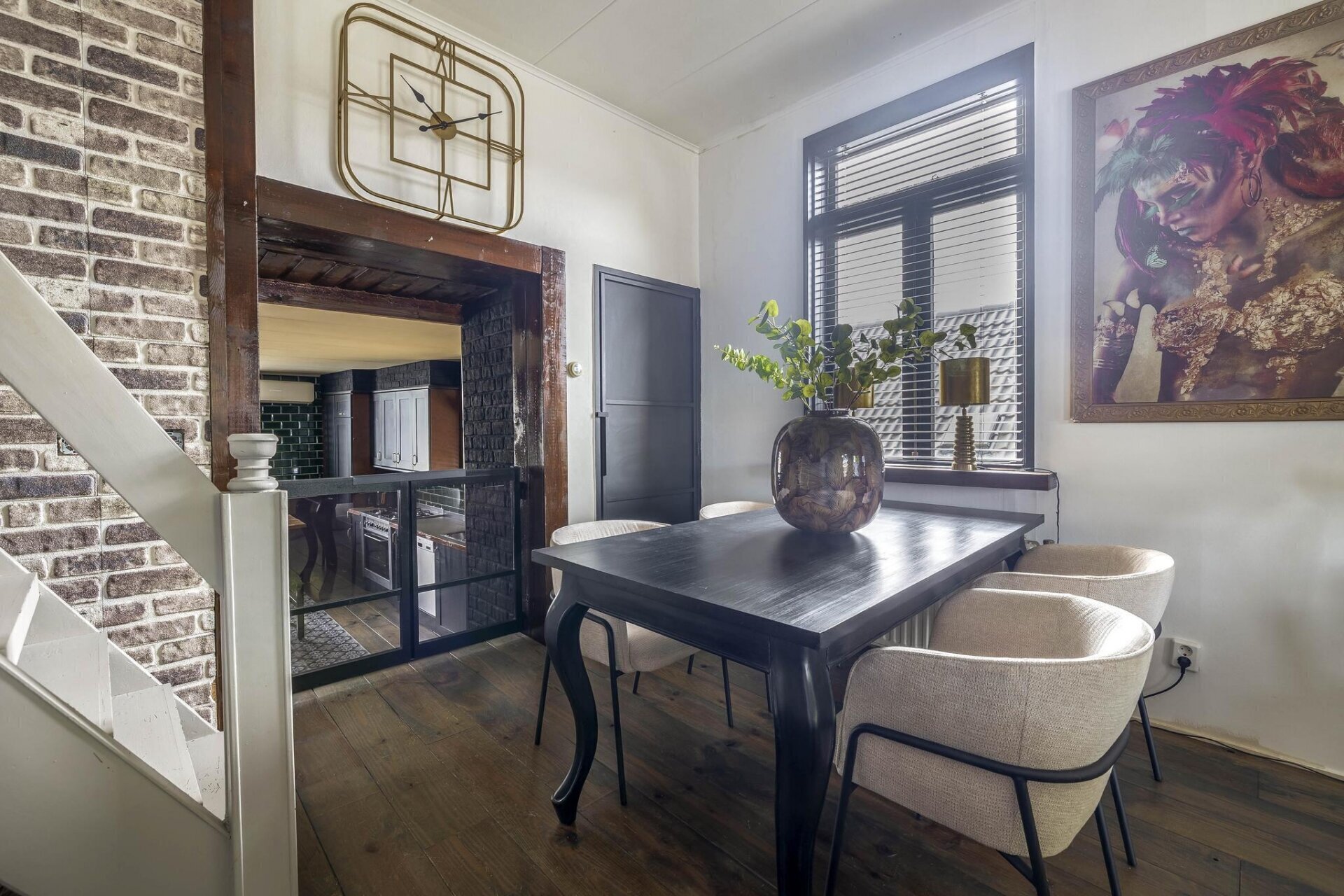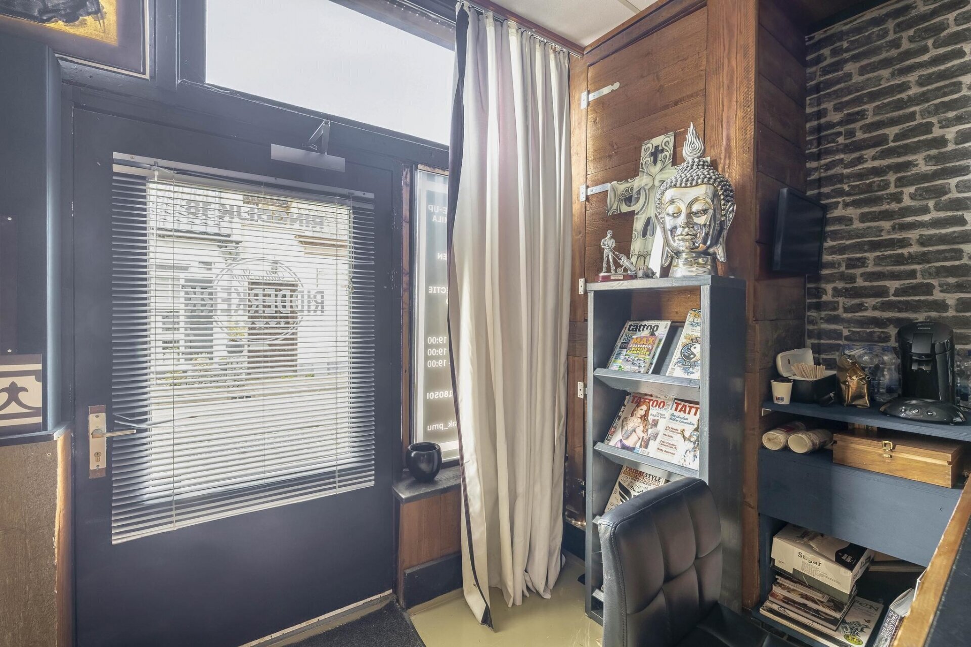 De begane grond heeft twee toegangen: een centrale entree naar de woonverdieping én een eigen ingang voor de winkelruimte aan de voorzijde. Deze ruimte is momenteel ingericht als tattooshop, maar laat zich gemakkelijk aanpassen aan andere functies – van salon tot galerie of praktijkruimte. Liever meer woonruimte? Ook dat is mogelijk. Door de praktische indeling is deze verdieping uitstekend in te delen als extra woonruimte. Achter de winkel bevinden zich twee interne bergingen en een separaat toilet.