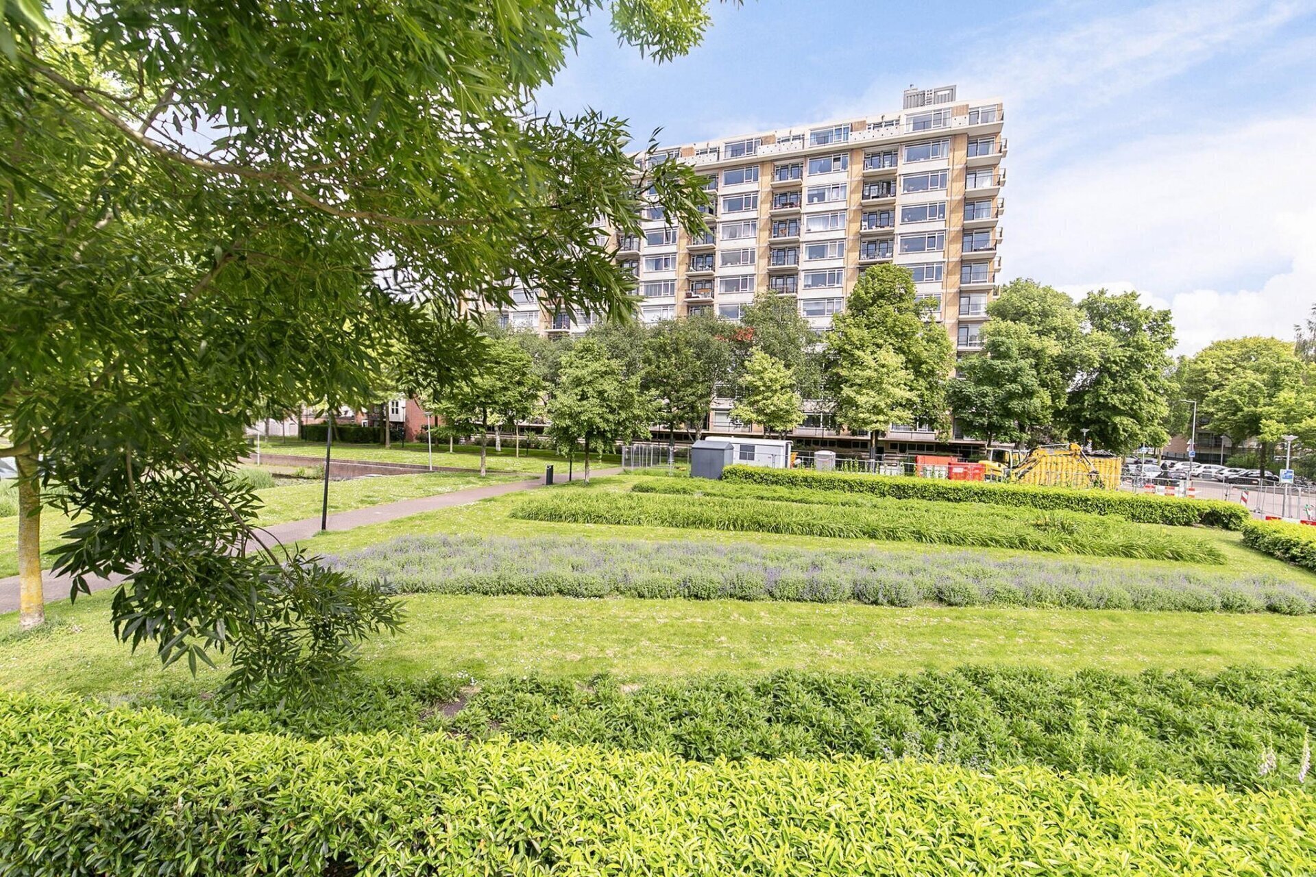 Ontworpen door architect W.J. Fiolet, is in 1999 uitgeroepen tot gemeentelijk monument. Dit vrijstaande gebouw is gelegen aan een plantsoen met vijver en een gemeenschappelijke tuin. Het complex is een van de weinige hoogbouwcomplexen in de wijk en valt daardoor direct op. U geniet hier van de charme van een historisch pand gecombineerd met de voordelen van moderne voorzieningen.