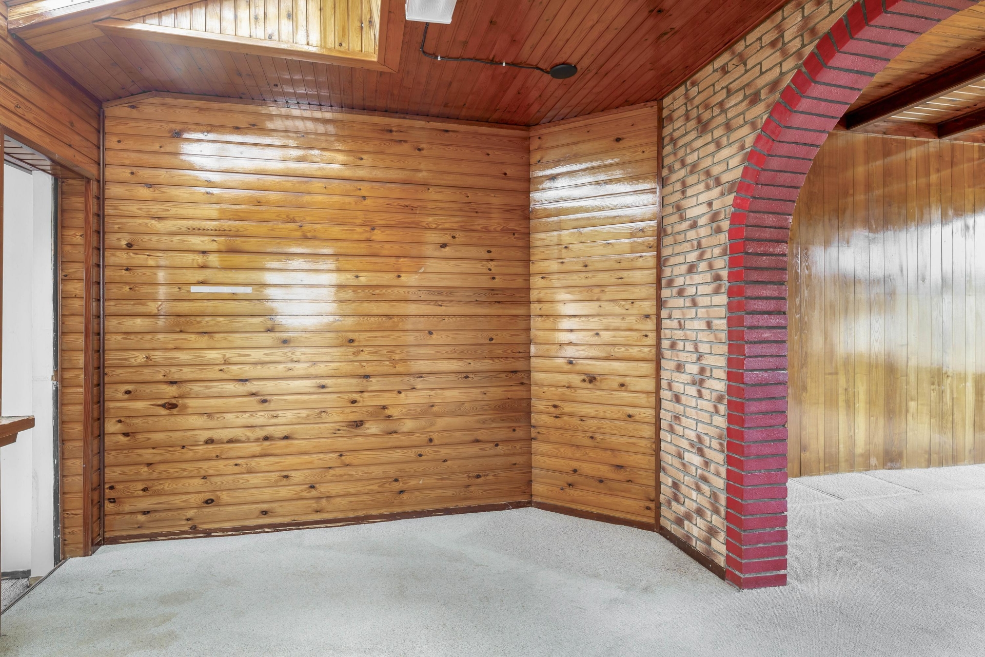 De woonkamer en de dichte keuken liggen aan de voorzijde van de woning. Verder zijn er op de begane grond een slaapkamer en een eenvoudige badkamer en een separaat toilet. Op de eerste verdieping is nog een slaapkamer. De indeling is basic en nagenoeg alles moet worden aangepakt: van dak tot elektra, sanitair en afwerking. Dit is een woning voor de échte aanpakker. Maar wie bereid is te investeren, creëert hier wél een royaal en halfvrijstaand (t)huis op een prachtige kavel.