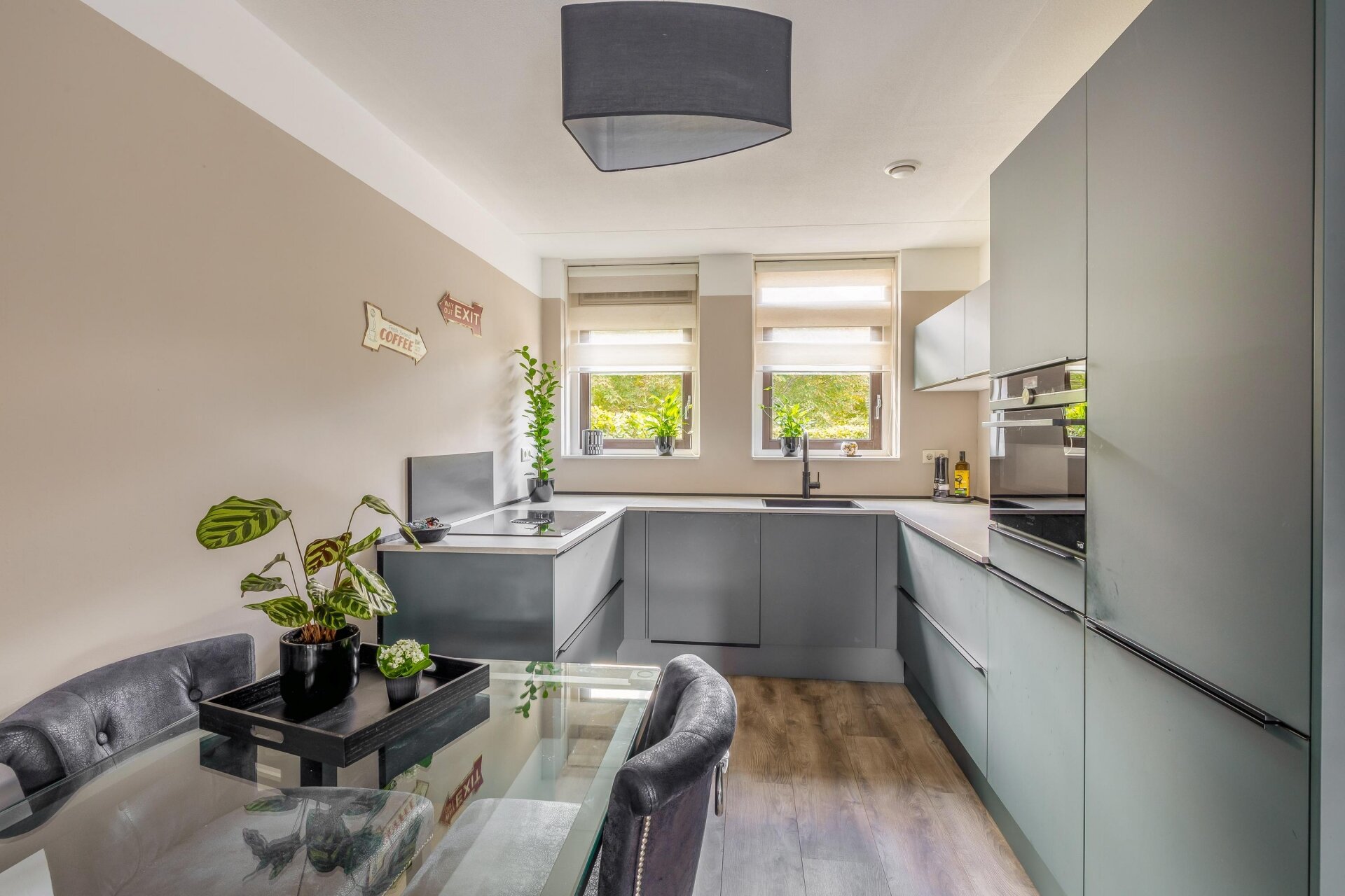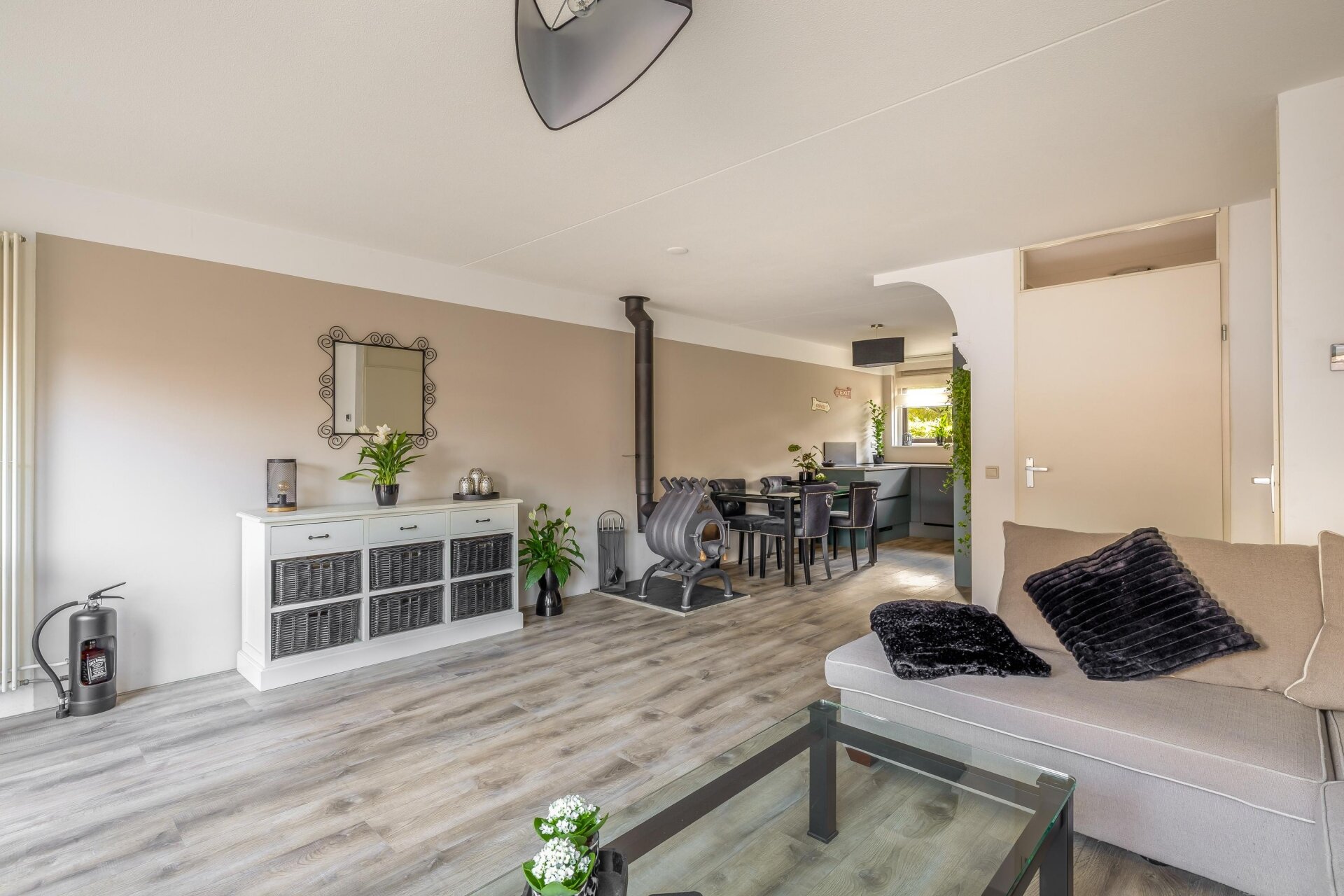 Bij binnenkomst op de begane grond valt direct de open indeling op. De moderne keuken aan de voorzijde is uitgevoerd in een stijlvolle kleurstelling en uitgerust met alle gewenste en moderne inbouwapparatuur. Denk hierbij aan een inductie kookplaat met geïntrigeerde afzuiging, combi-oven, vaatwasser, koelkast, vriezer en een Quooker. Door de ligging aan de straatzijde heb je hier prettig lichtinval, terwijl je aan de achterzijde heerlijk in alle rust kunt zitten. De woonkamer is sfeervol ingericht met onder andere een houtkachel en een fraaie laminaatvloer (2024). De grote raampartijen verbinden de leefruimte direct met de diepe achtertuin.