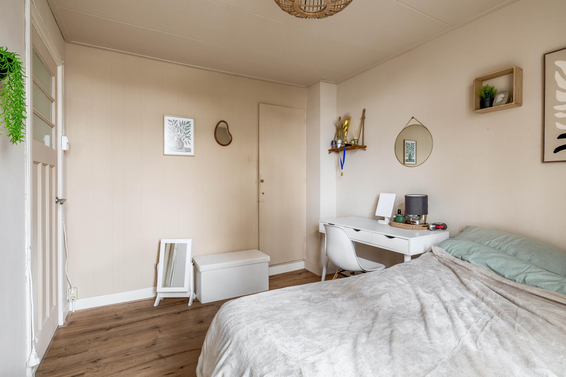 Via een vaste trap bereik je de zolderverdieping. Op deze derde woonlaag kun je nog een grote slaapkamer creëren en extra bergruimte onder de schuine kap. Deze verdieping biedt flexibiliteit: een rustige thuiswerkplek, hobbyruimte of juist een volwaardige derde slaapkamer.