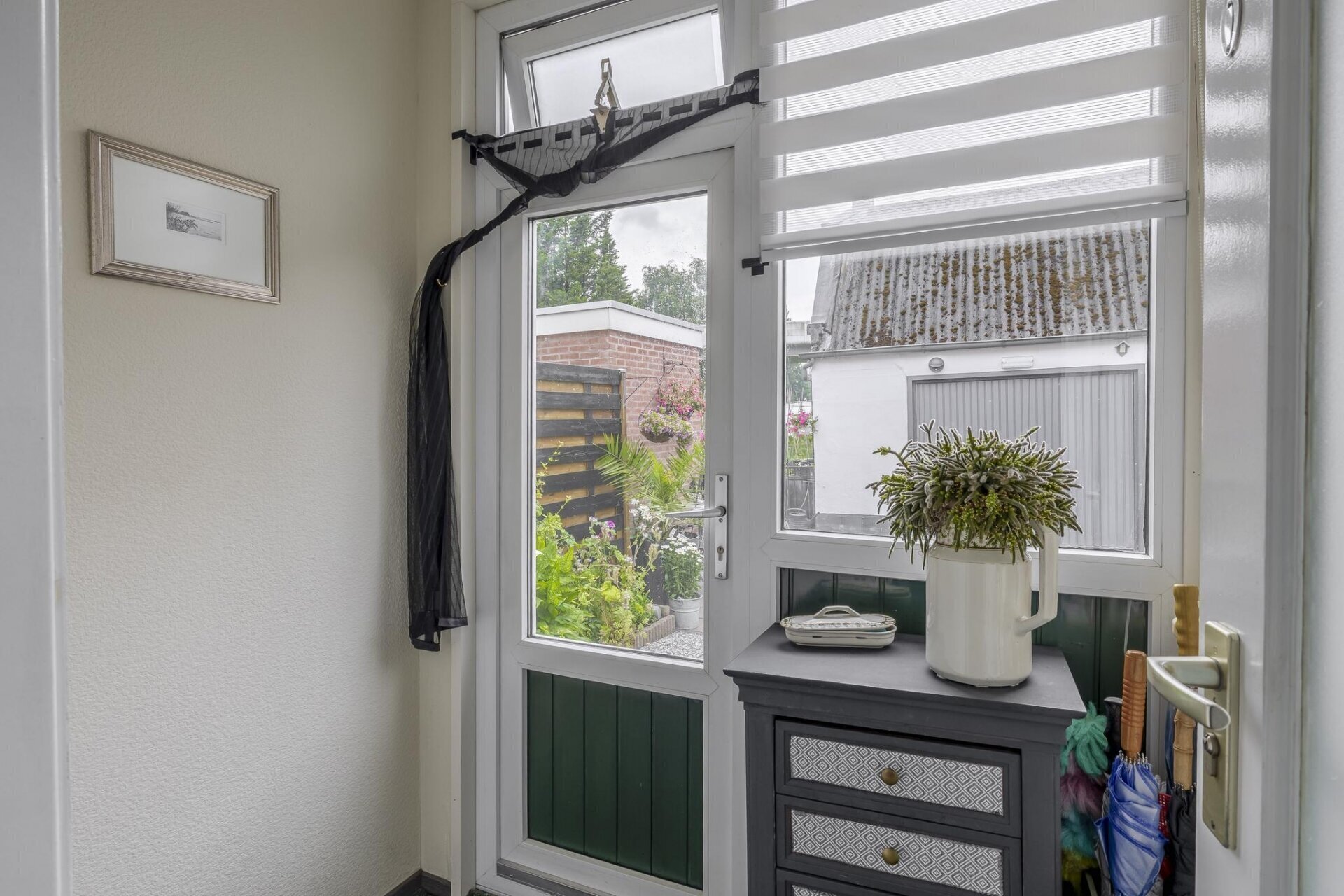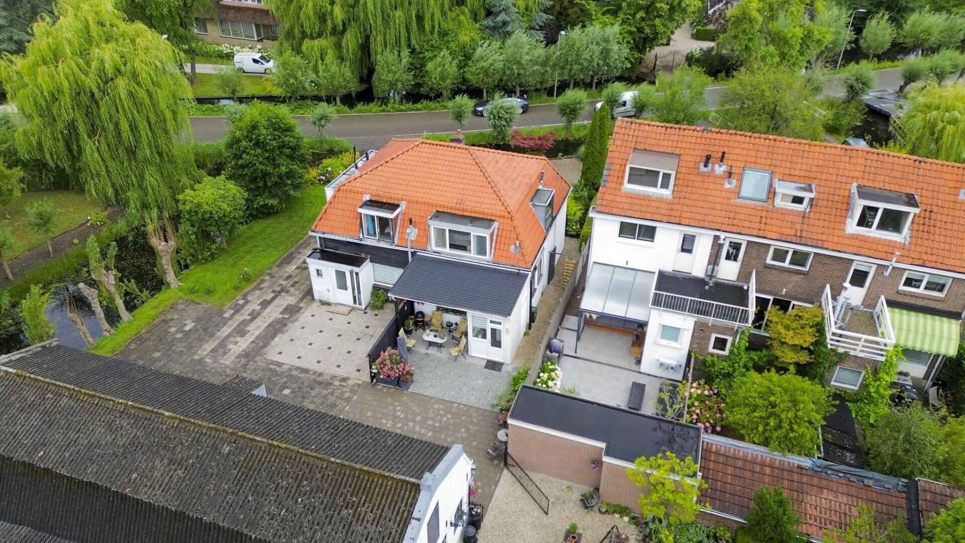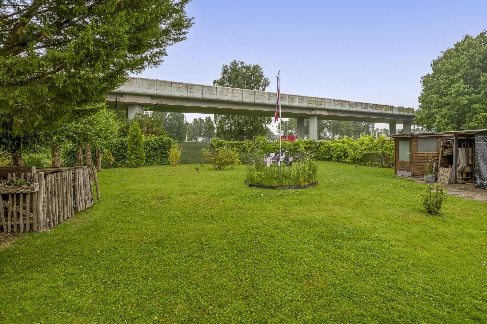 De voortuin / voordeur is via recht van overpad middels de gezamenlijke brug en oprit bereikbaar.