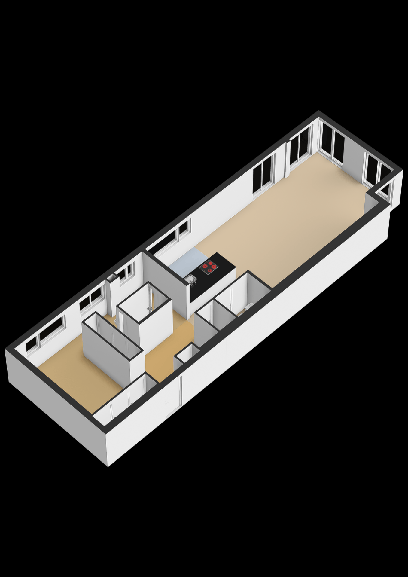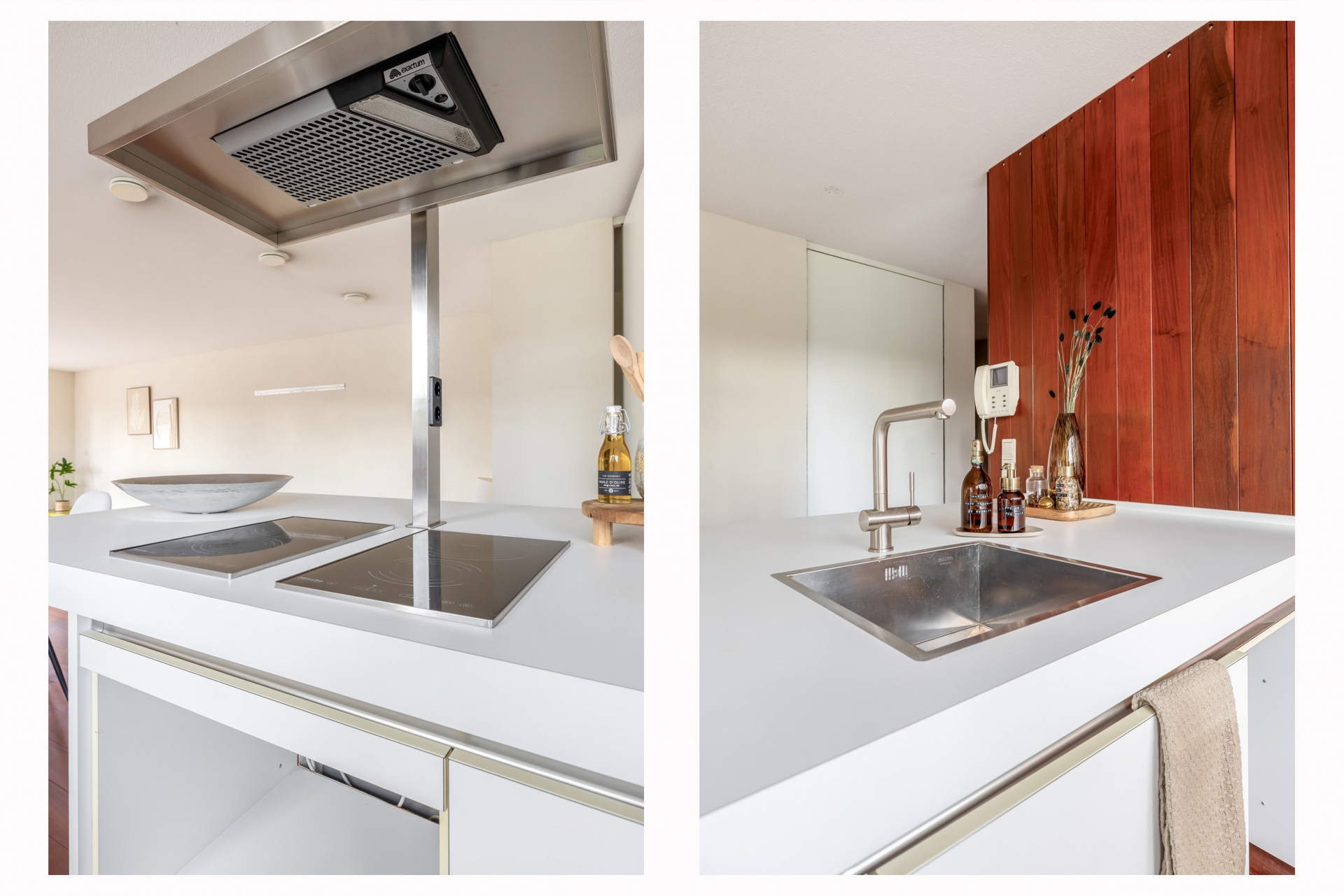 De keuken is een echte eyecatcher. Modern vormgegeven, met strak wit werkblad en ingebouwde apparatuur. Dankzij de slimme indeling heb je niet alleen alle ruimte om te koken, maar ook om gezellig samen te zijn. Alles is ontworpen met oog voor kwaliteit én gebruiksgemak.