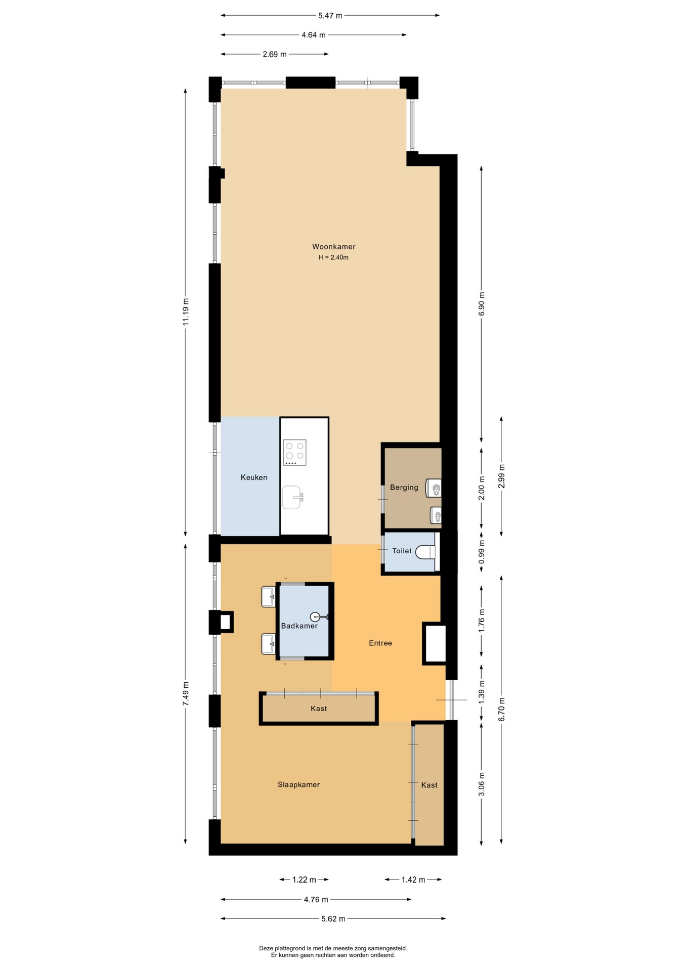 “Deze informatie is door ons met de nodige zorgvuldigheid samengesteld. Onzerzijds wordt echter geen enkele aansprakelijkheid aanvaard voor enige onvolledigheid, onjuistheid of anderszins, dan wel de gevolgen daarvan. Alle opgegeven maten en oppervlakten zijn indicatief.”