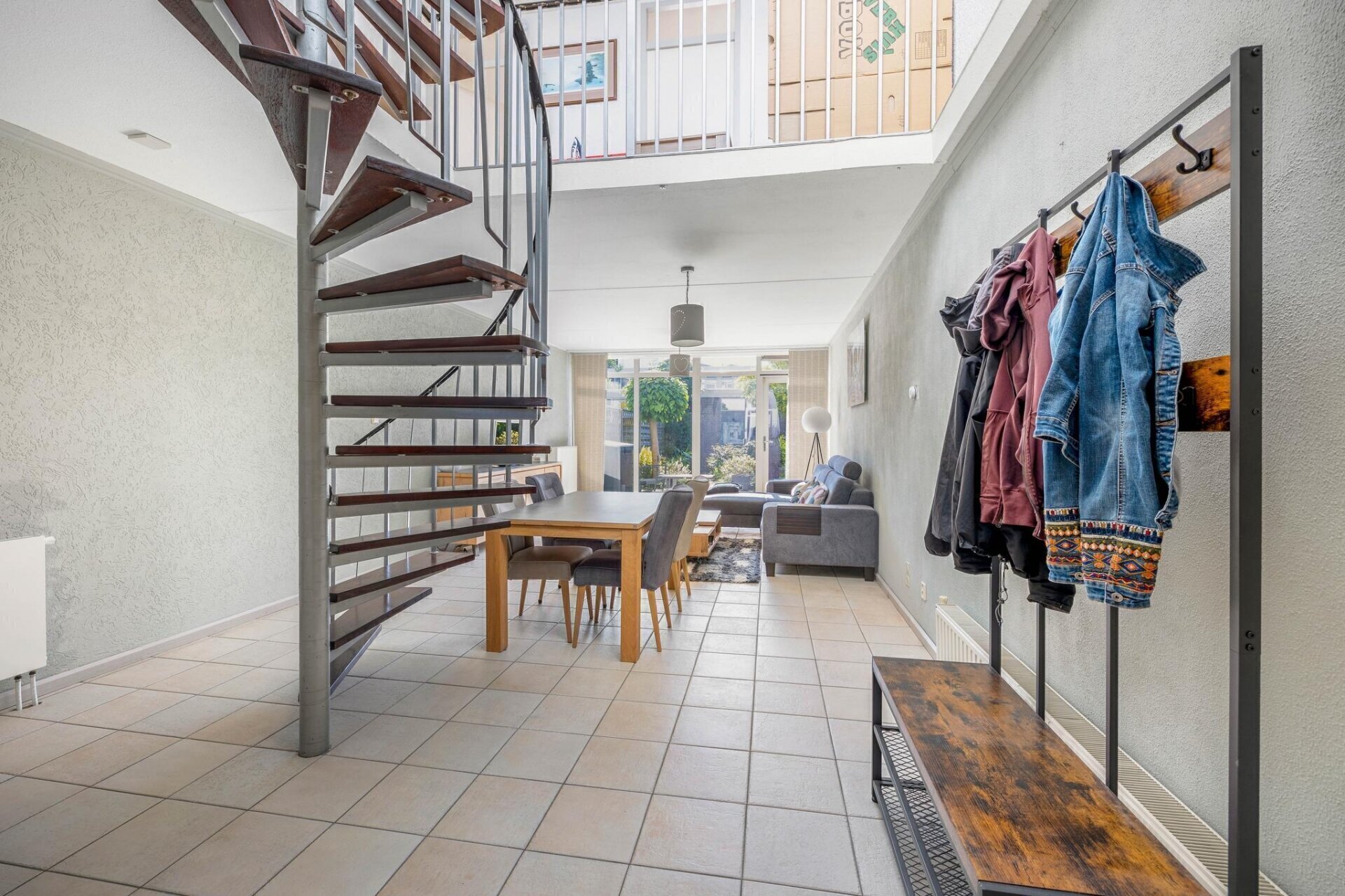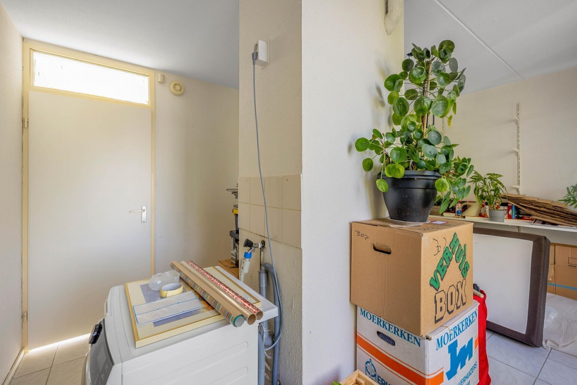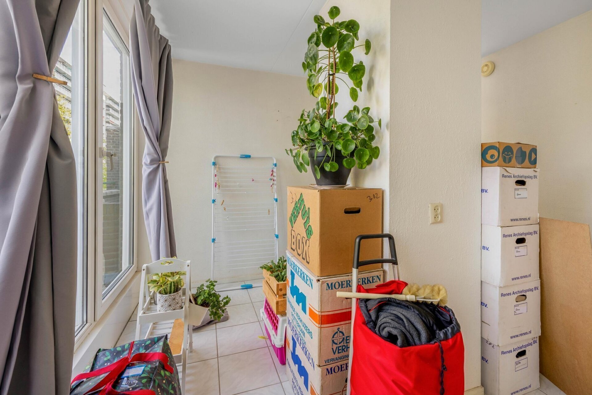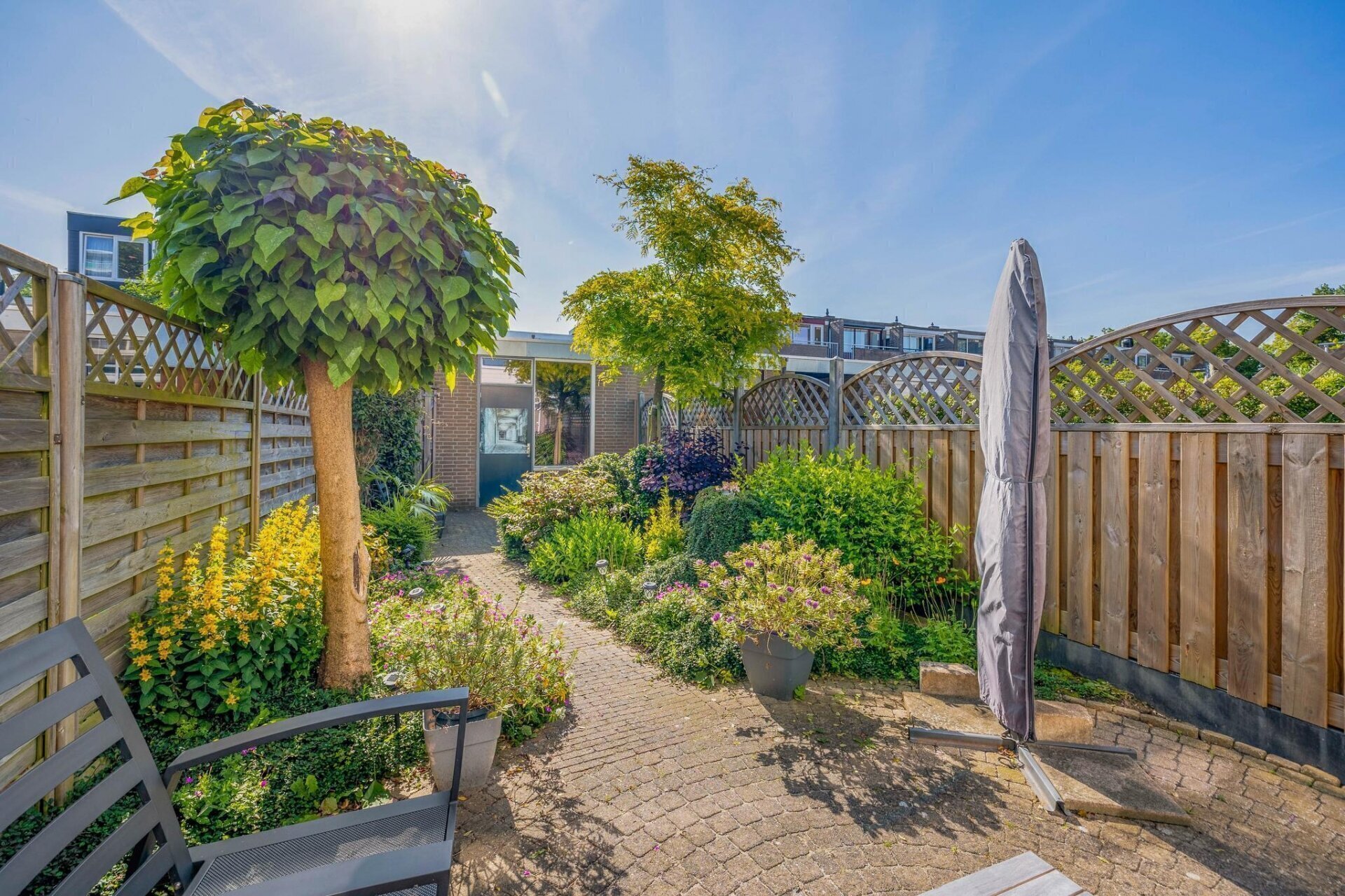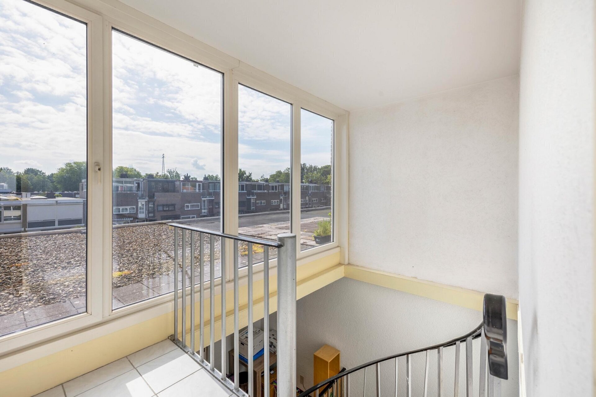 De woning beschikt over een praktische en moderne indeling verdeeld over drie verdiepingen. Bij binnenkomst vindt u een hal/entree met meterkast, garderoberuimte, toilet met fonteintje en een vaste kast met cv-combiketel. De open woonkamer aan de achterzijde biedt uitzicht op en toegang tot de zonnige tuin met een ruime vrijstaande stenen berging voorzien van elektra. De keuken aan de voorzijde is uitgerust met inbouwapparatuur en een spiltrap leidt naar de eerste verdieping. Hier vindt u een ruime overloop met vide, twee slaapkamers en een complete badkamer met een ruime douche, dubbele wastafel en toilet. De tweede verdieping, bereikbaar via een vaste spiltrap, omvat een overloop met wasmachine- en drogeropstelling, toegang tot het platte dak en een vierde slaapkamer met een westelijk gelegen balkon. Deze indeling biedt een comfortabele en efficiënte woonervaring, ideaal voor gezinnen.