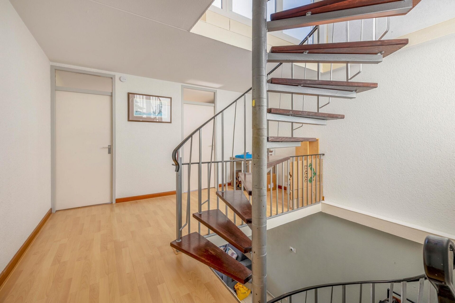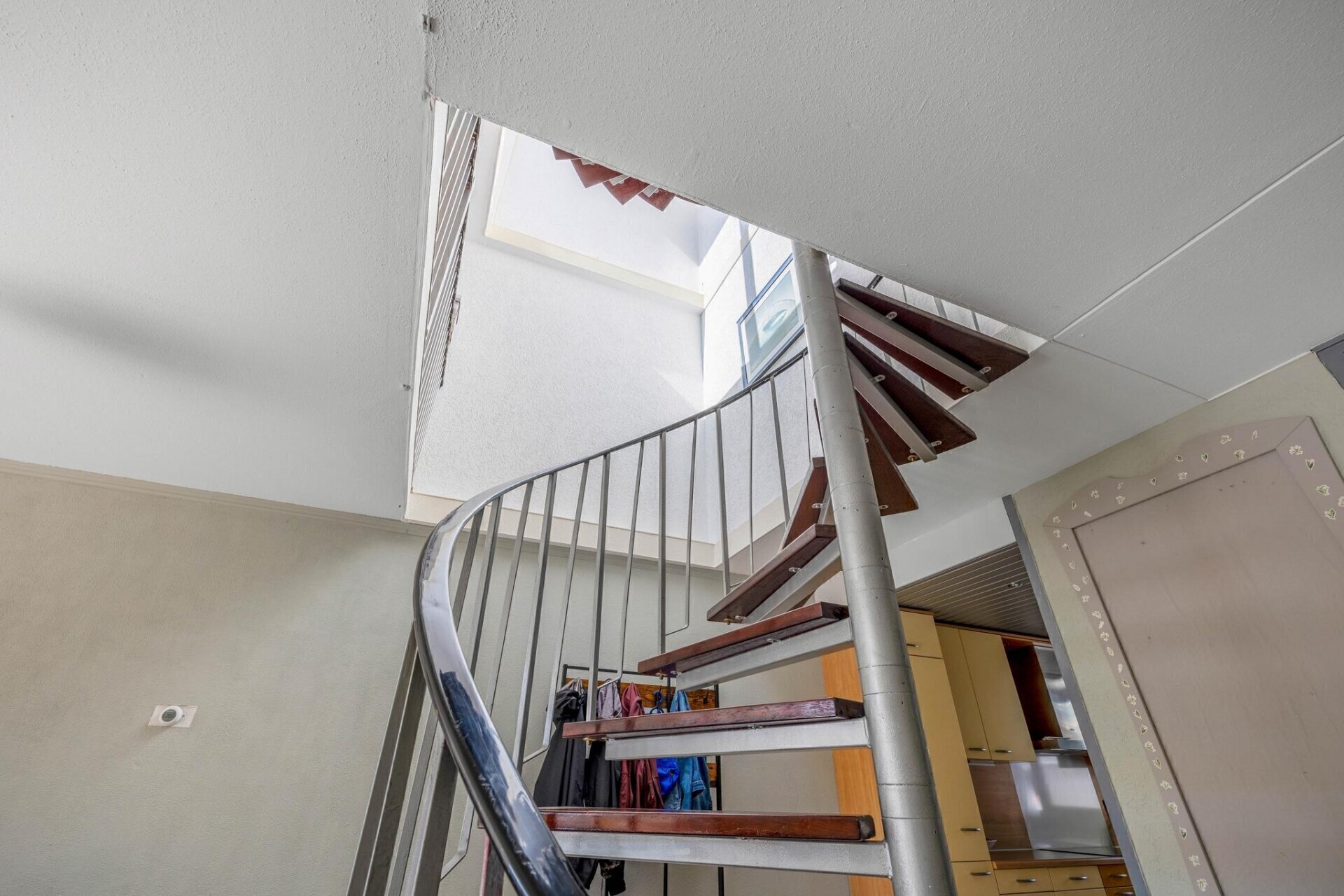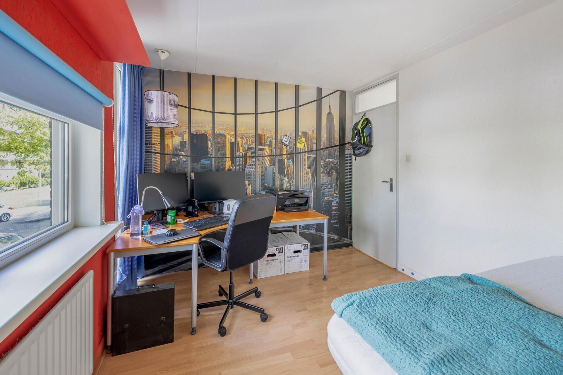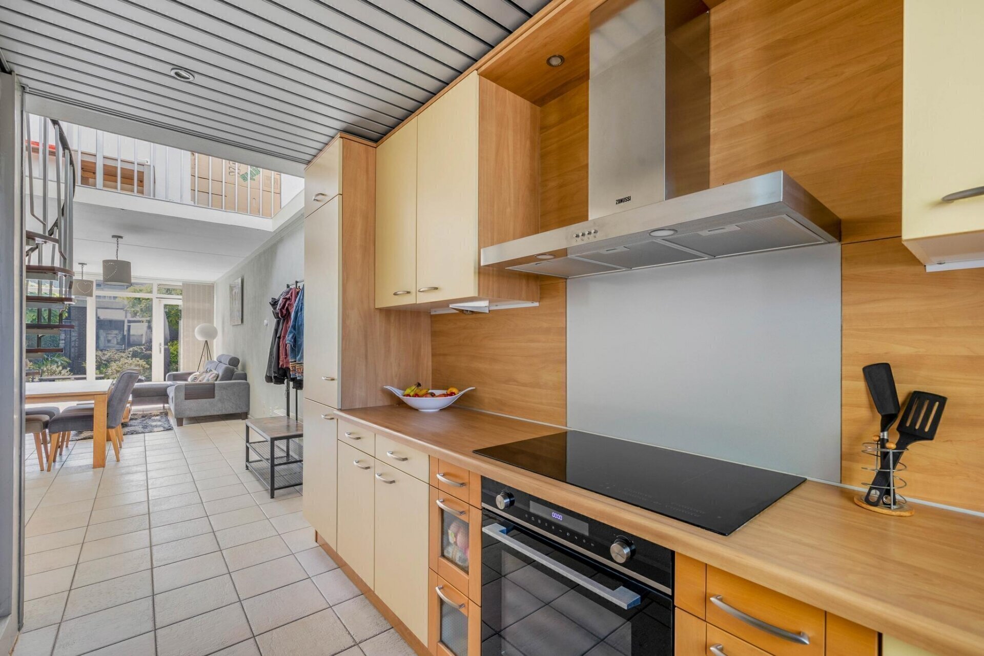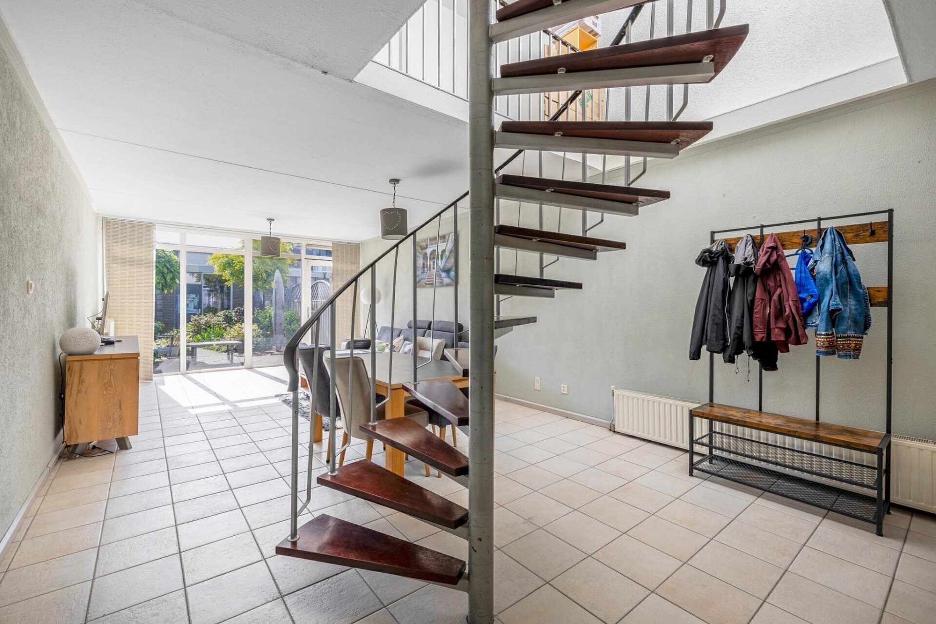 De woning beschikt over een praktische en moderne indeling verdeeld over drie verdiepingen. Bij binnenkomst vindt u een hal/entree met meterkast, garderoberuimte, toilet met fonteintje en een vaste kast met cv-combiketel. De open woonkamer aan de achterzijde biedt uitzicht op en toegang tot de zonnige tuin met een ruime vrijstaande stenen berging voorzien van elektra. De keuken aan de voorzijde is uitgerust met inbouwapparatuur en een spiltrap leidt naar de eerste verdieping. Hier vindt u een ruime overloop met vide, twee slaapkamers en een complete badkamer met een ruime douche, dubbele wastafel en toilet. De tweede verdieping, bereikbaar via een vaste spiltrap, omvat een overloop met wasmachine- en drogeropstelling, toegang tot het platte dak en een vierde slaapkamer met een westelijk gelegen balkon. Deze indeling biedt een comfortabele en efficiënte woonervaring, ideaal voor gezinnen.