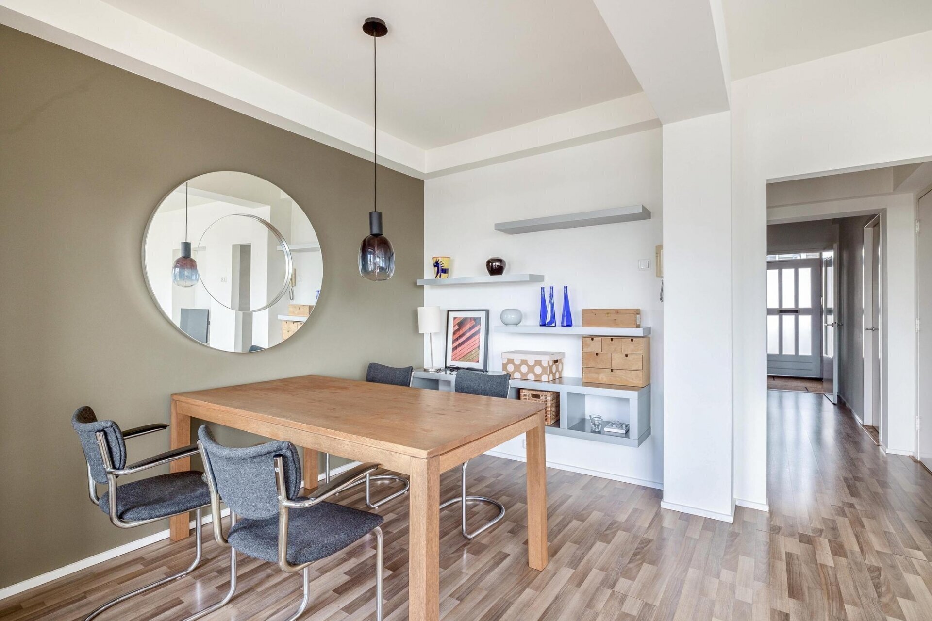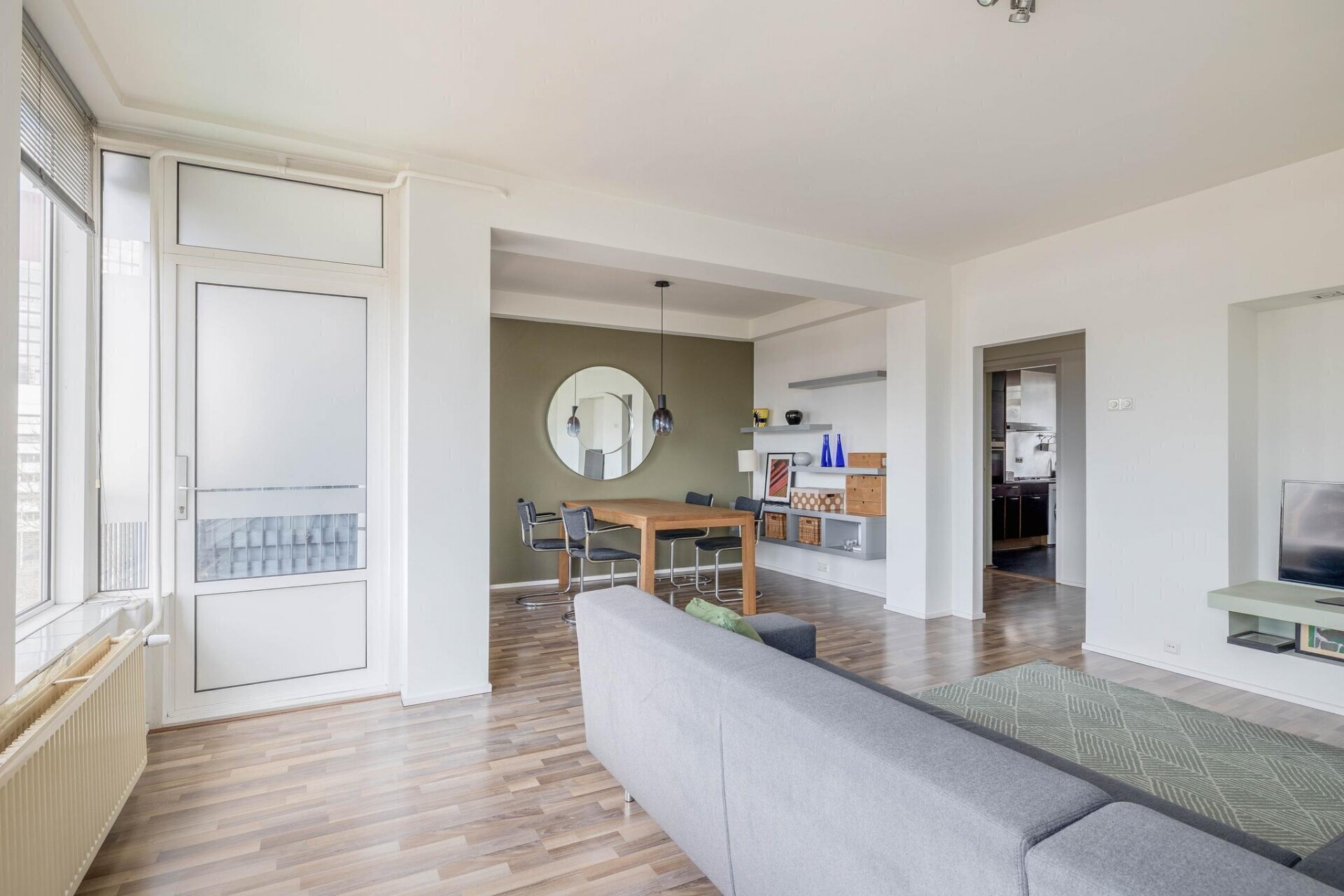 De woonkamer is een sfeervolle ruimte met plek voor zowel een zithoek als een eettafel. Grote ramen zorgen voor veel natuurlijk licht en geven toegang tot het balkon, waar je heerlijk kunt ontspannen met een kop koffie of een glas wijn. Dankzij de open indeling voelt de ruimte royaal aan en biedt het volop mogelijkheden om het naar eigen smaak in te richten.
