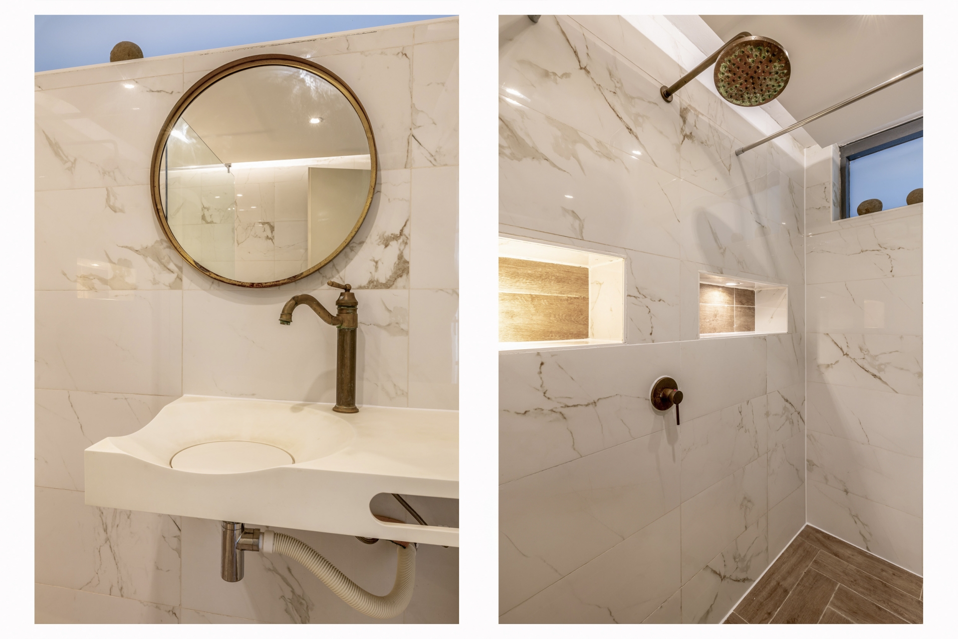 De open keuken is een blikvanger in deze woning. Gemaakt op maat en voorzien van een marmer werkblad, 6-pits fornuis, RVS recirculatiekap, vaatwasser en koelkast: een keuken waar koken echt een feestje wordt. Of je nu alleen woont of graag gasten over de vloer hebt, deze keuken sluit naadloos aan op je wensen. De praktische indeling en afwerking in wit maken het geheel tijdloos en strak.