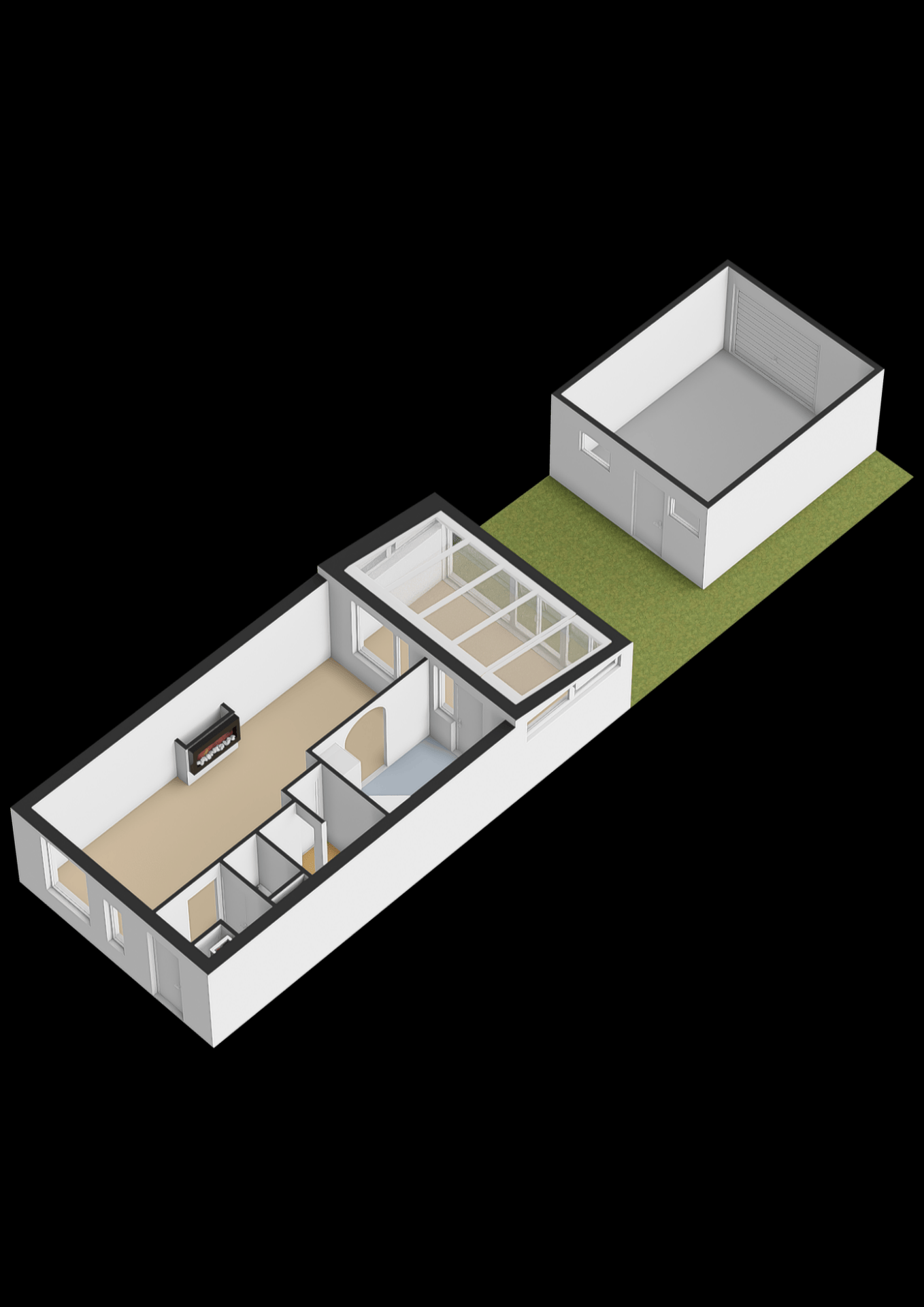 Aansluitend vind je de glazen serre, een van de sterke punten van dit huis. Dit is echt een verlengstuk van je leefruimte. Of je hier nu een extra zitplek maakt, een speelruimte voor de kinderen of een plek om te borrelen met vrienden, het kan allemaal. Dankzij de glazen wanden en het dak geniet je hier al vroeg in het jaar van het buitengevoel, terwijl je beschut zit.