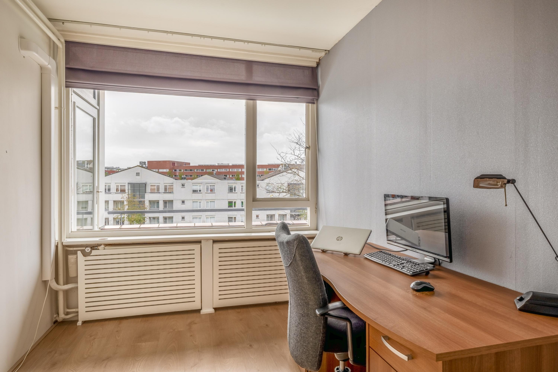 Deze stijlvol ingerichte kamer meet ca. 20m² en is voorzien van een vaste schuifwandenkast.