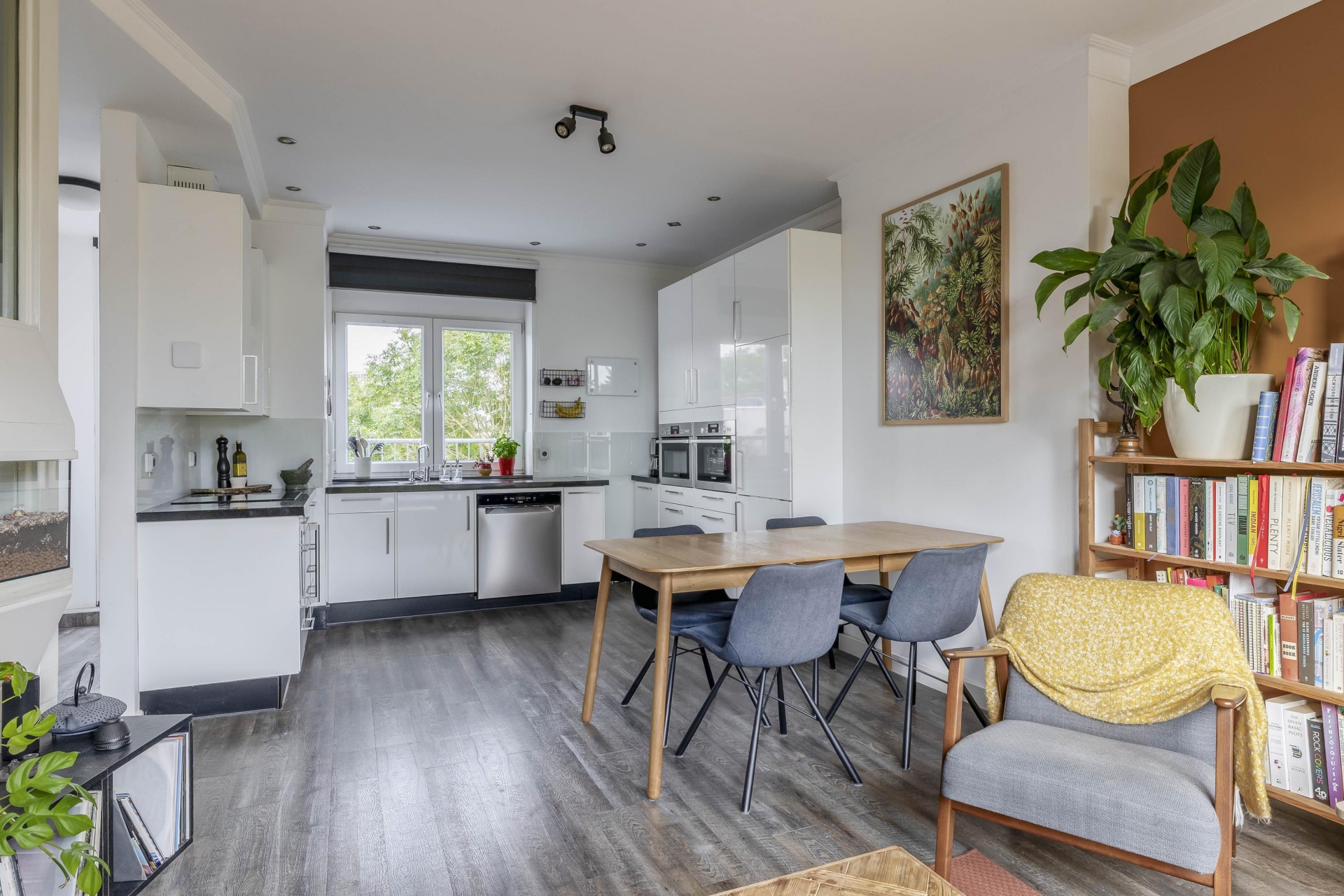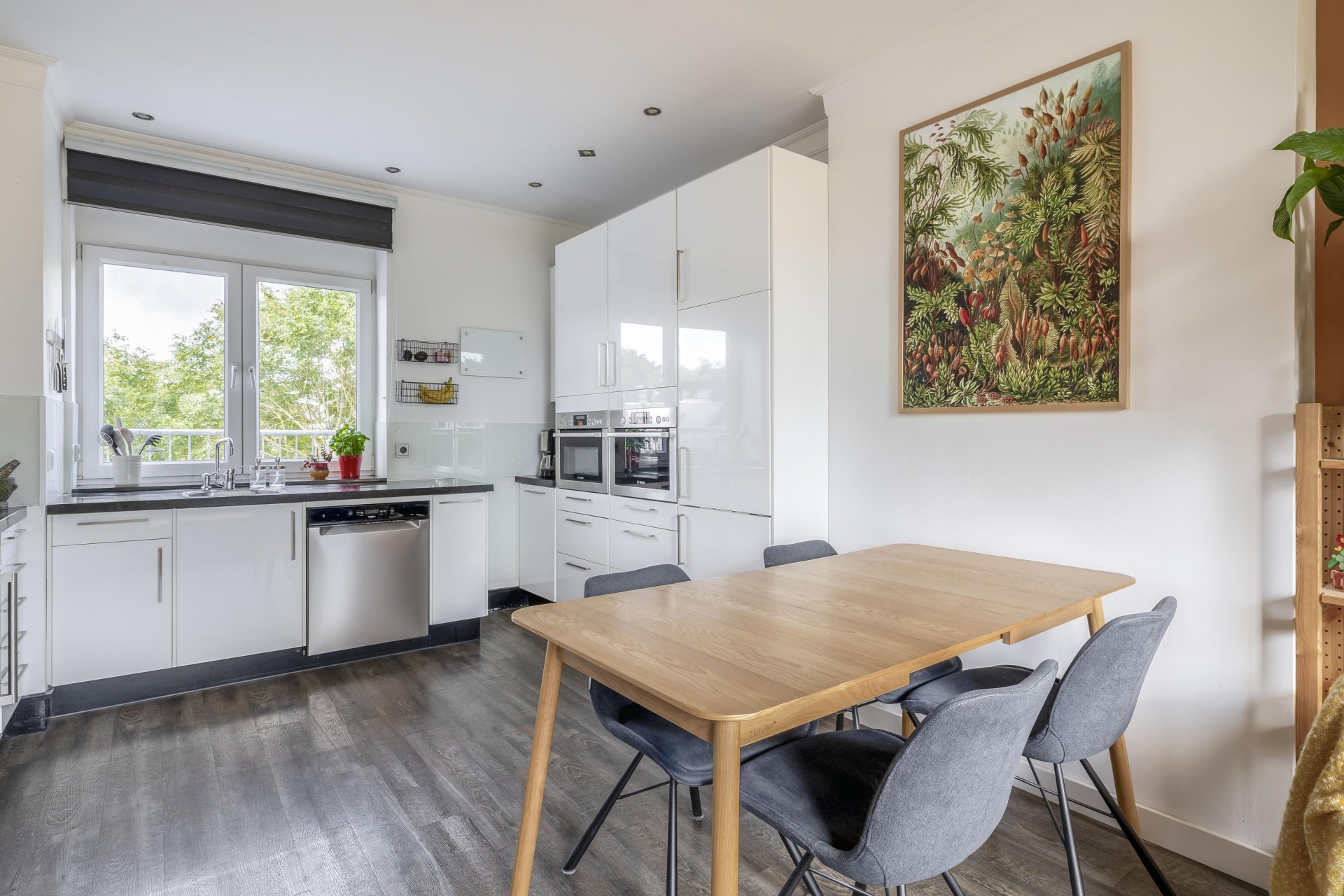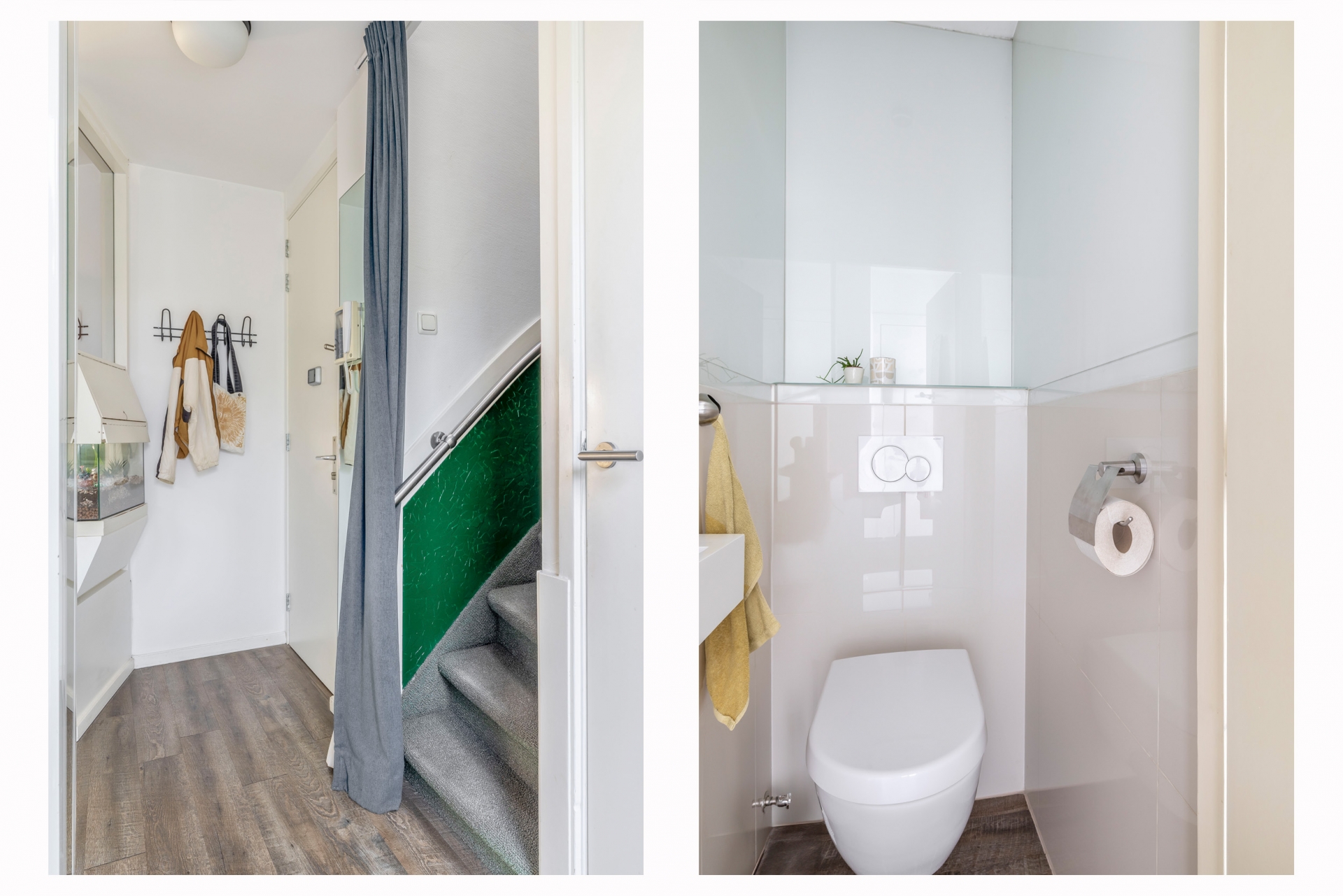 Binnen tref je een comfortabele en lichte woonruimte met PVC vloer, glad gestuukte wanden en een hoog afwerkingsniveau. Op de derde verdieping vind je de entree met trapopgang, een modern toilet, praktische trapkast met wasmachineaansluiting en toegang tot het balkon. Aan de voorzijde ligt de woonkamer met uitzicht op de Schie, en aan de achterzijde de ruime keuken. De keuken is compleet uitgerust met onder andere een combi-oven, stoomoven, inductiekookplaat, afzuigkap en vaatwasser.