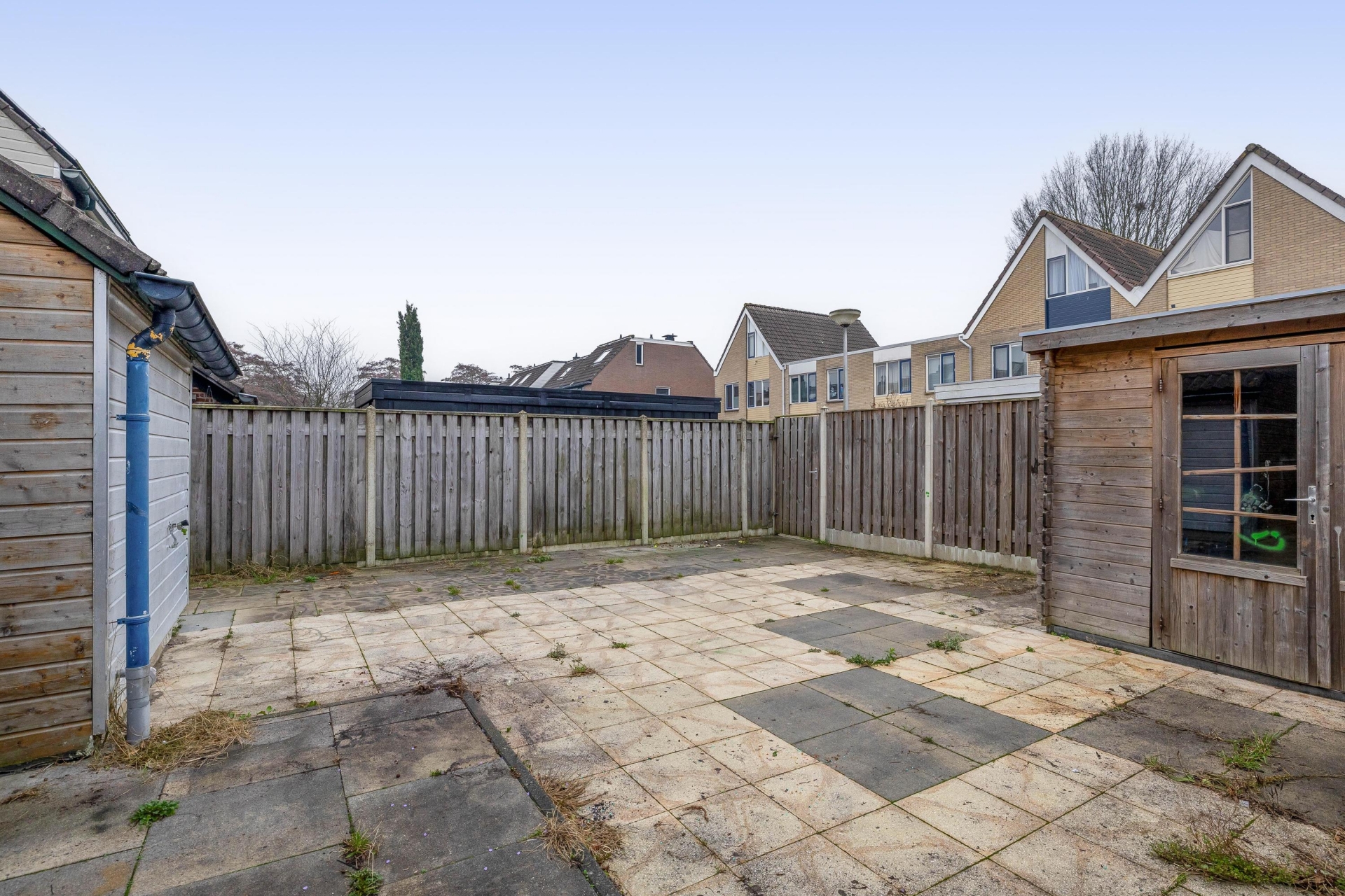 De tuin is gelegen op het zuidwesten, wat betekent dat je hier de hele middag en avond kunt genieten van de zon. De tuin is ruim, en met een beetje liefde en aandacht tover je dit om tot een sfeervolle buitenruimte waar je volop van het buitenleven geniet. De twee houten bergingen bieden praktische opbergruimte voor fietsen, gereedschap of tuinmeubels. Parkeren doe je gewoon voor de deur; er is voldoende openbare parkeergelegenheid in de straat.