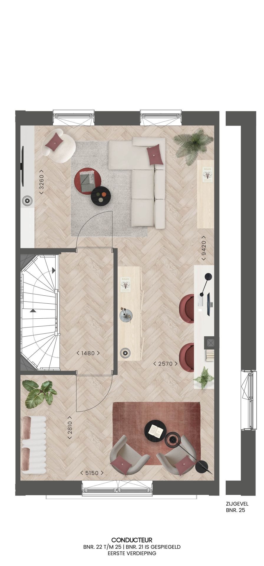 Aan de sfeervolle Spoorstraat liggen de herenhuizen van het type Conducteur. Deze woningen vallen direct op door hun charmante uitstraling: een mooie gemêleerde gevelsteen, afwisselende gevelindeling en elegante Franse balkons geven het geheel een karaktervolle en tijdloze look.
