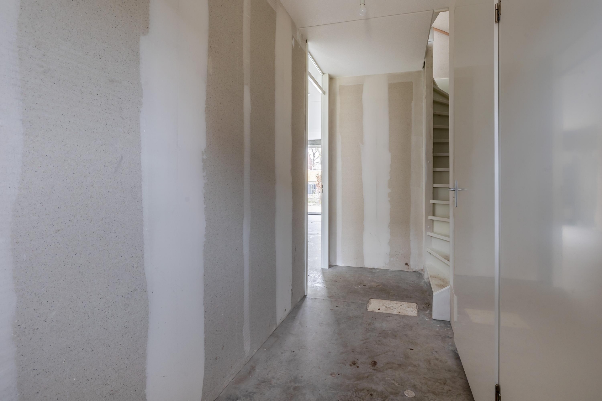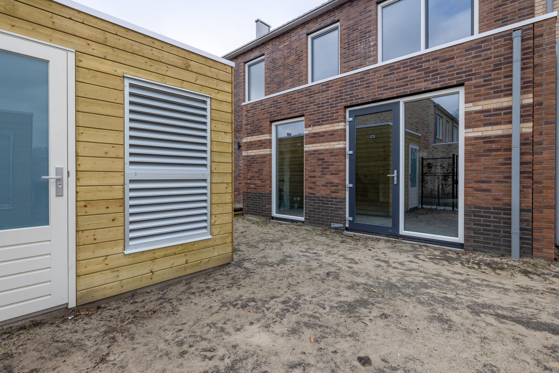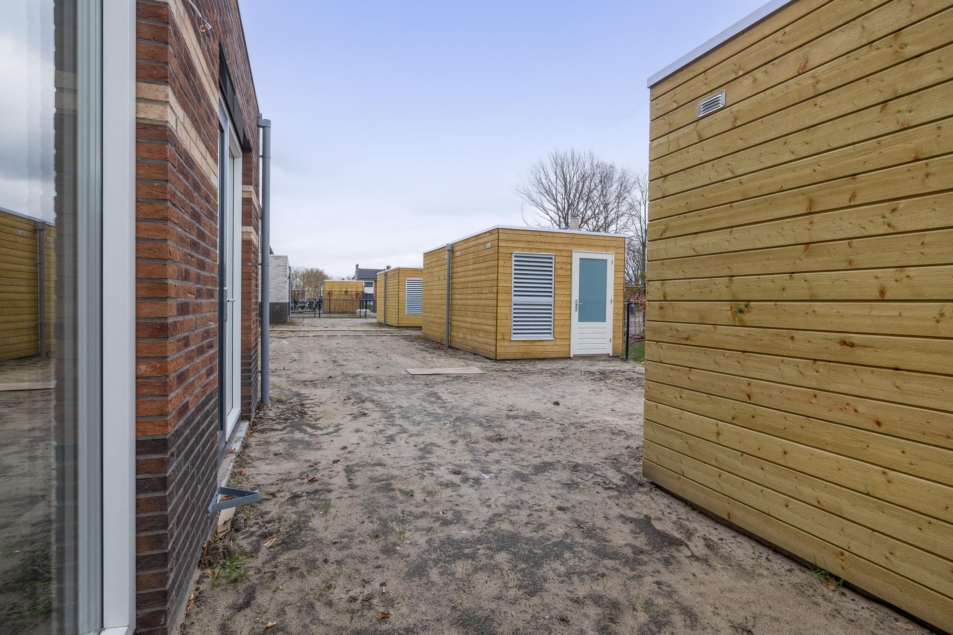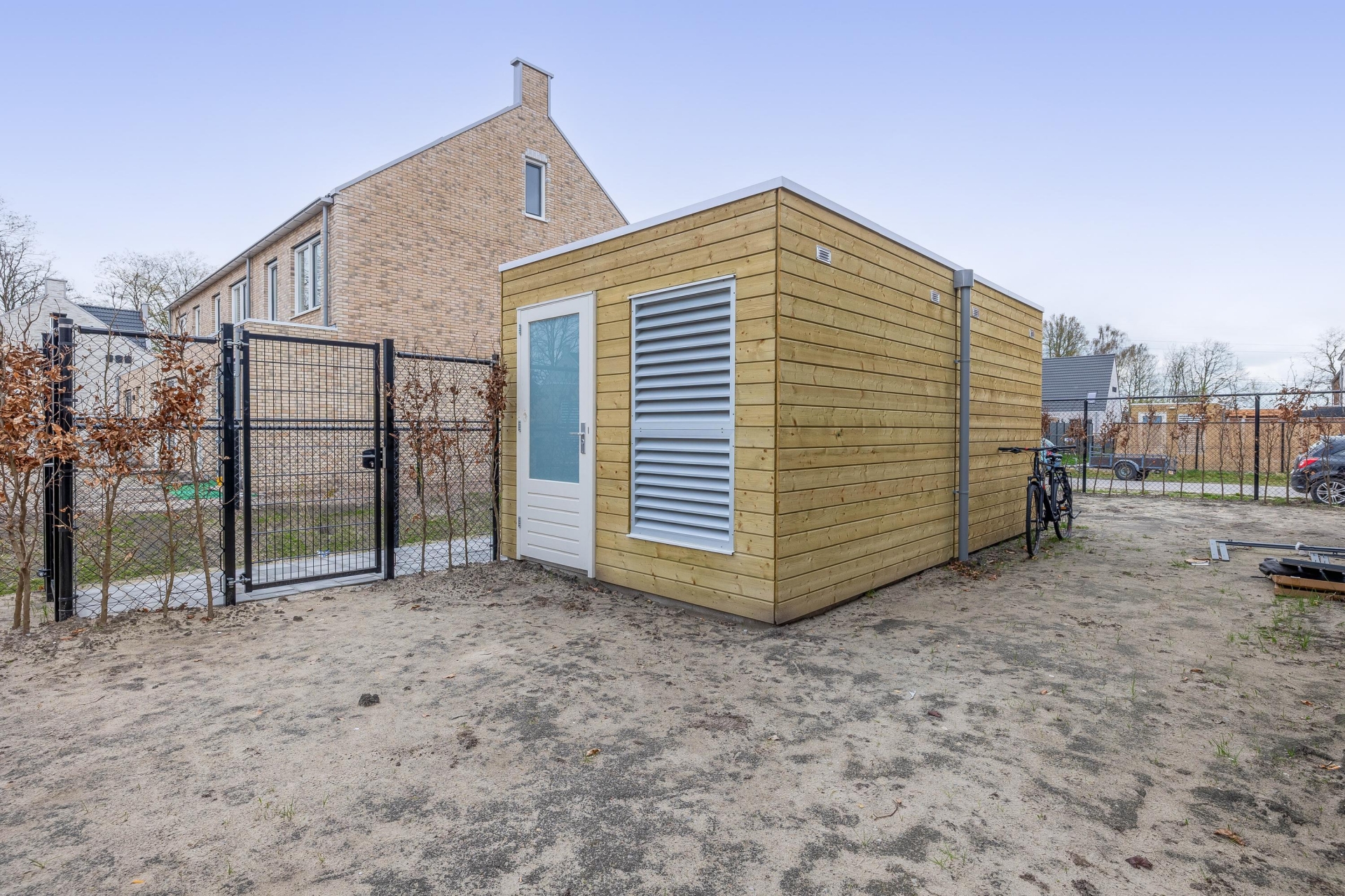 De achtertuin ligt op het oosten, waardoor je hier in de ochtend en vroege middag al heerlijk van de zon geniet. De tuin is nog naar eigen wens aan te leggen, wat perfect aansluit bij het casco karakter van het huis. Achterin de tuin staat een praktische houten berging, ideaal voor fietsen en tuinspullen. Daarnaast is er een achterom aanwezig, wat zorgt voor extra gemak.