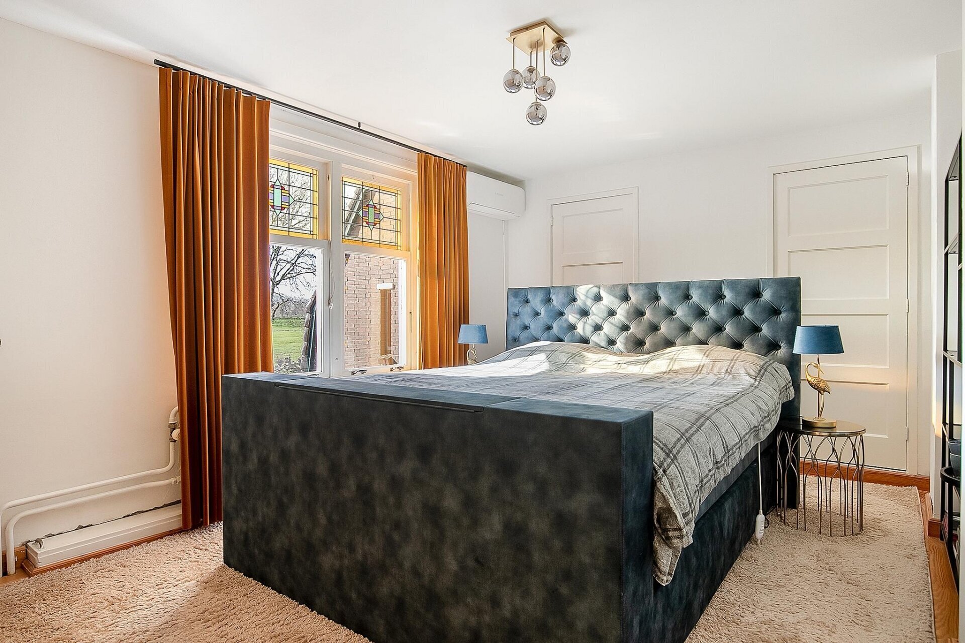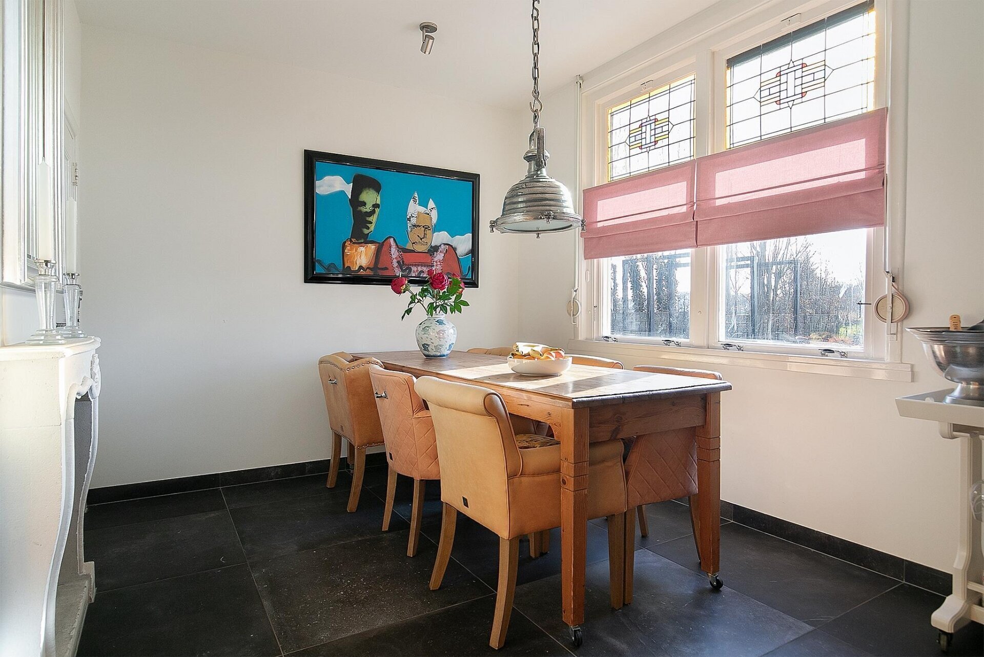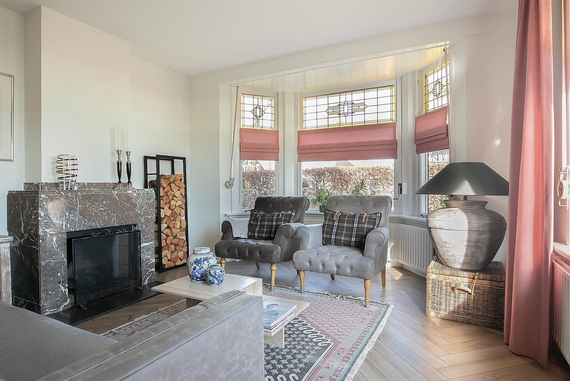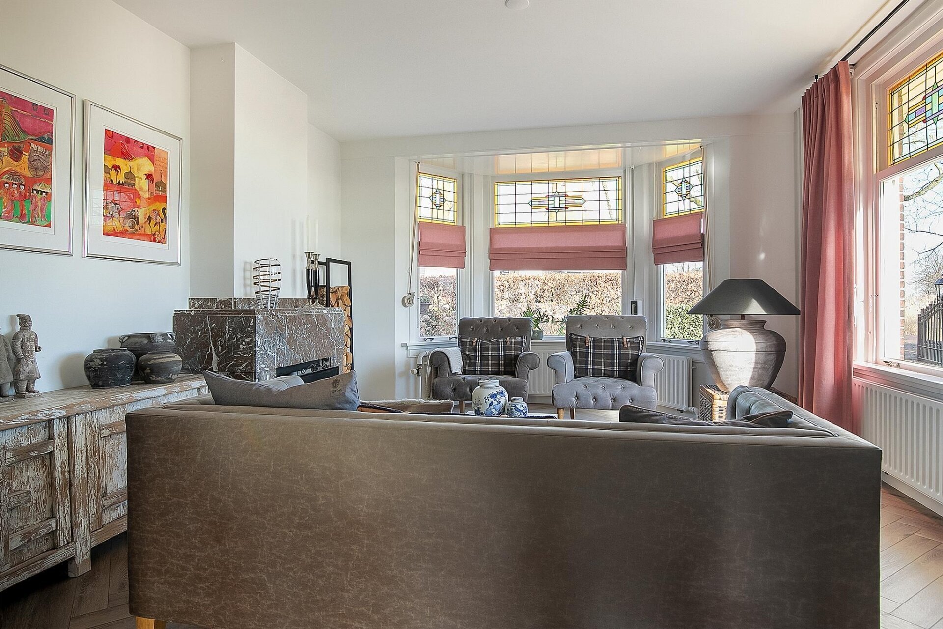 - Authentieke details zoals glas-lood-ramen, en suite deuren, haarden met sierschouw en granitovloeren;