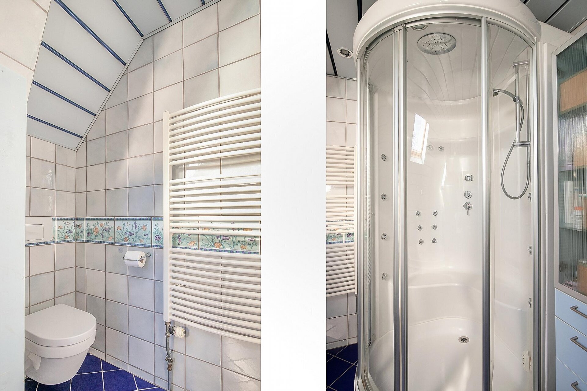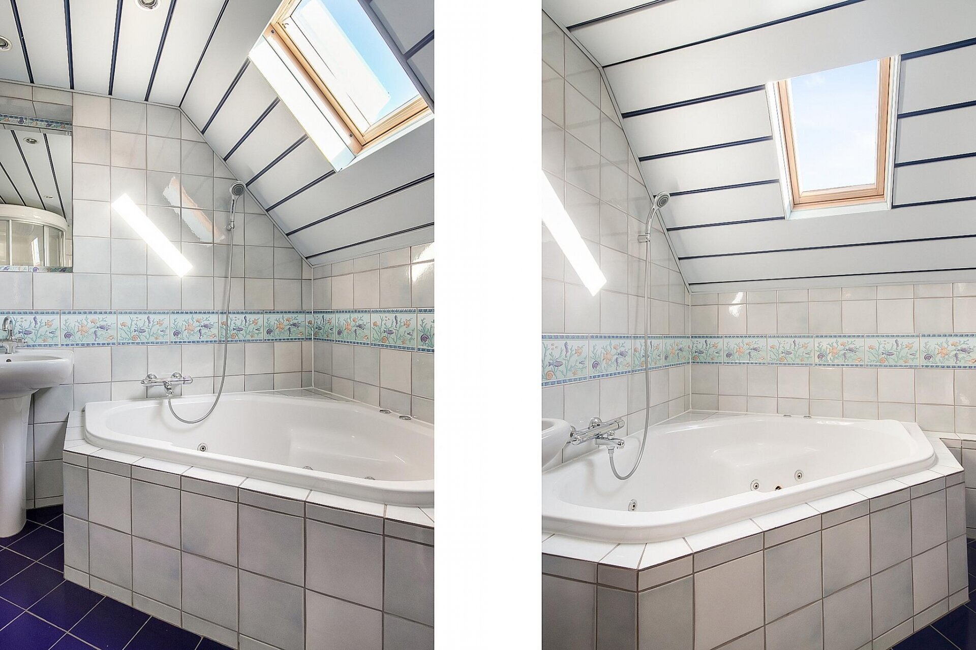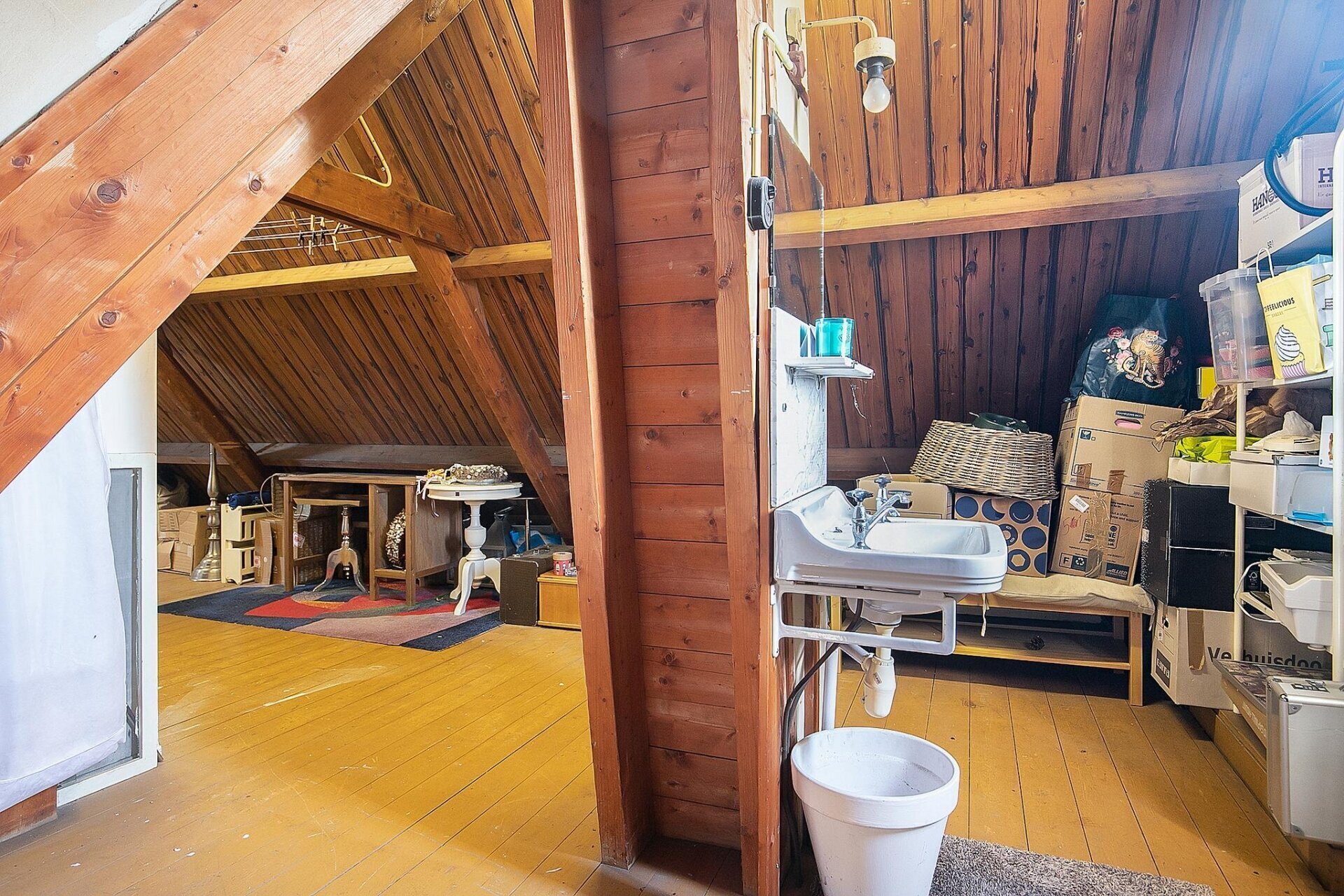 Op de eerste verdieping bevinden zich vier volwaardige slaapkamers, stuk voor stuk met vaste kasten, houten vloeren en klassieke raampartijen. De grootste slaapkamer beschikt over airconditioning – een fijne toevoeging tijdens warme zomers. De badkamer is royaal opgezet en compleet uitgerust met een whirlpool hoekbad, stoom-/douchecabine, dubbele wastafel en tweede toilet. Een groot dakraam zorgt hier voor extra daglicht. Via een vaste trap bereik je de zolderverdieping van 42 m²: een ruimte met eindeloze mogelijkheden – speelkamer, logeerkamer, kantoor of atelier.