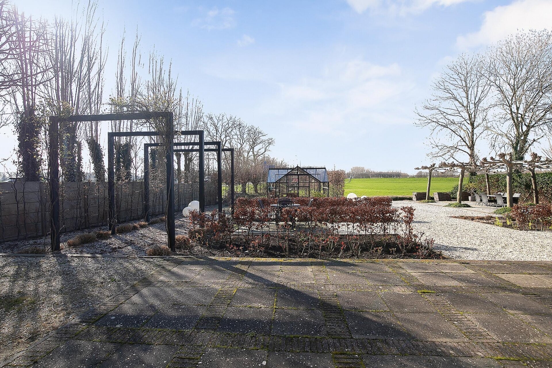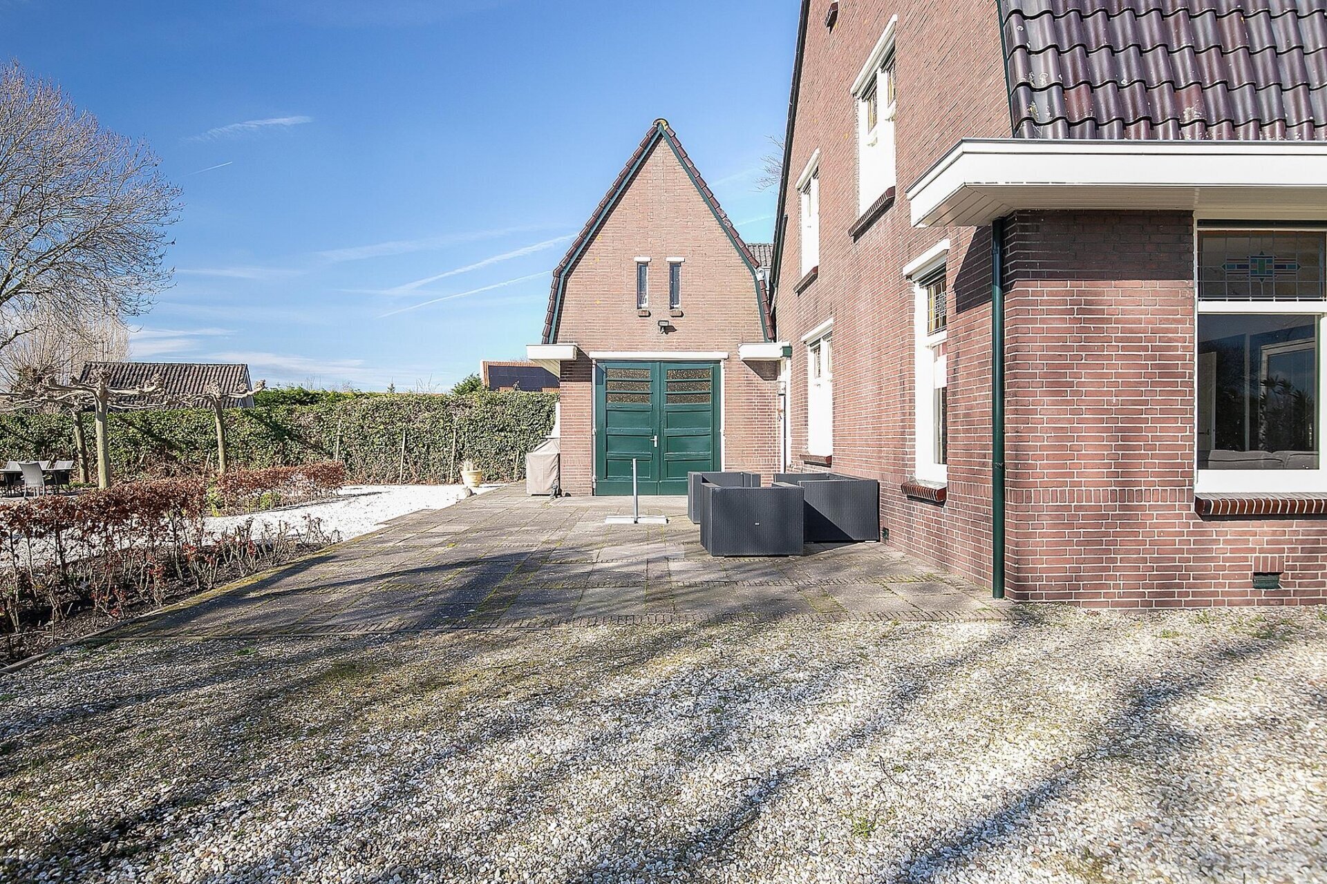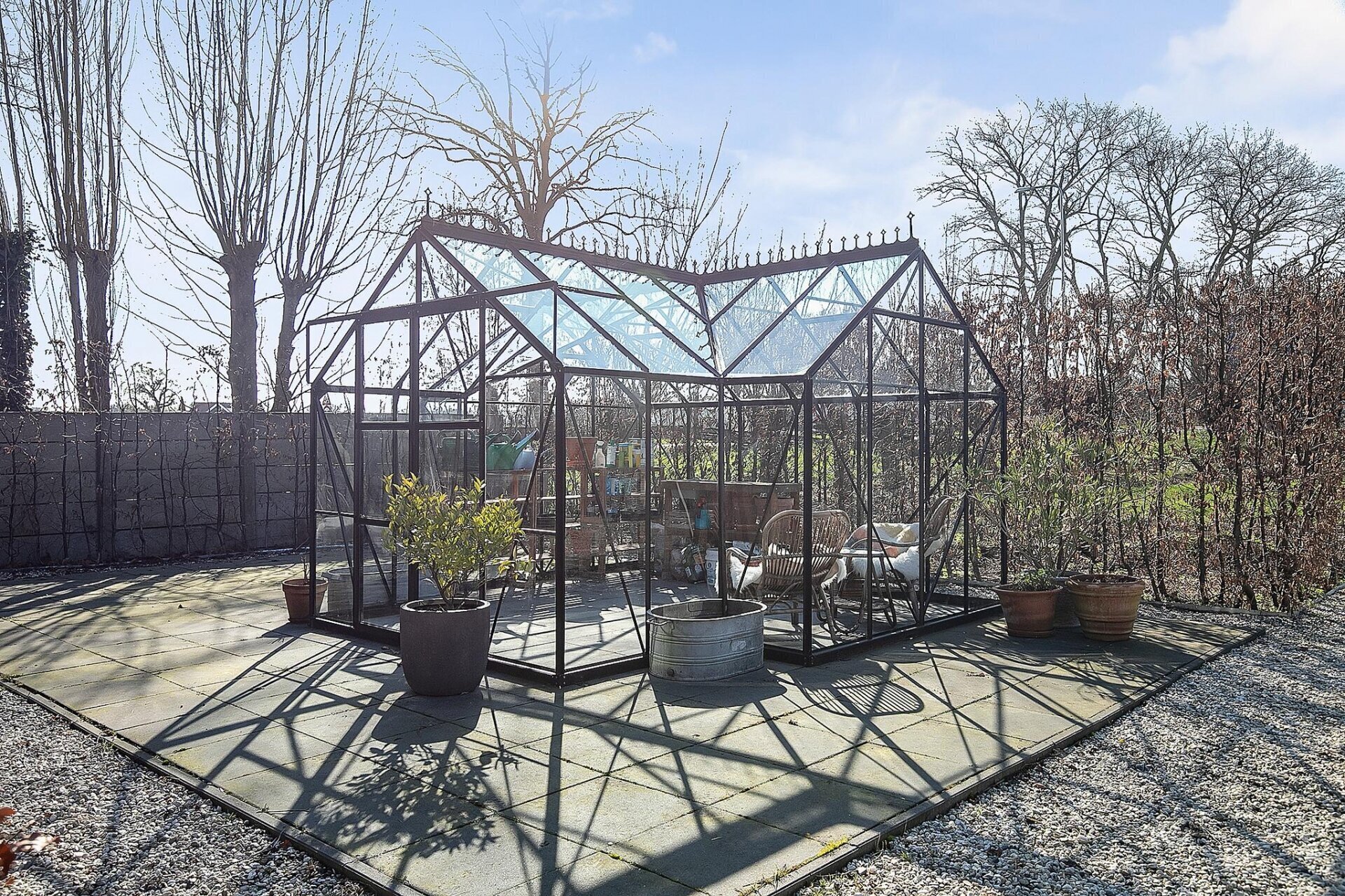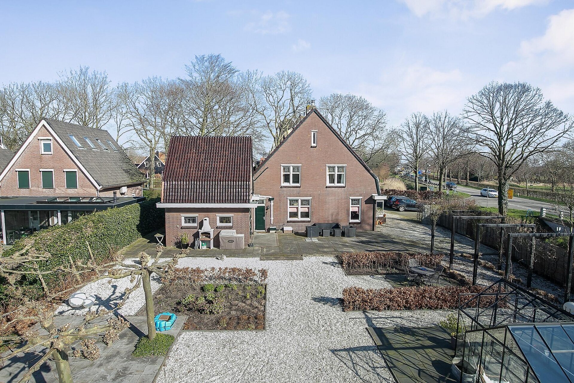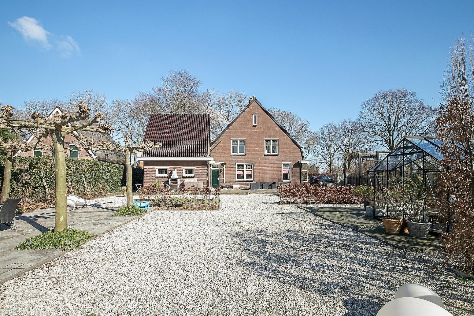 De tuin is een absolute blikvanger. Voorzie van meerdere terrassen, volwassen bomen, sierbestrating en een prachtige kas voor de liefhebber van tuinieren. Hier ervaar je volledige rust en vrijheid, met weids uitzicht over het omliggende natuurgebied. De ligging op het zuidwesten zorgt voor zon in de middag en avond. Aan de voorzijde biedt de oprit plaats aan minimaal vier auto's, af te sluiten met een hekwerk. De tuin is in 2020/2021 vernieuwd en het buitenschilderwerk is nog in 2022 uitgevoerd – alles is tot in de puntjes verzorgd.