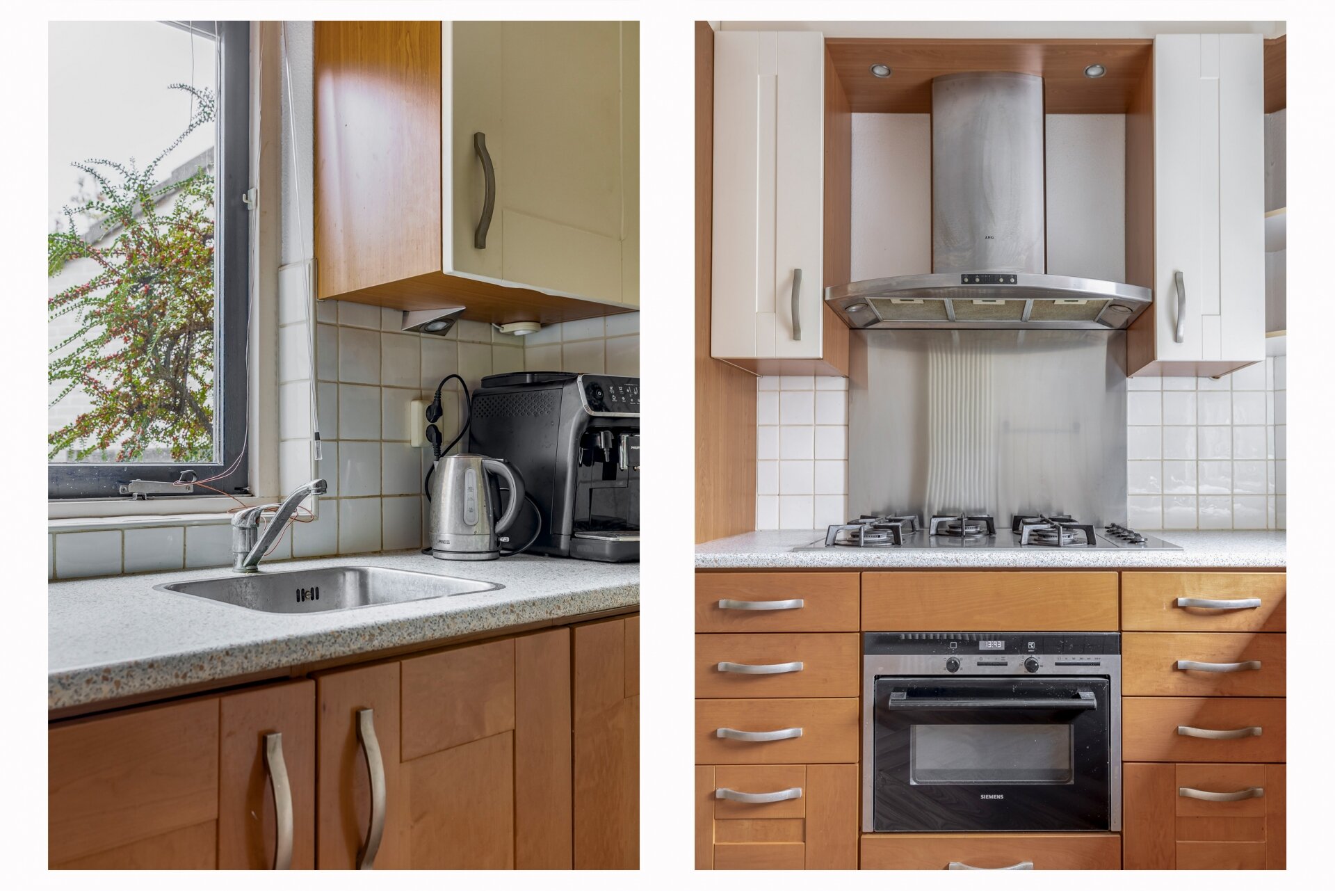 In de keuken zijn aanwezig; een fornuis met afzuigkap, een combi oven, een koel-,vriescombinatie en een vaatwasser.