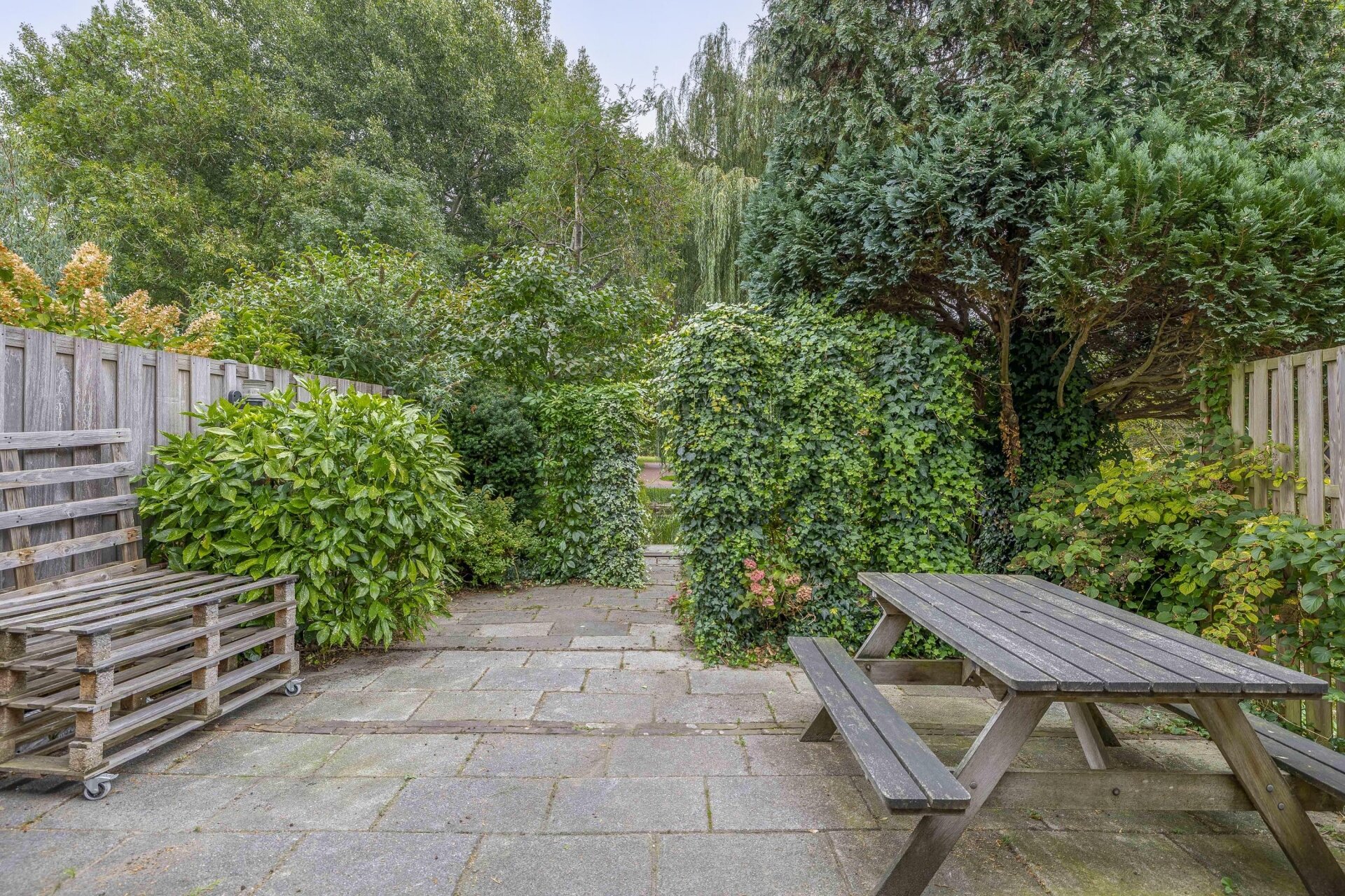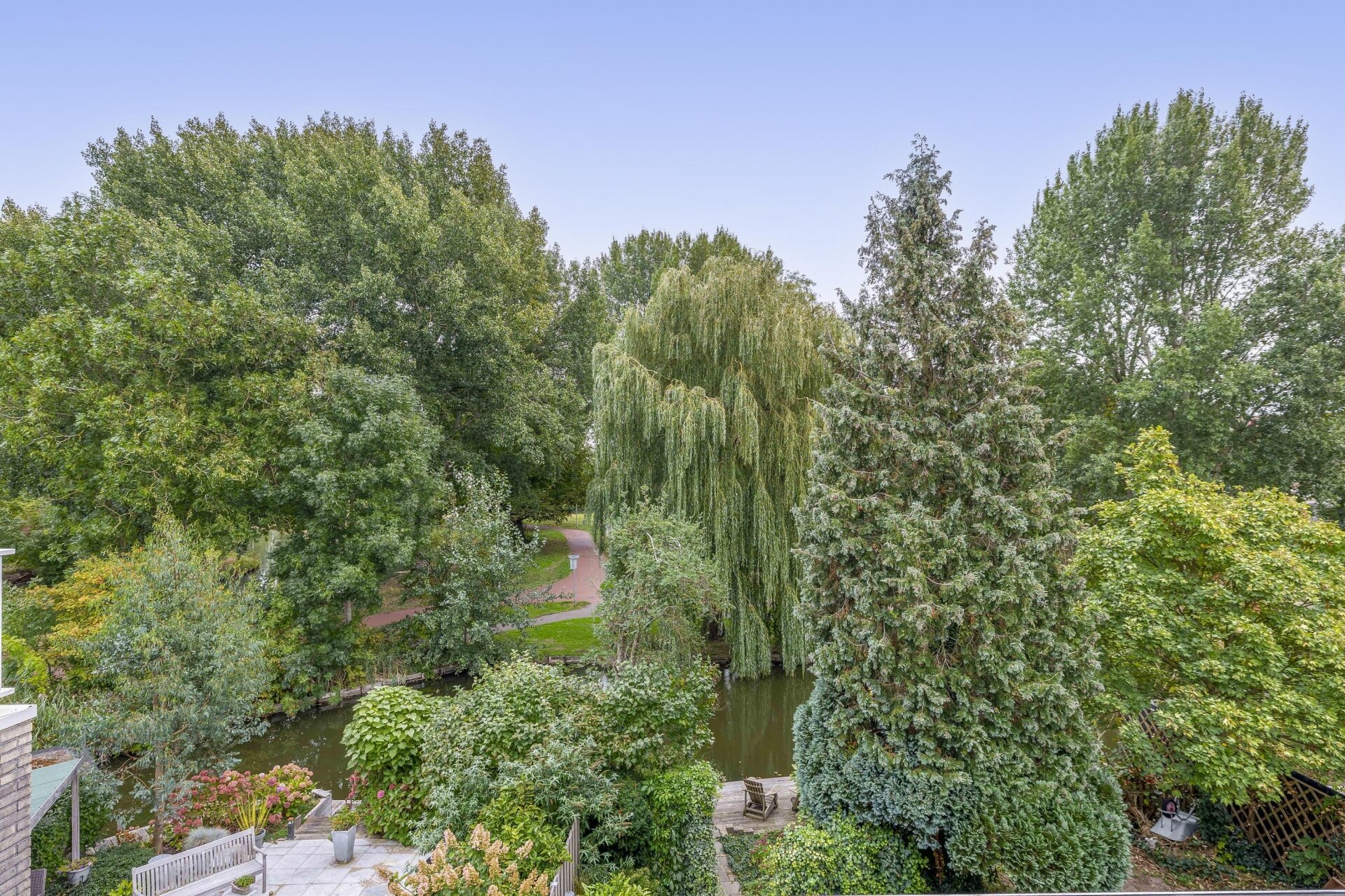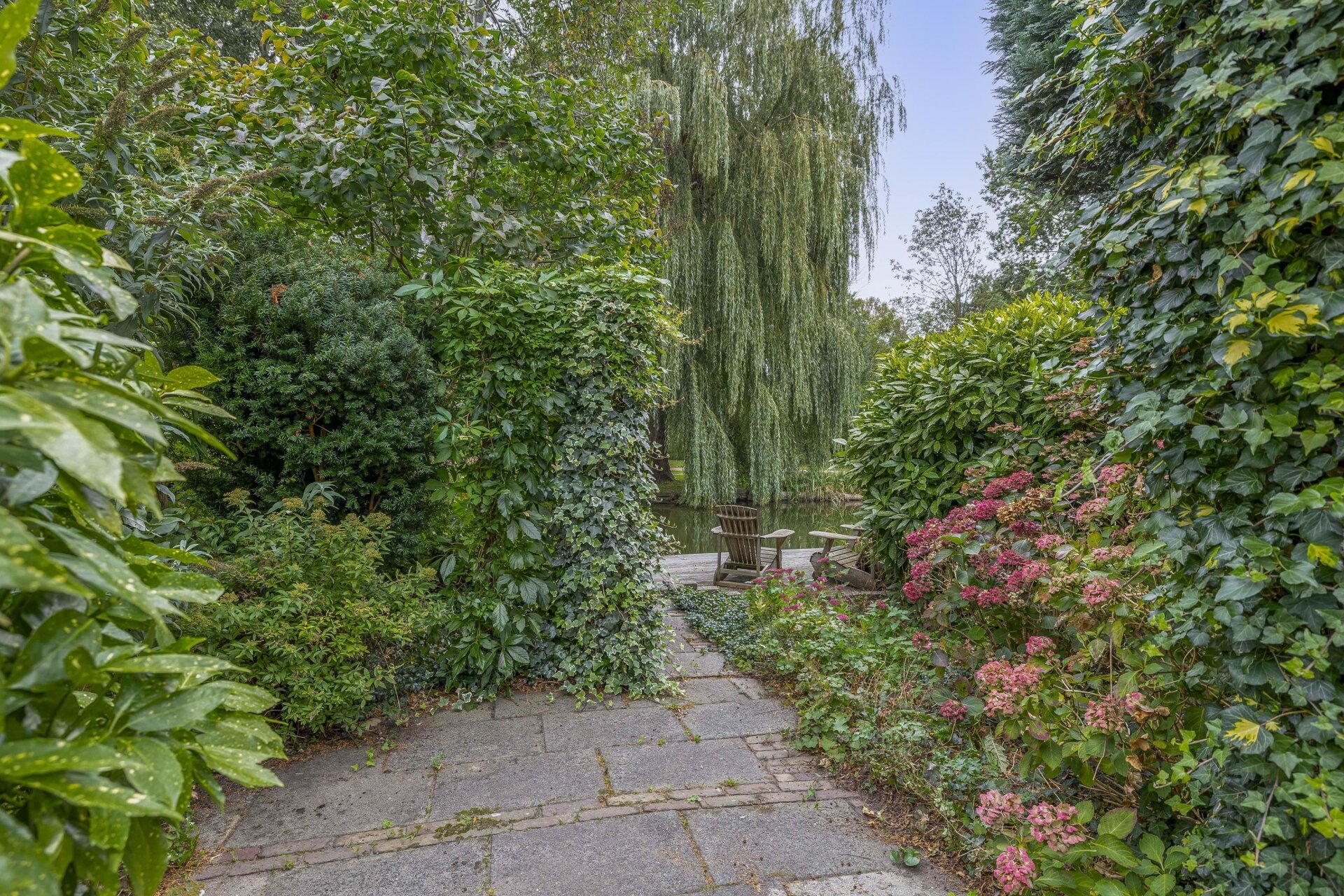 Deze groene oase van rust, grenst met een breed vlonder terras aan het water en biedt vrij uitzicht op het park aan de overzijde.