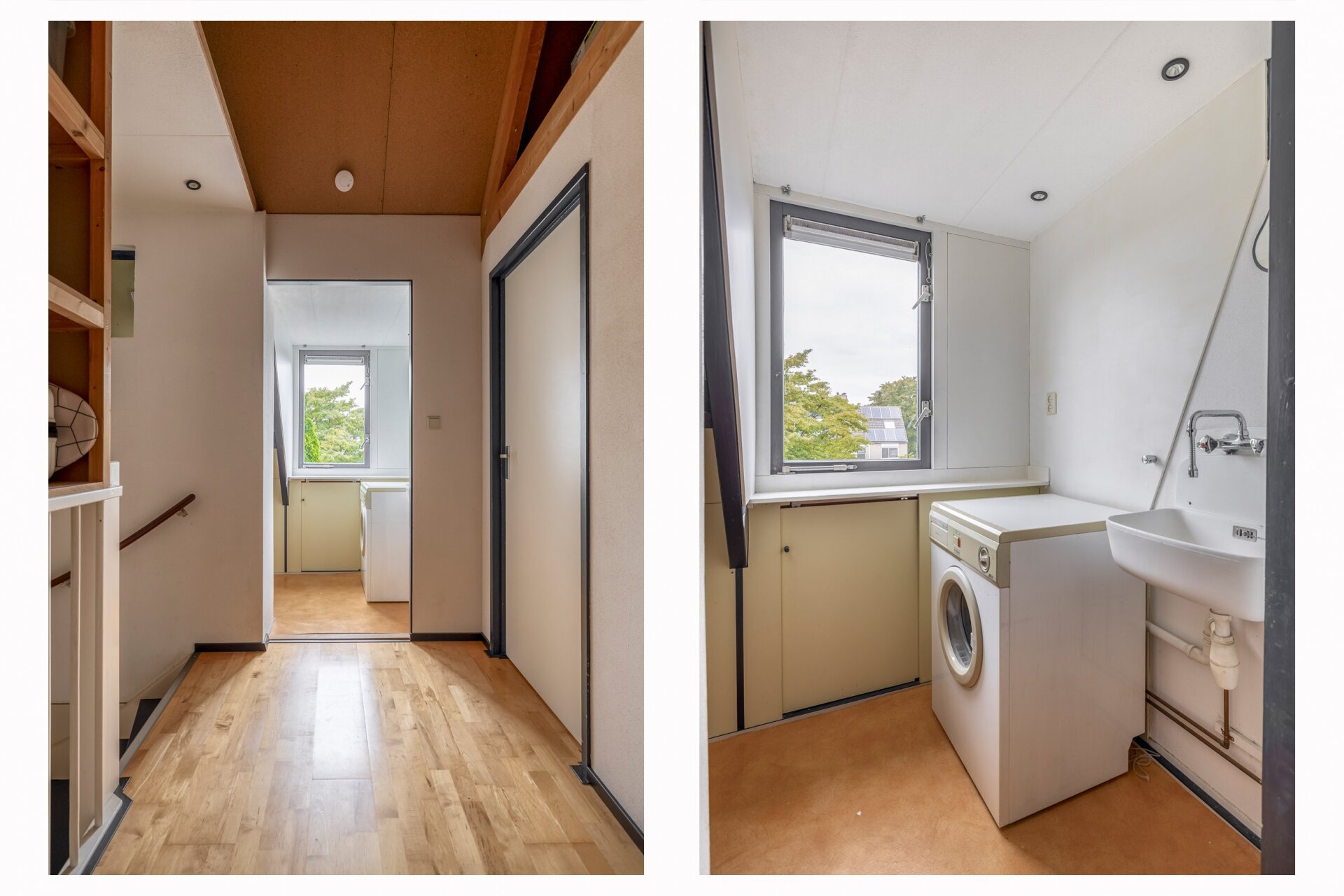 met douche gelegenheid. Op zolder is een aparte wasruimte gecreëerd, voorzien van aansluiting voor wasapparatuur, plus een wasbak.