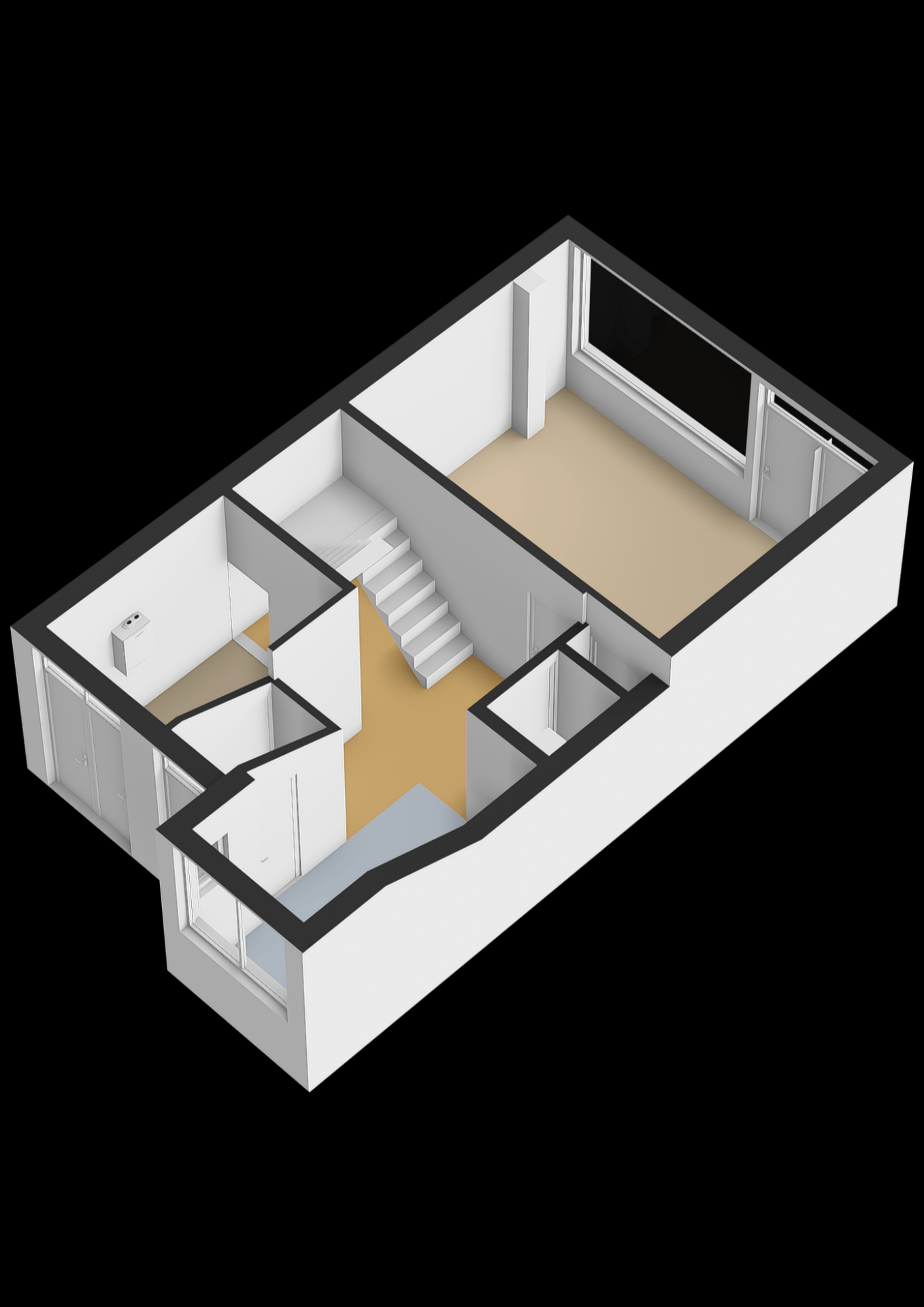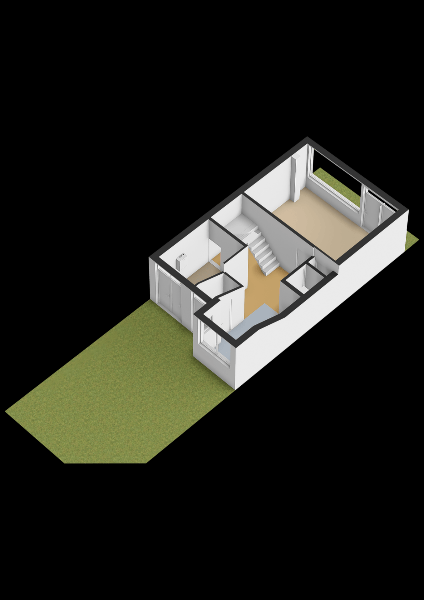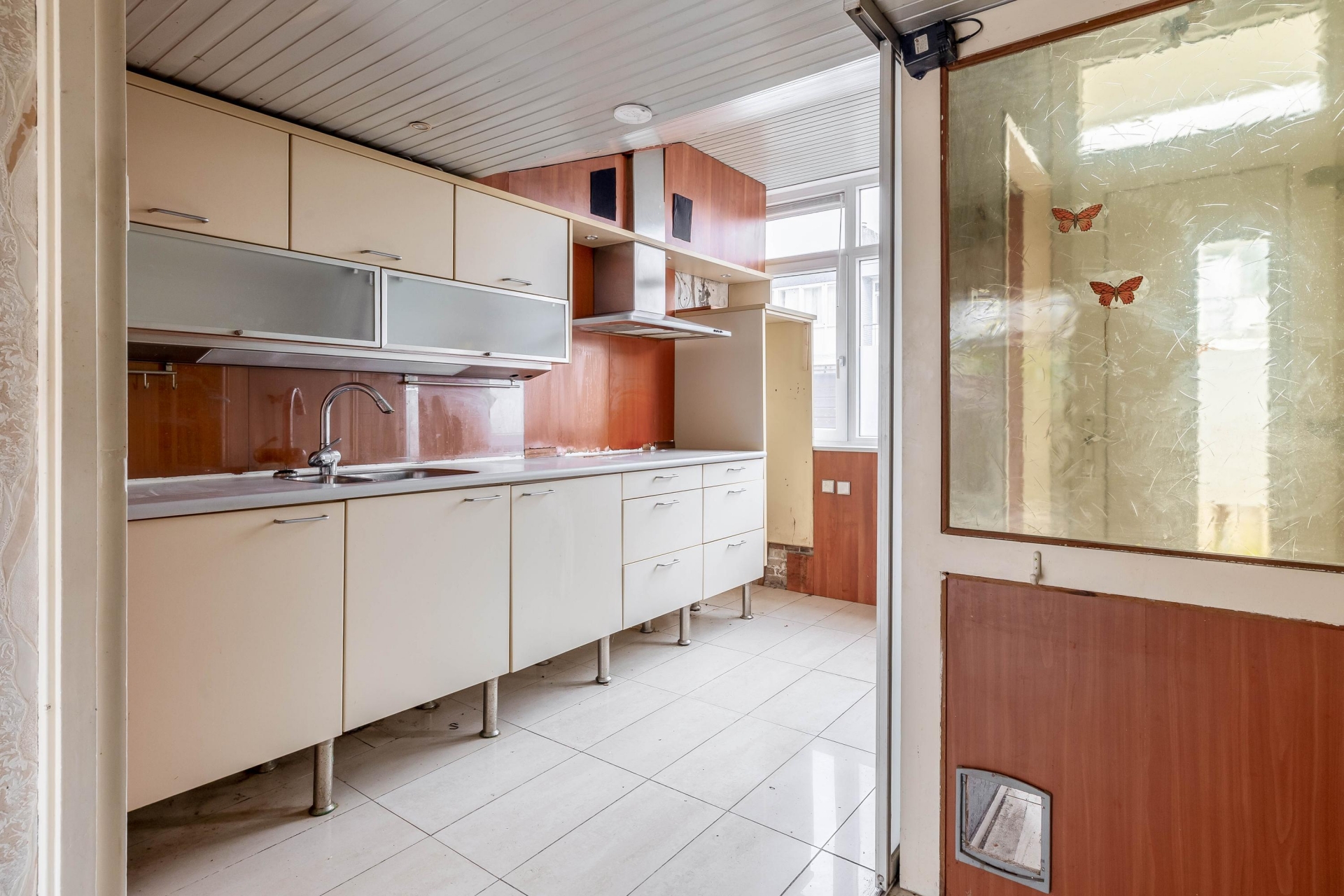 Bij binnenkomst kom je via de entree in de hal met toegang tot het toilet, de trapopgang en de verschillende vertrekken op de begane grond. De woonkamer ligt aan de achterzijde van het huis en valt direct op door de grote raampartij. Hierdoor komt er veel daglicht naar binnen en heb je een prettige verbinding met de tuin. De ruimte is goed in te delen met een zit- en eetgedeelte en biedt volop mogelijkheden om hier een moderne leefruimte van te maken. Vanuit de woonkamer stap je zo de achtertuin in, wat het geheel extra aantrekkelijk maakt. Aan de voorzijde van het huis bevindt zich de keuken.