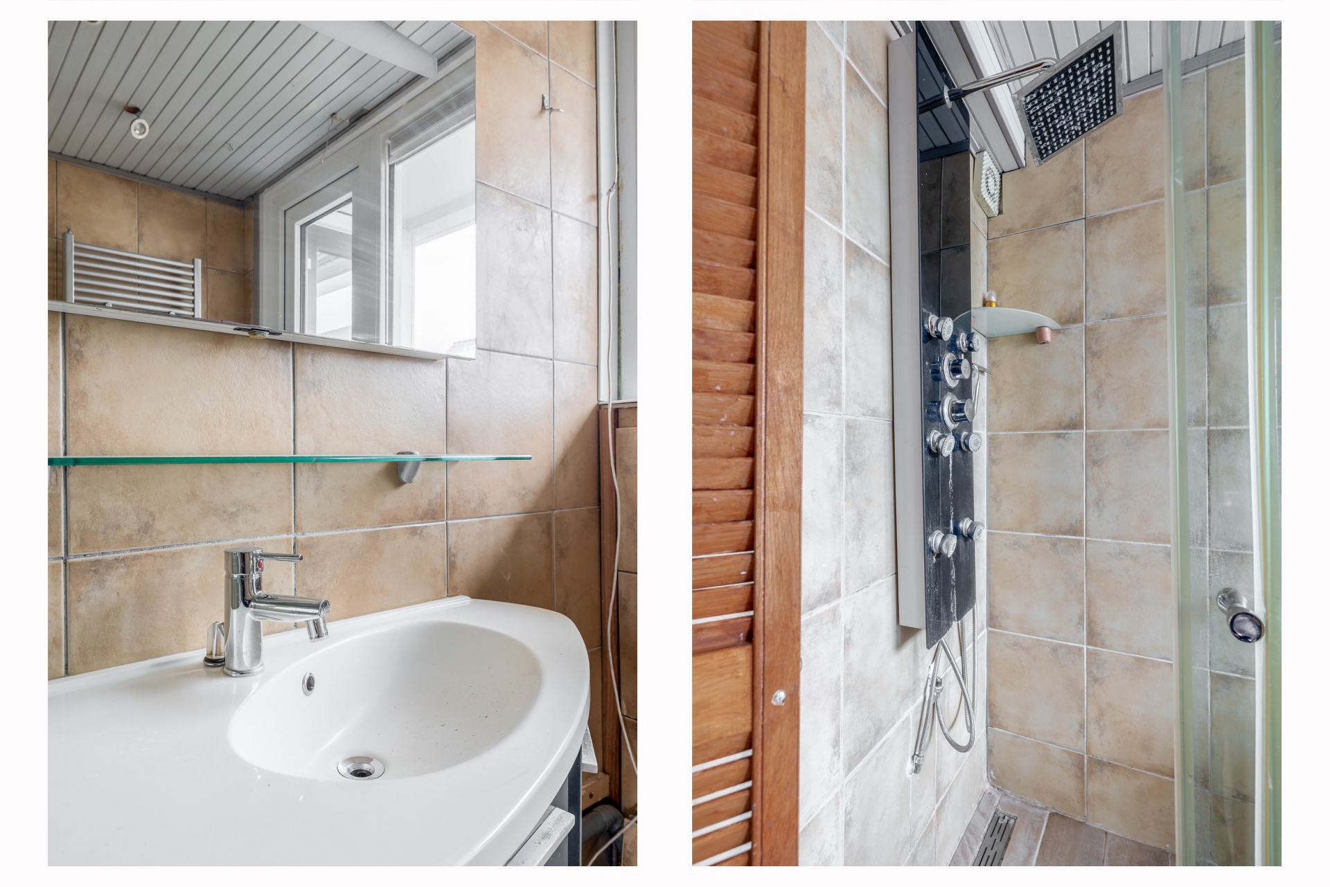 Op de eerste verdieping bevinden zich drie slaapkamers. De grootste slaapkamer ligt aan de achterzijde en biedt voldoende ruimte voor een tweepersoonsbed en kastruimte. De andere twee kamers zijn eveneens goed bruikbaar als slaap-, werk- of hobbykamer. De badkamer is functioneel ingericht met een douche, wastafel en toilet en ligt aan de voorzijde van het huis. De indeling van het huis is praktisch en overzichtelijk, wat het verbouwen overzichtelijk maakt. Met de juiste aanpak maak je hier een comfortabel en eigentijds thuis van.