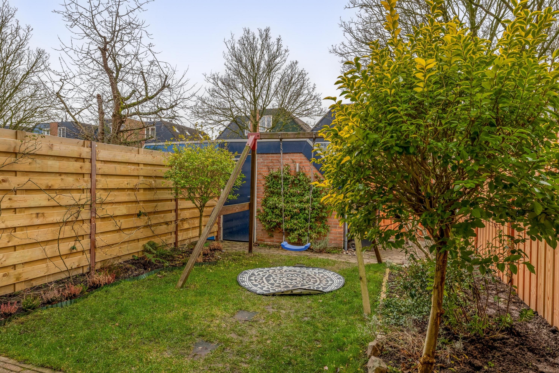 De achtertuin ligt op het zuidwesten, waardoor je hier heerlijk van de middag- en avondzon geniet. Een fijne plek om buiten te zitten terwijl kinderen spelen. Achterin de tuin staat een praktische berging en de erfafscheidingen zijn recent vernieuwd.