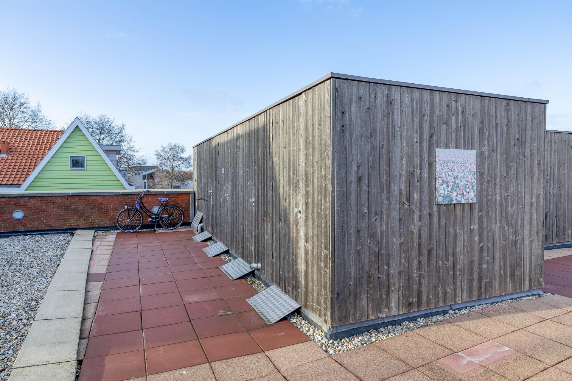 Eigen externe berging (ca. 5 m²), voorzien van elektra en ideaal voor fietsen en extra opslag.