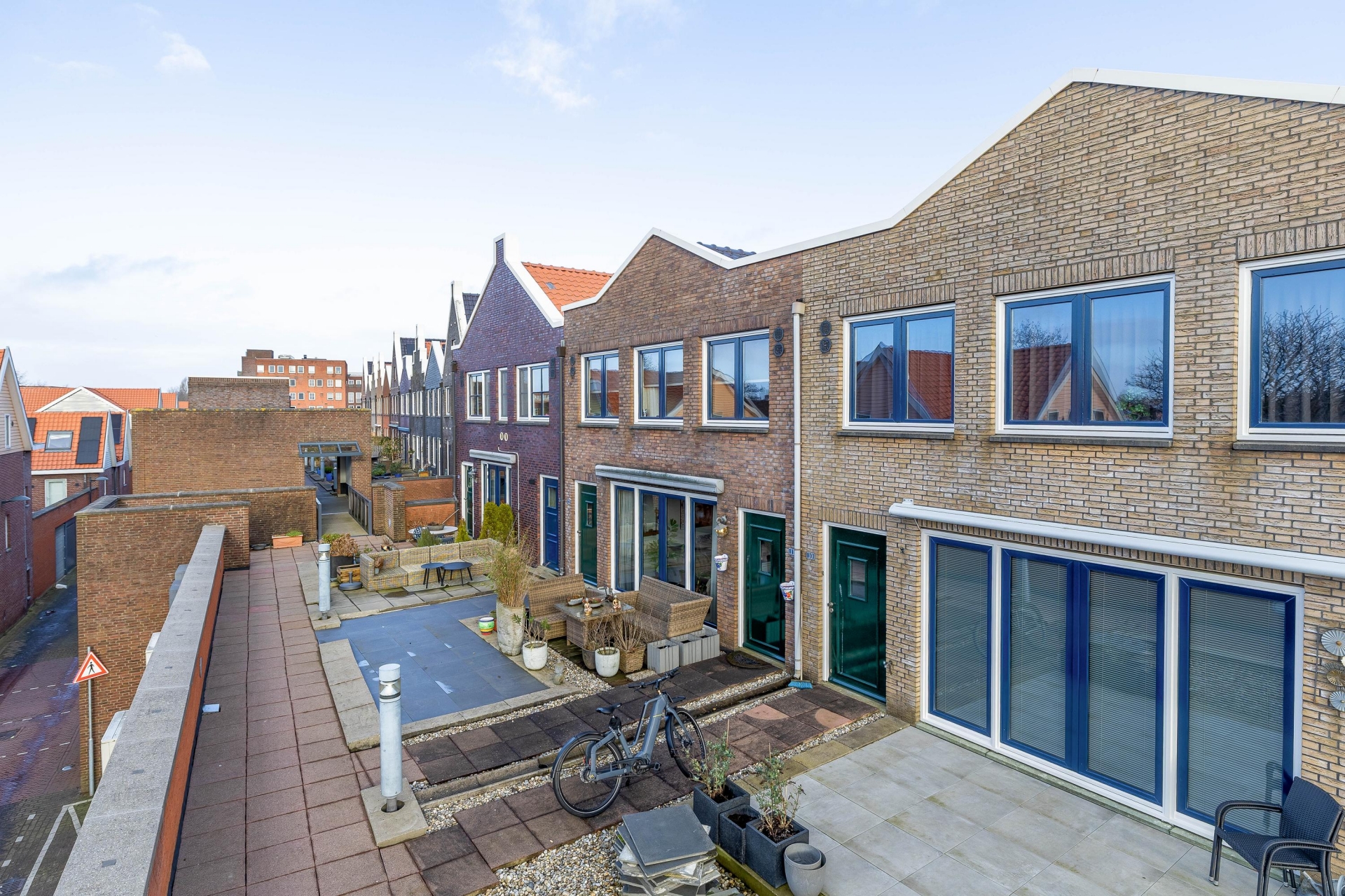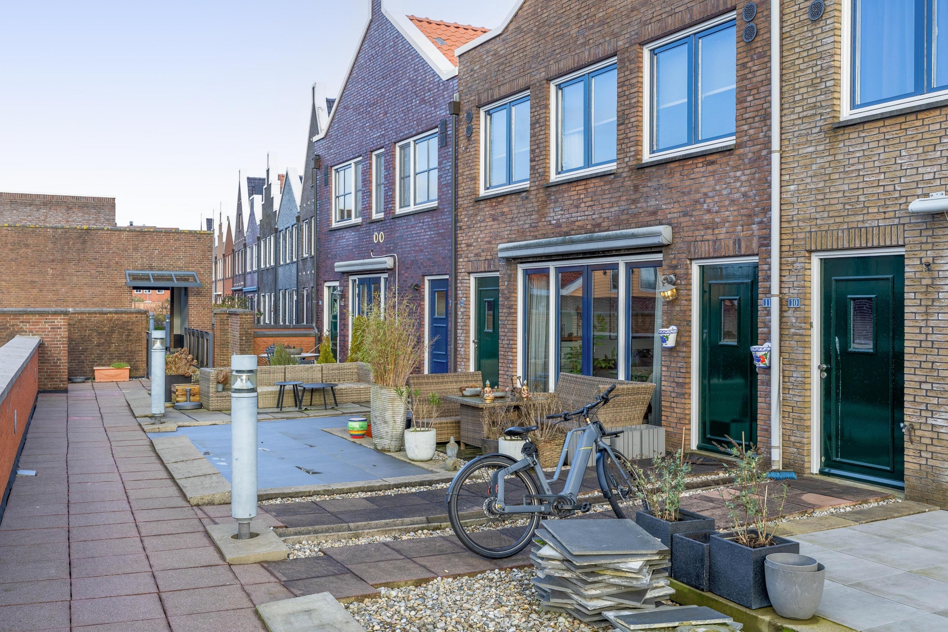 Het zonnige terras ligt aan de voorzijde van het appartement. In het centrum van Nootdorp geniet je hier toch van een oase van rust.
