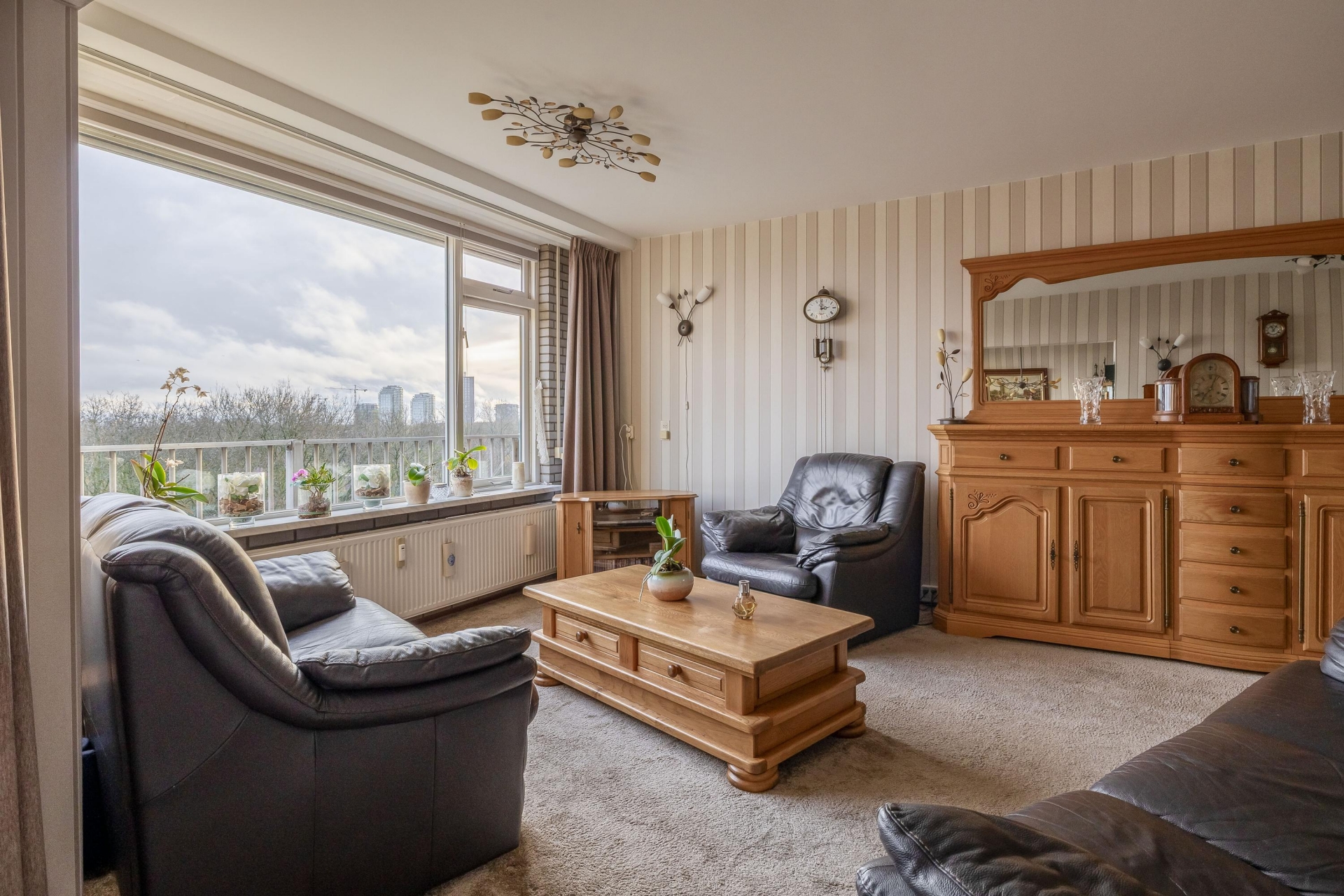 Bij binnenkomst valt direct op hoe ruim en licht dit appartement is. De woonkamer is breed opgezet, met grote raampartijen over de volle lengte waardoor het daglicht rijkelijk naar binnen stroomt. Het uitzicht is weids, groen en rustgevend een fijne plek om te ontspannen.