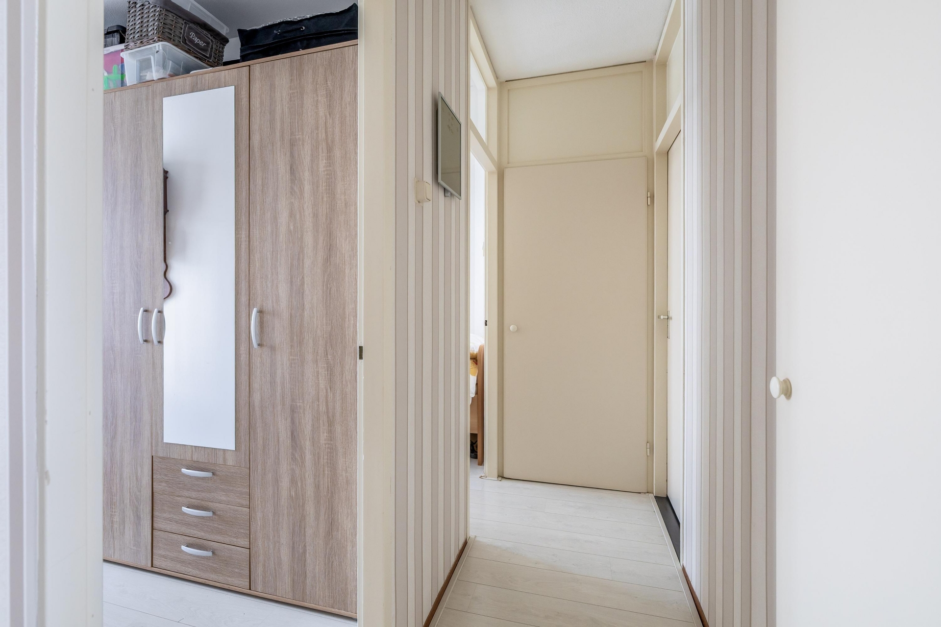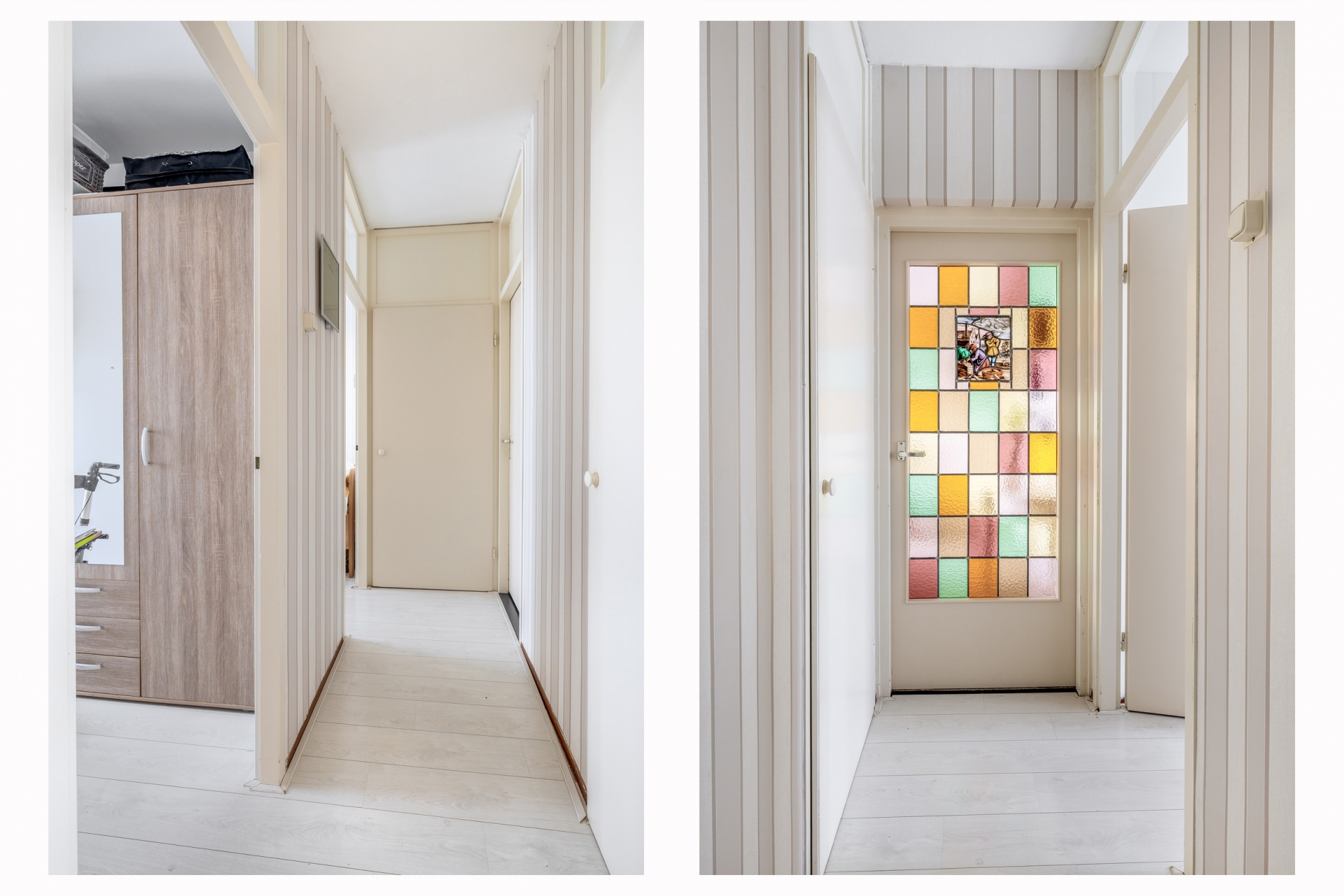 Dit appartement beschikt over drie slaapkamers, allemaal met ramen en een prettige indeling. De grootste slaapkamer ligt aan de balkonzijde en is ruim genoeg voor een groot bed en kast. De tweede slaapkamer doet momenteel dienst als werkkamer, en de derde is perfect als logeerkamer of kinderkamer.