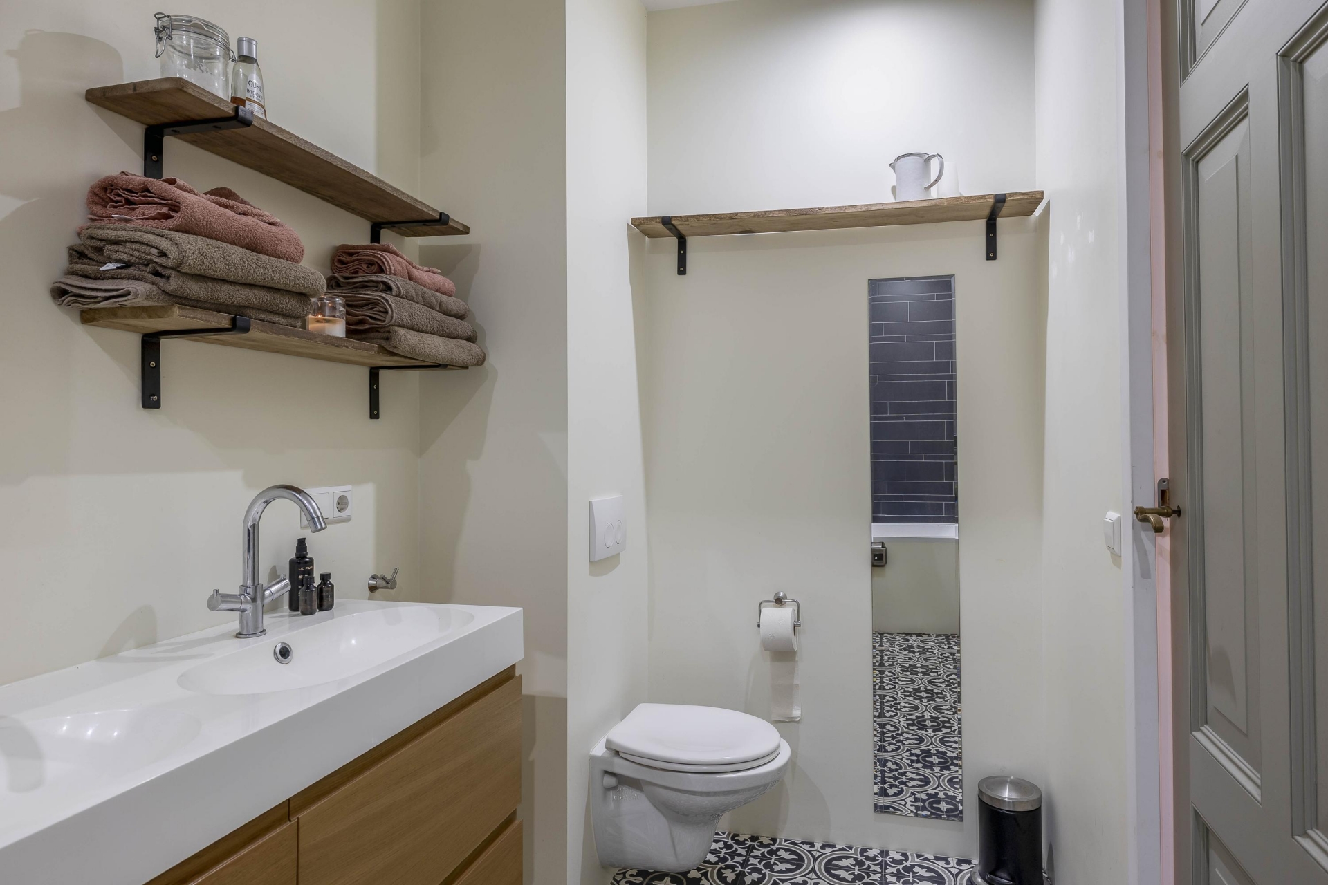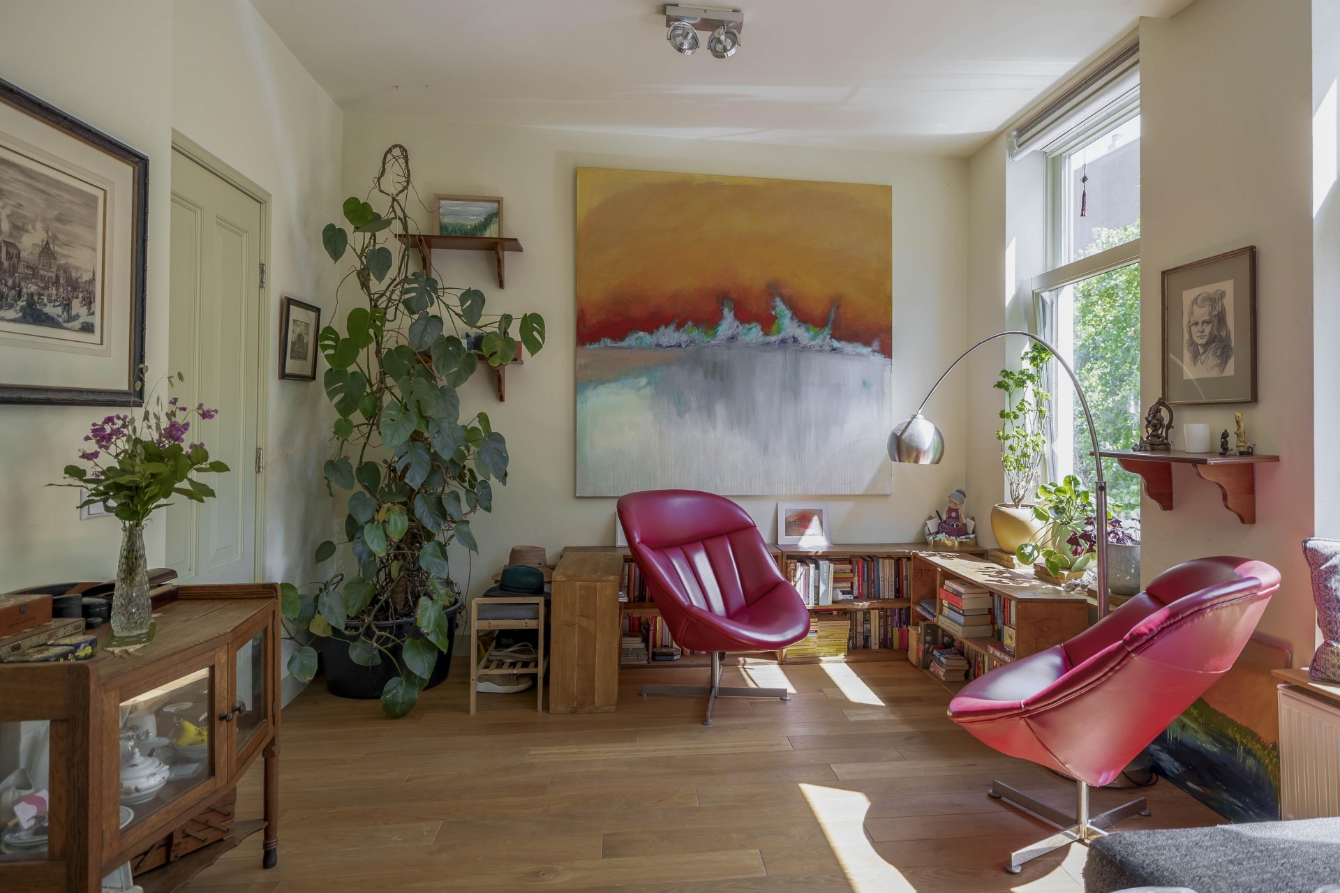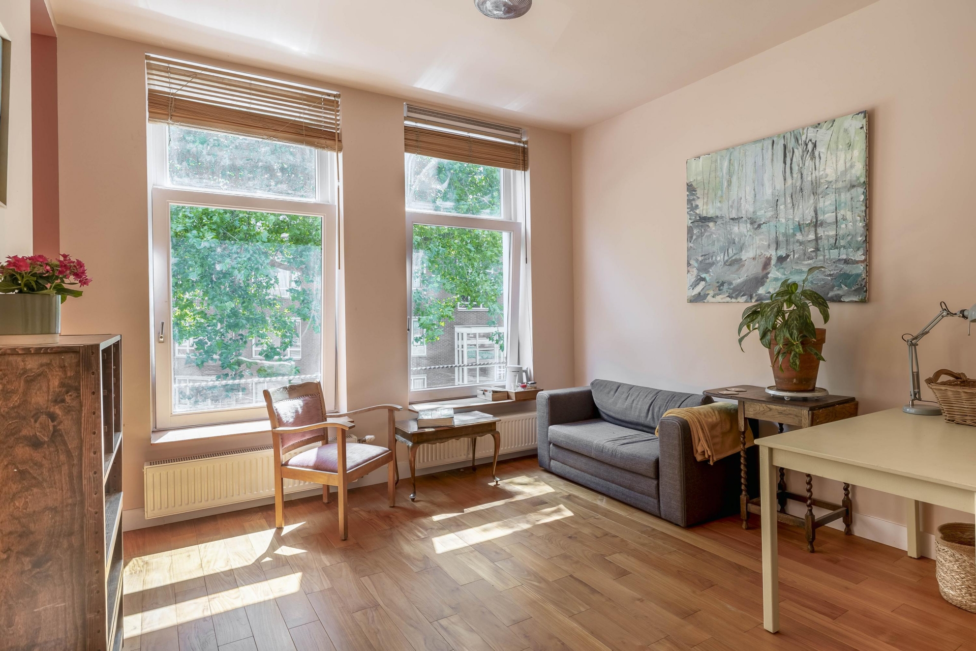 Op de eerste verdieping begint het woongedeelte, afgewerkt met een warme teakhouten vloer die direct sfeer brengt. Hier vind je een royale woonkamer met veel lichtinval, een fijne slaapkamer én een complete badkamer met ligbad. Op de tweede verdieping zet de sfeer zich door met een eiken houten vloer, een tweede badkamer én een speelse bedstee die deze verdieping echt bijzonder maakt, perfect als logeerplek of knusse slaapruimte voor een kind. De slimme verdeling van de kamers maakt het eenvoudig om de ruimtes aan te passen aan je levensfase of woonwensen. Werk je veel thuis? Dan is er ruimte genoeg voor een inspirerende werkplek. Heb je juist behoefte aan een extra slaapkamer of hobbyruimte? Ook dat is zo geregeld.