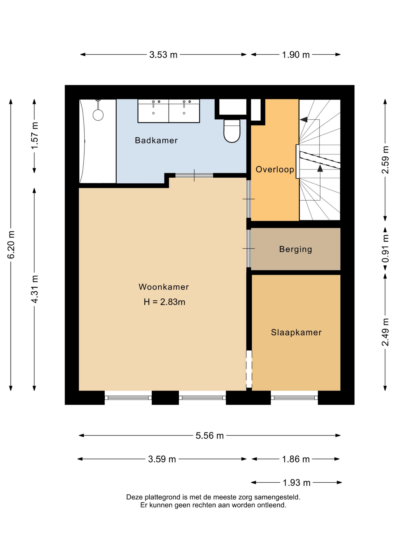 “Deze informatie is door ons met de nodige zorgvuldigheid samengesteld. Onzerzijds wordt echter geen enkele aansprakelijkheid aanvaard voor enige onvolledigheid, onjuistheid of anderszins, dan wel de gevolgen daarvan. Alle opgegeven maten en oppervlakten zijn indicatief.”