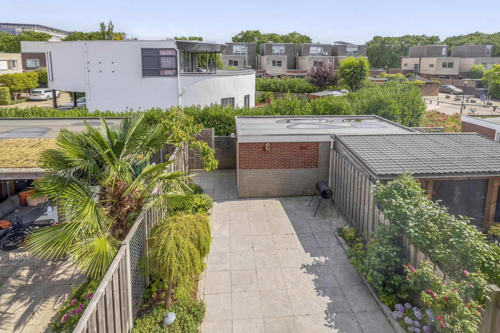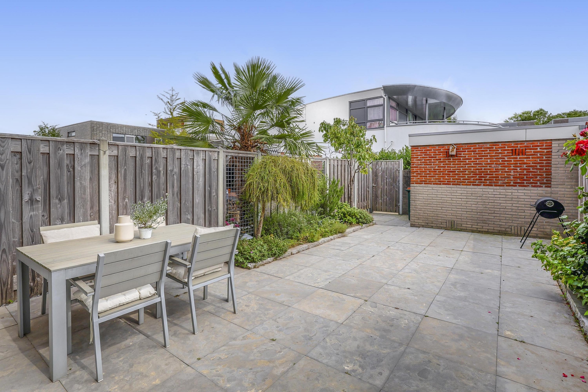 De achtertuin is een groot pluspunt van dit huis vanwege de diepte en ligging op het zuidoosten, waardoor je op elk moment van de dag wel ergens in de zon kunt zitten. Hier geniet je in alle rust van je ochtendkoffie, een goed boek of een gezellige borrel met vrienden.
