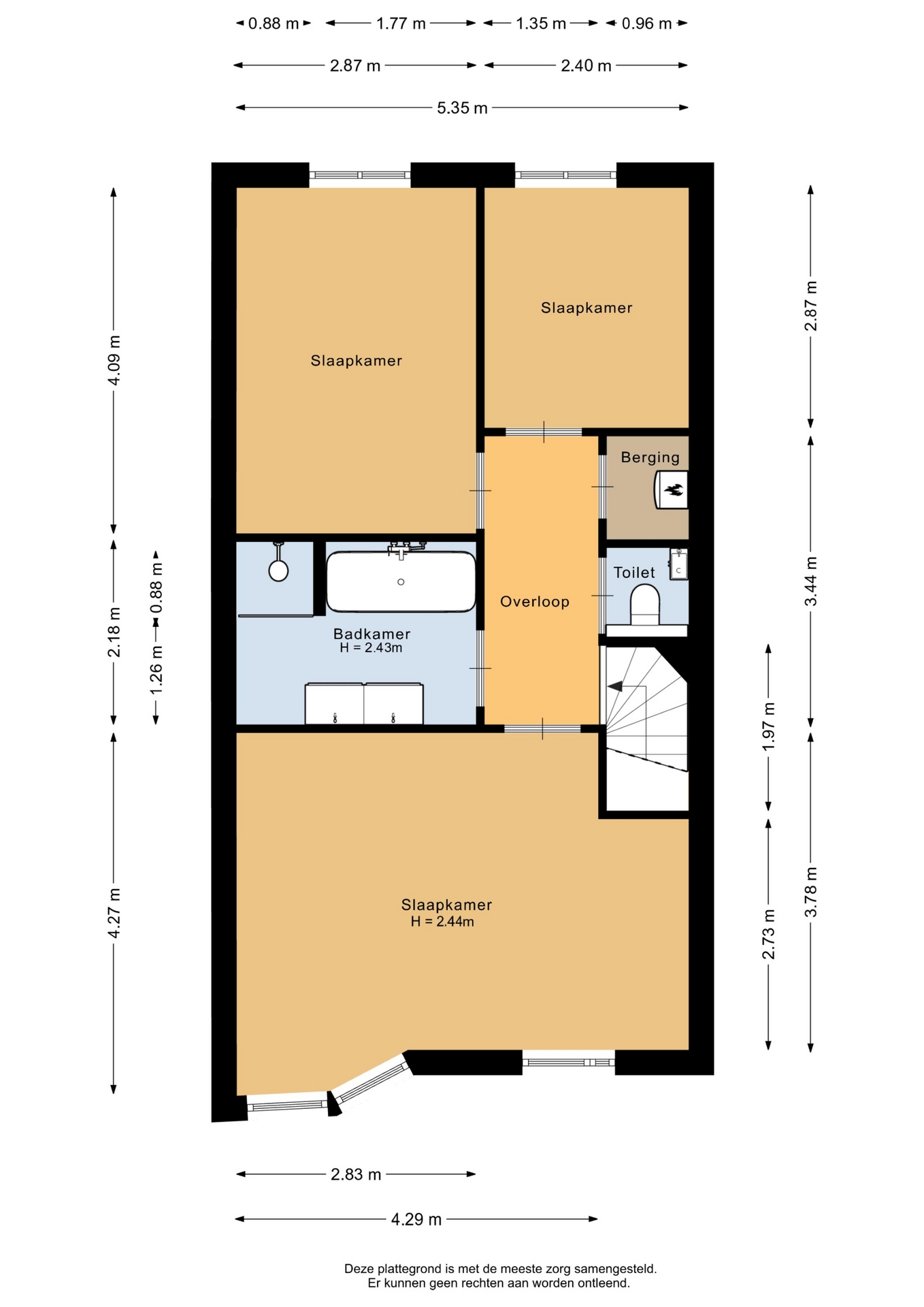 “Deze informatie is door ons met de nodige zorgvuldigheid samengesteld. Onzerzijds wordt echter geen enkele aansprakelijkheid aanvaard voor enige onvolledigheid, onjuistheid of anderszins, dan wel de gevolgen daarvan. Alle opgegeven maten en oppervlakten zijn indicatief.”