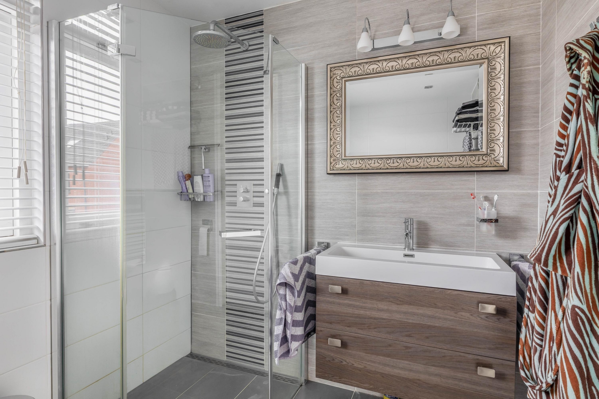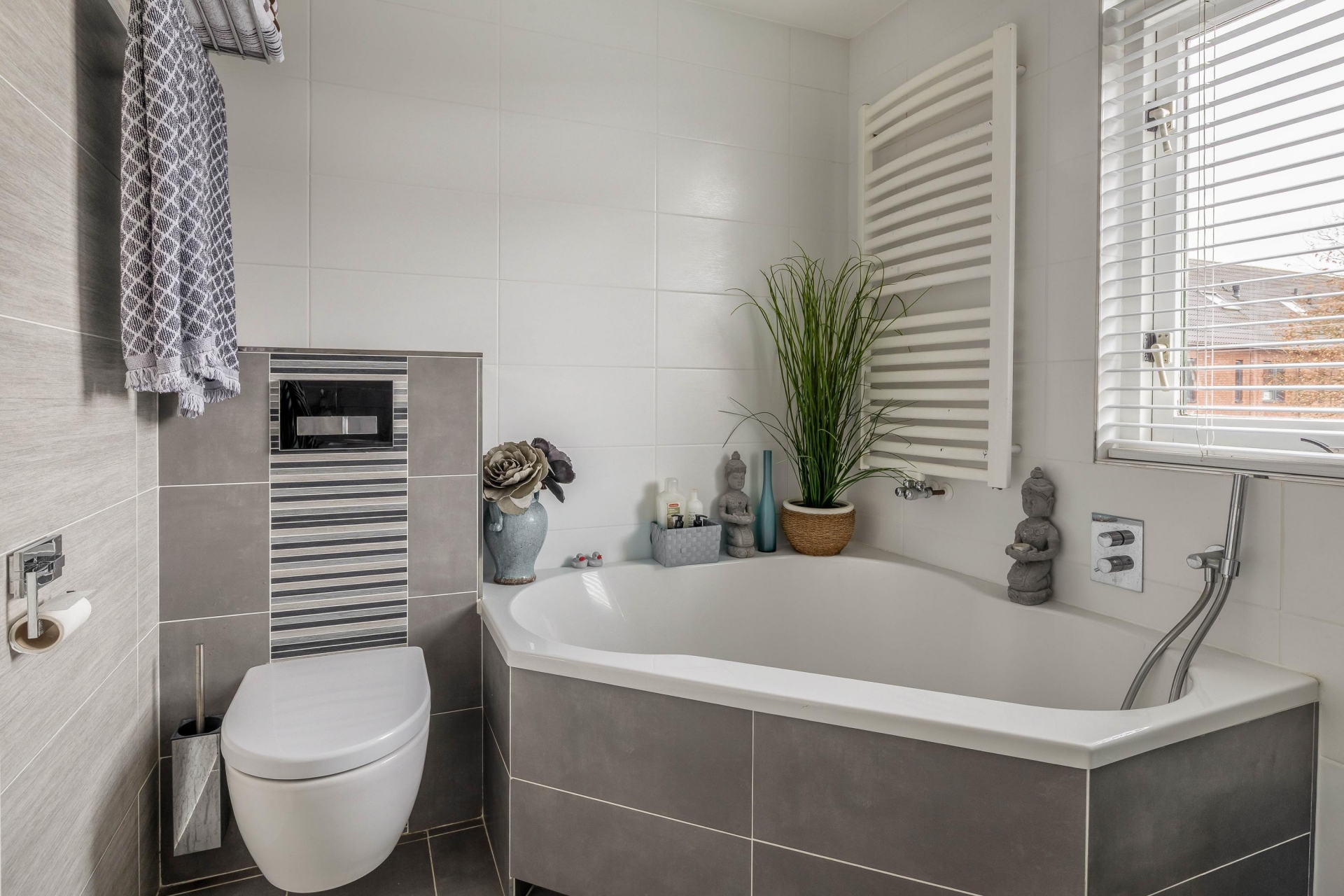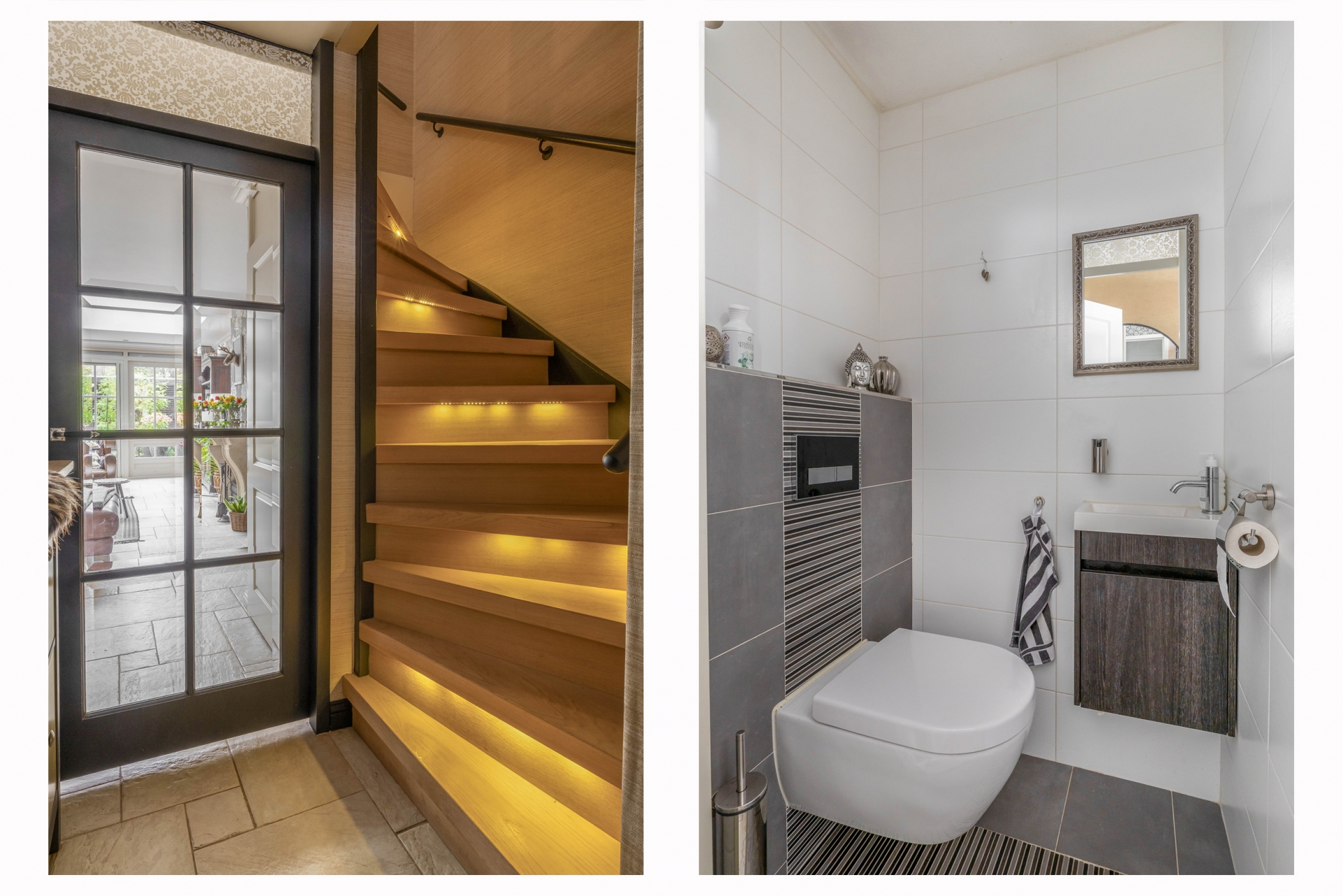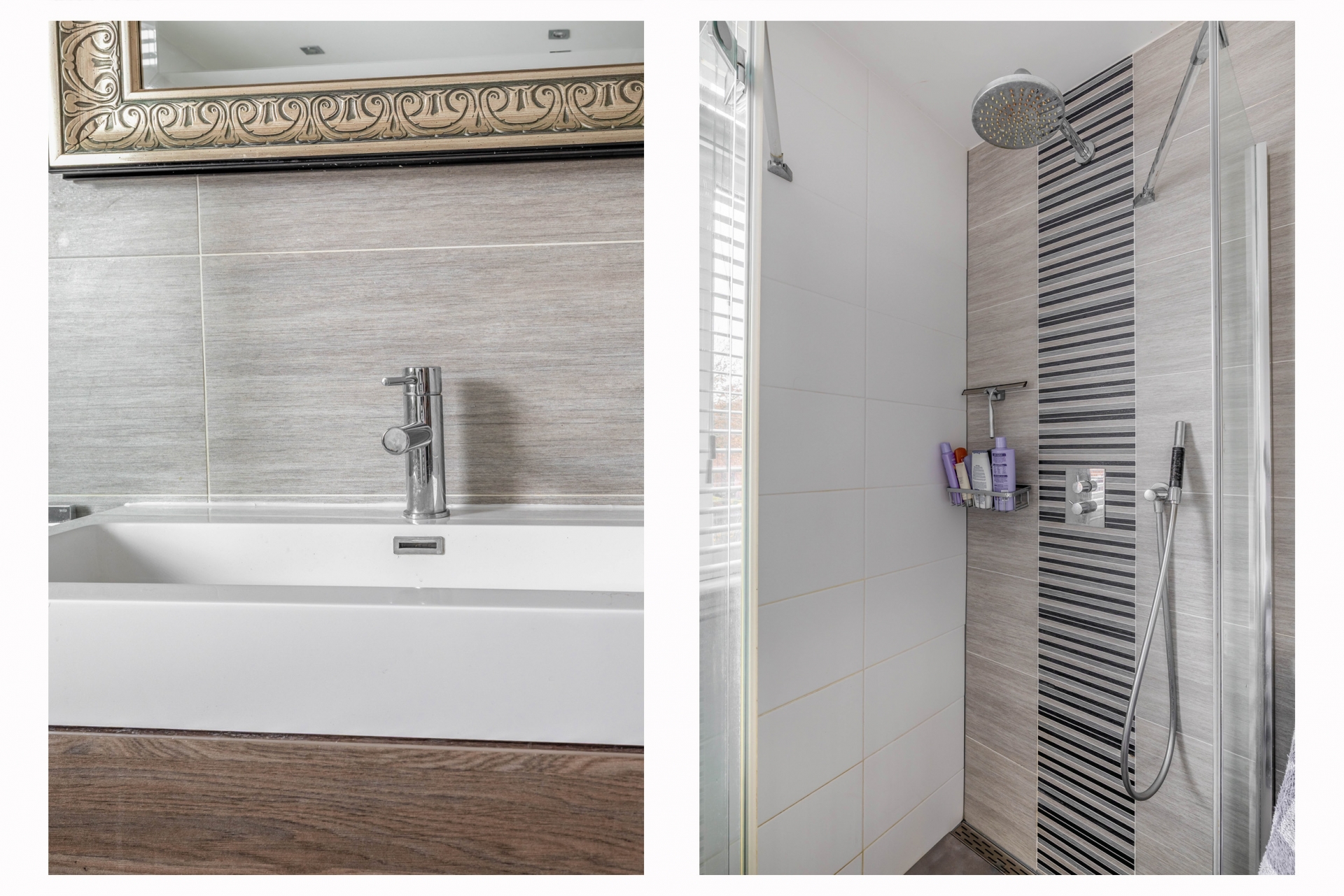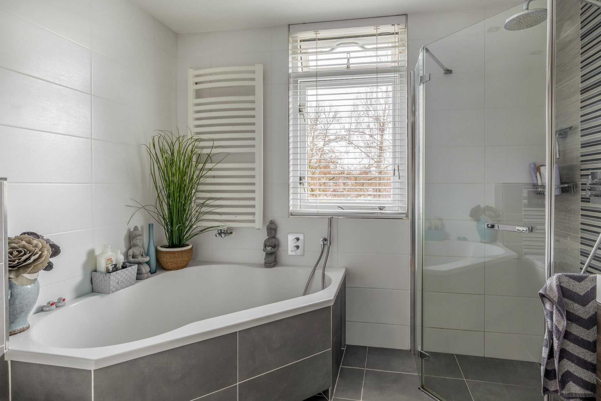 De woning kenmerkt zich door een verzorgde afwerking en diverse uitgevoerde verbeteringen. De vergrote badkamer is praktisch en stijlvol ingericht met een ligbad met sfeerverlichting, een inloopdouche, een hangend toilet en een modern wastafelmeubel.