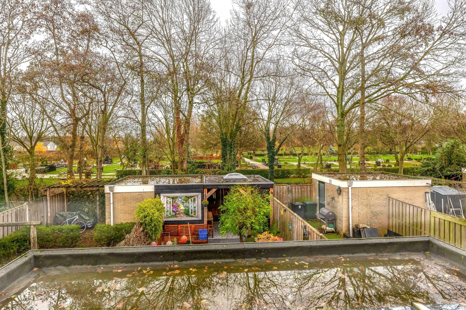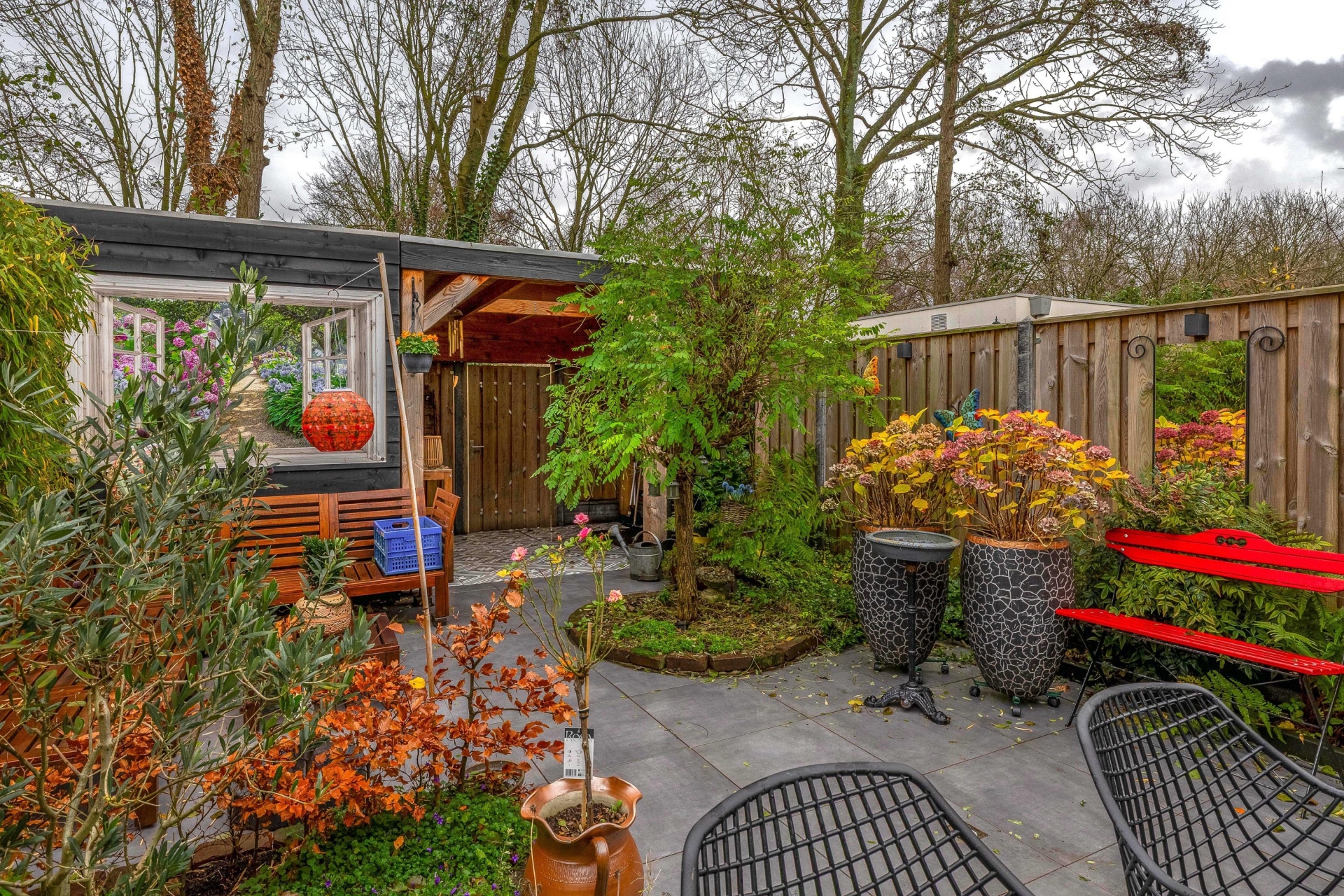 De circa 10 meter diepe achtertuin op het oosten biedt een heerlijke plek om te ontspannen en te genieten van de ochtend- en middagzon. In de tuin bevindt zich een stenen berging, afgewerkt met houten betimmering, voorzien van elektra. Daarnaast is er een overkapping met lichtkoepel, wat zorgt voor extra licht en comfort.