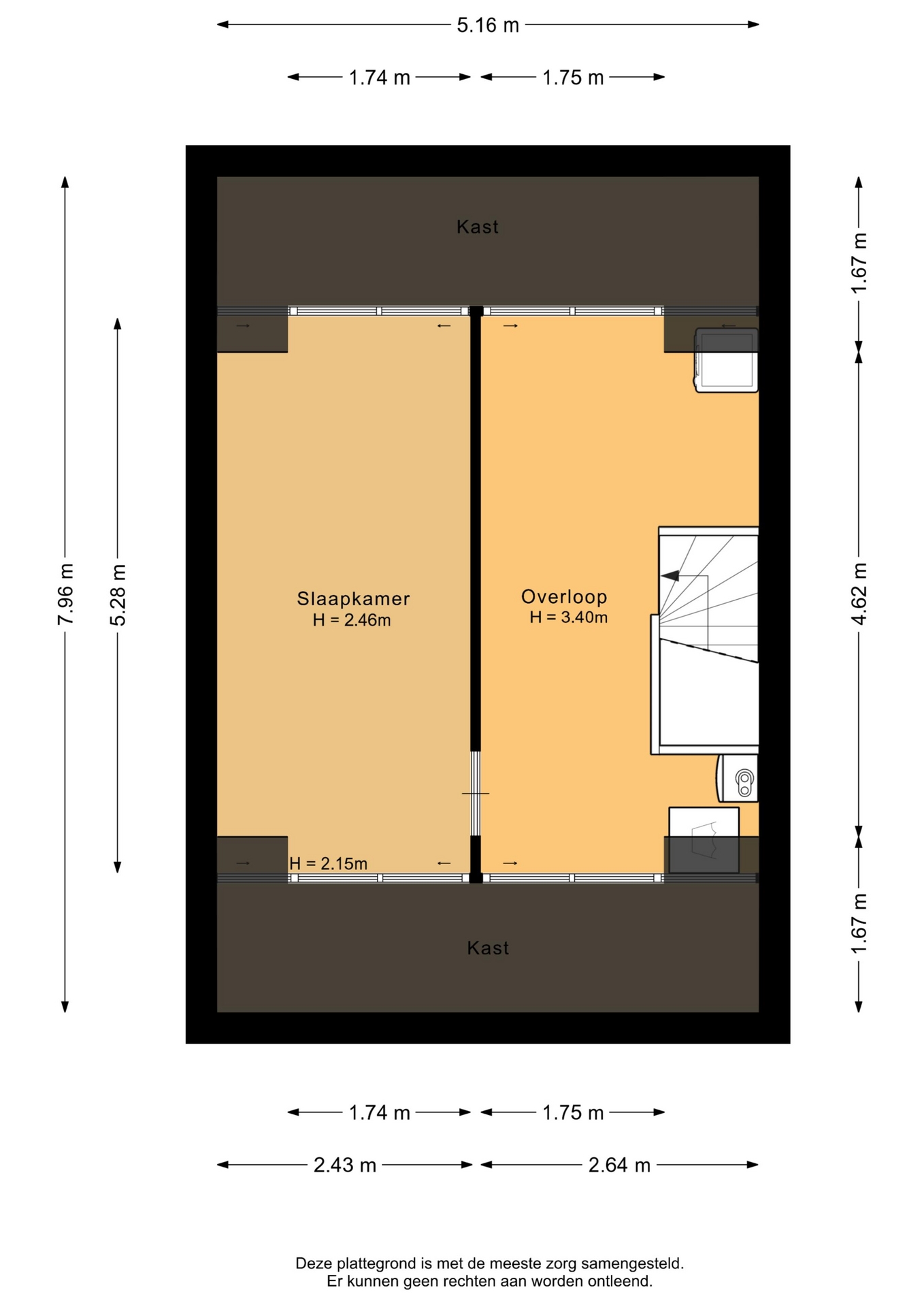 De tweede verdieping biedt een volwaardige derde slaapkamer en een ruime overloop met opstelplaats voor de wasmachine. Of het nu gaat om een gezin, thuiswerken of extra bergruimte: deze woning biedt de flexibiliteit om met u mee te bewegen.