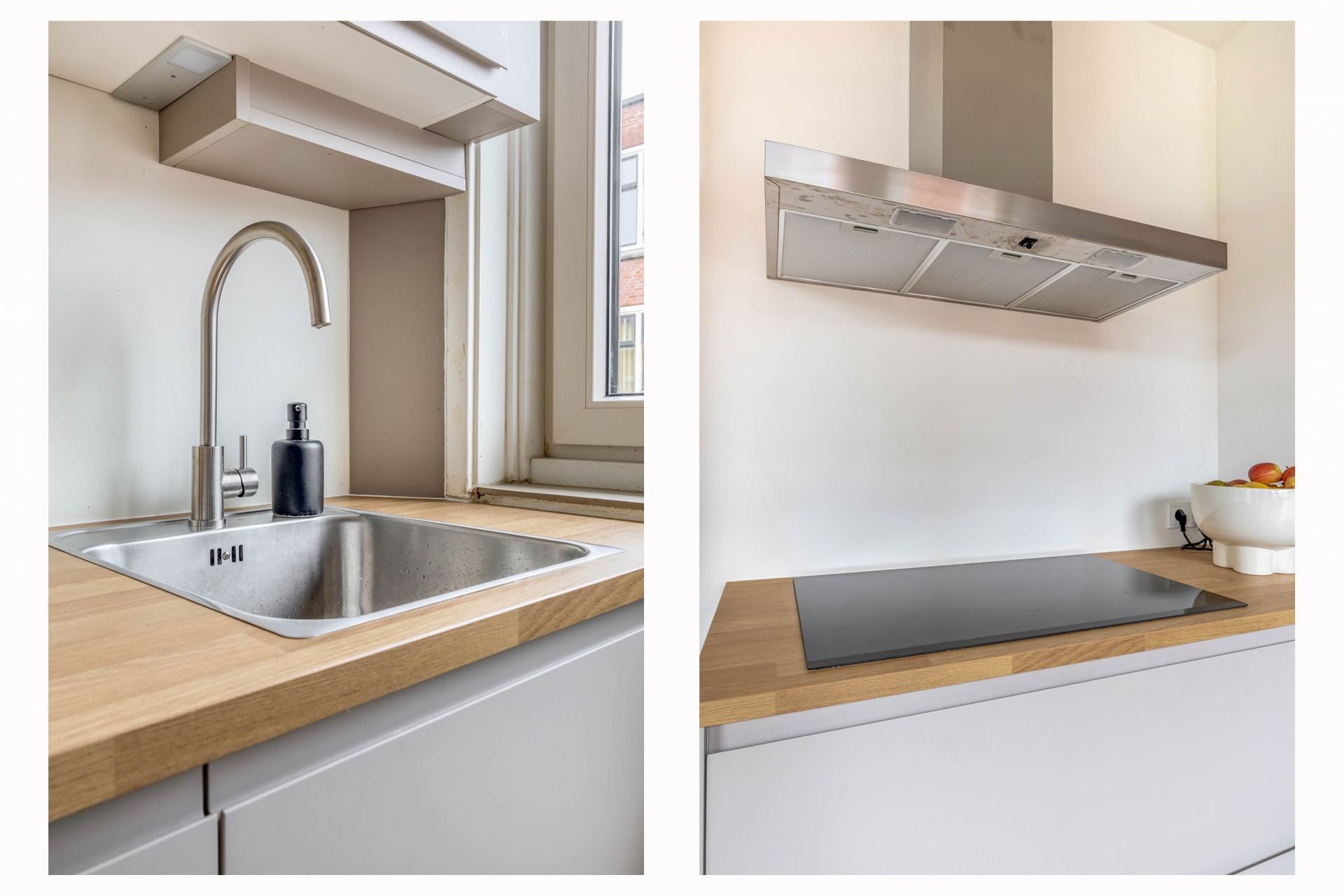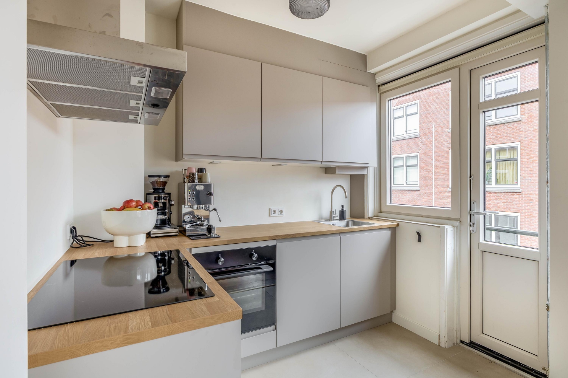 De keuken is in 2024 volledig vernieuwd en vormt nu het hart van het huis. Door de open opstelling kun je tijdens het koken makkelijk contact houden met vrienden of familie aan tafel. Tegelijk met het vernieuwen van de keuken is ook de meterkast vernieuwd, met extra groepen voor de keuken. Aan de voorzijde heb je toegang tot het eerste balkon. De badkamer is in 2025 vernieuwd en praktisch ingedeeld met een moderne inloopdouche, wastafelmeubel en spiegel. Het toilet is apart en bevindt zich in de hal, net als een handige bergkast.