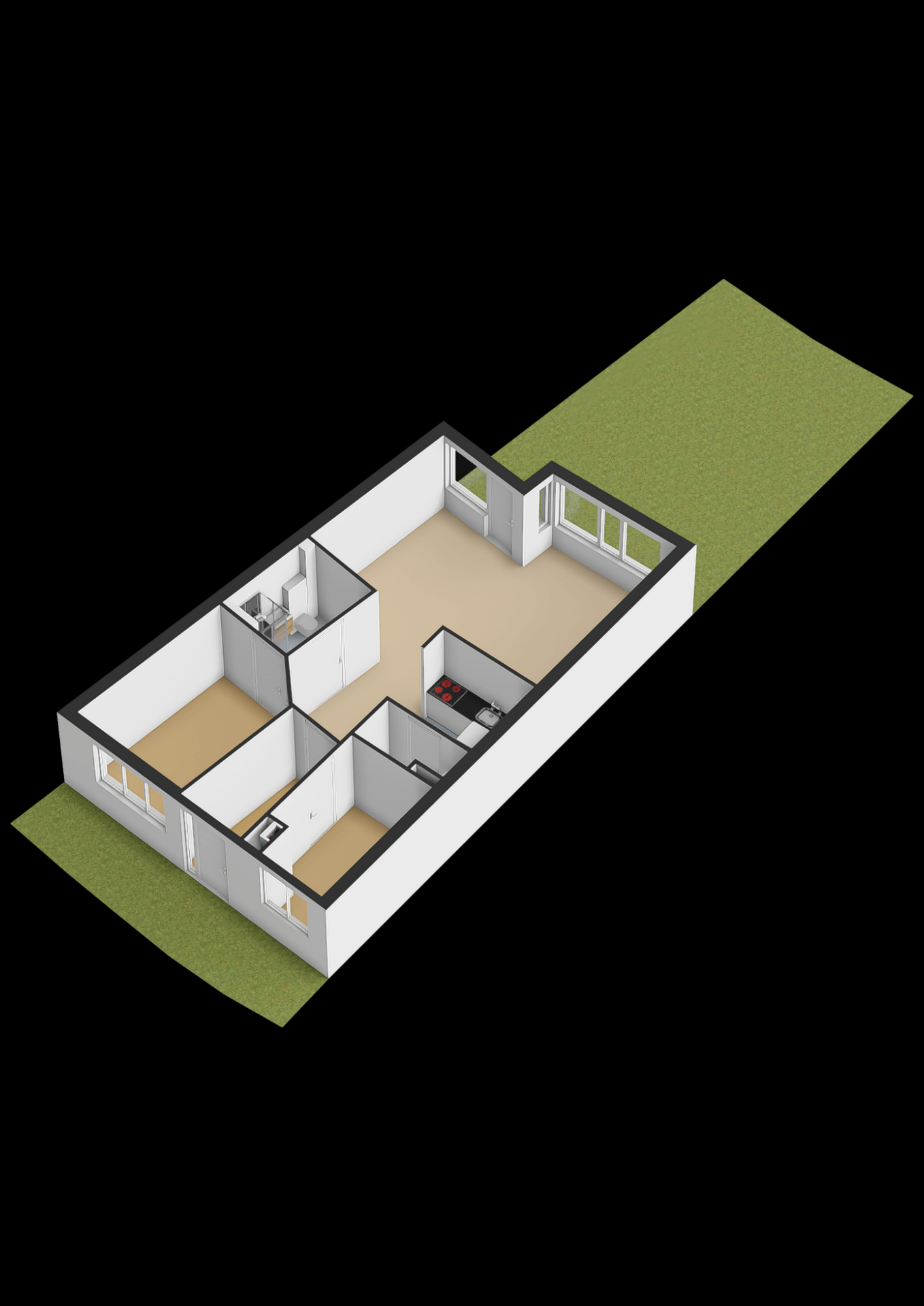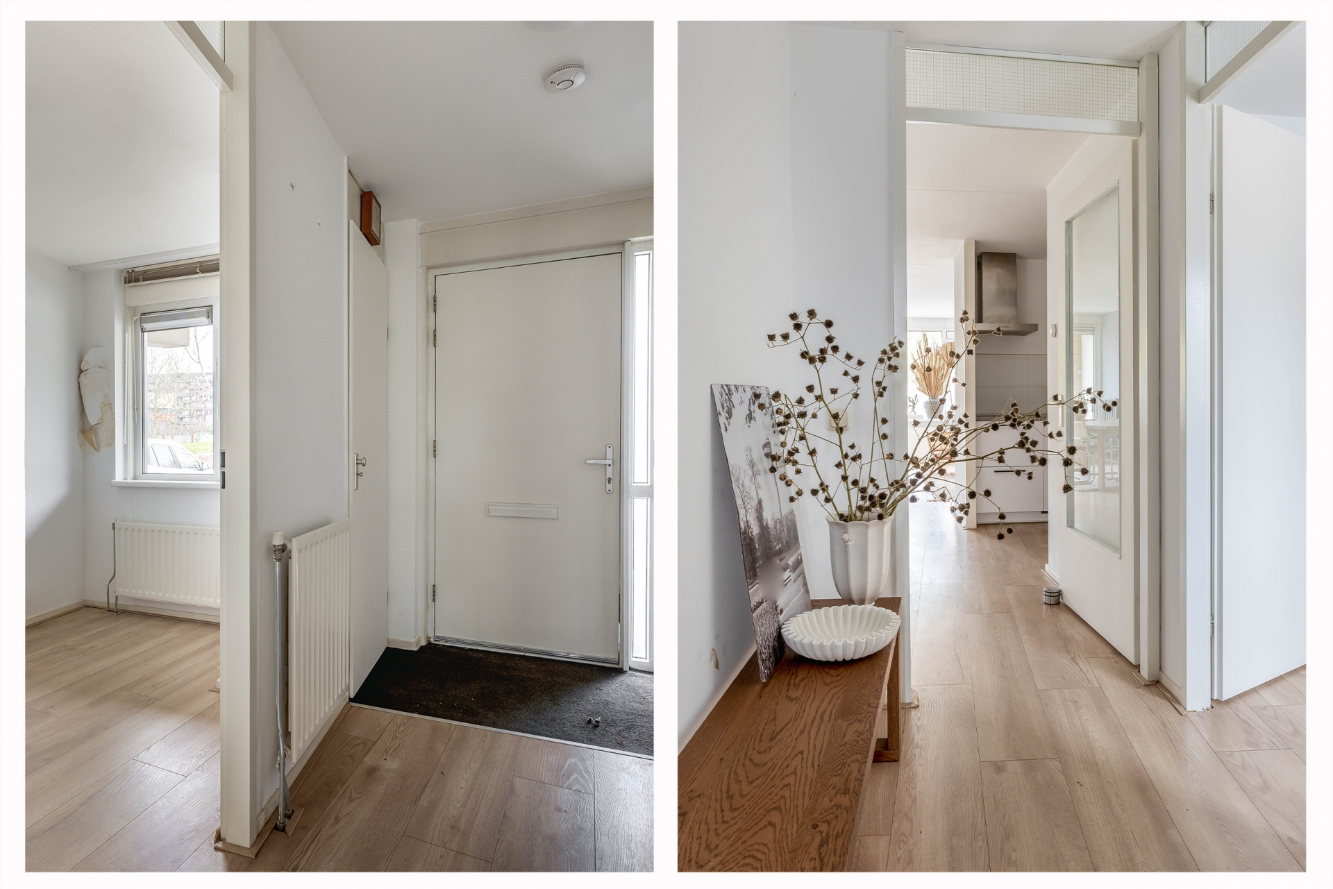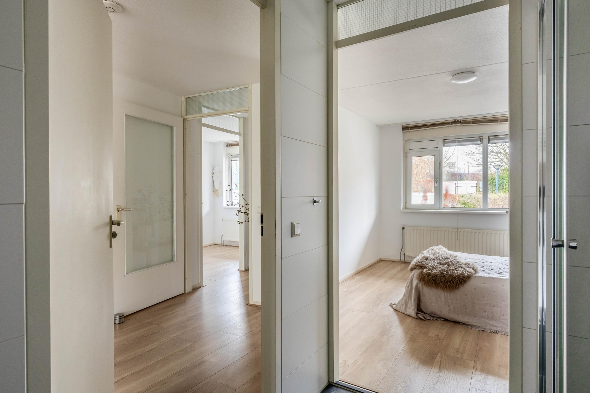 De woonkamer is heerlijk licht door de grote raampartijen en biedt genoeg ruimte voor een fijne zithoek en een eethoek. De wanden zijn strak afgewerkt en de vloer is neutraal en modern, waardoor je hier zó in kunt. De half open keuken is in een strak, wit design en voorzien van de nodige inbouwapparatuur. Een van de grootste pluspunten van dit huis is zonder twijfel de tuin. Deze ligt op het zuiden, waardoor je de hele dag kunt genieten van de zon. Aan de achterzijde grenst de tuin aan een groenstrook met water – wat zorgt voor een vrij en ontspannen uitzicht. Er is voldoende plek voor een loungeset, een eettafel en eventueel een kleine kas of tuinkast. Achterin de tuin bevindt zich een eigen achterom en er is volop privacy door de slimme ligging van het complex.