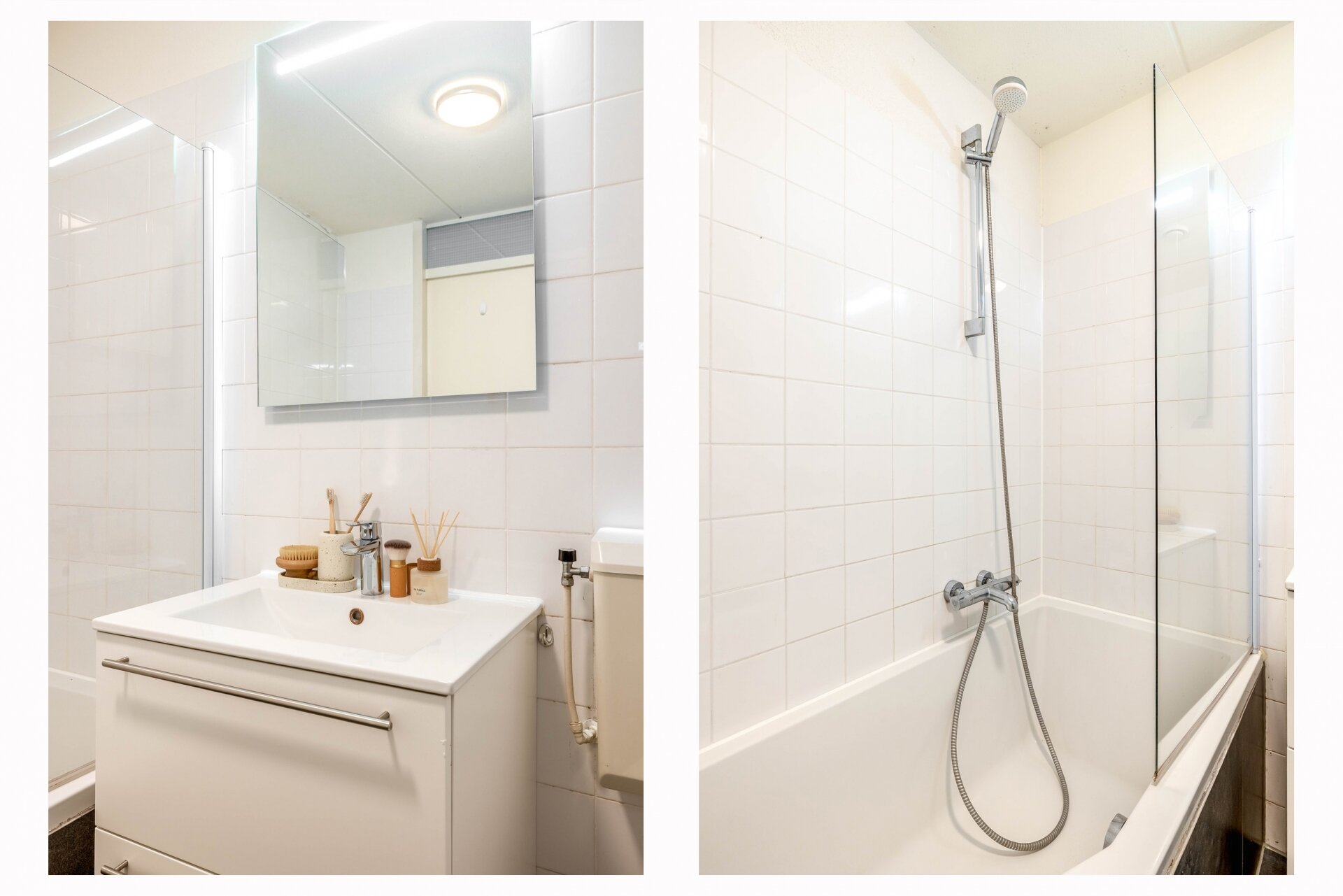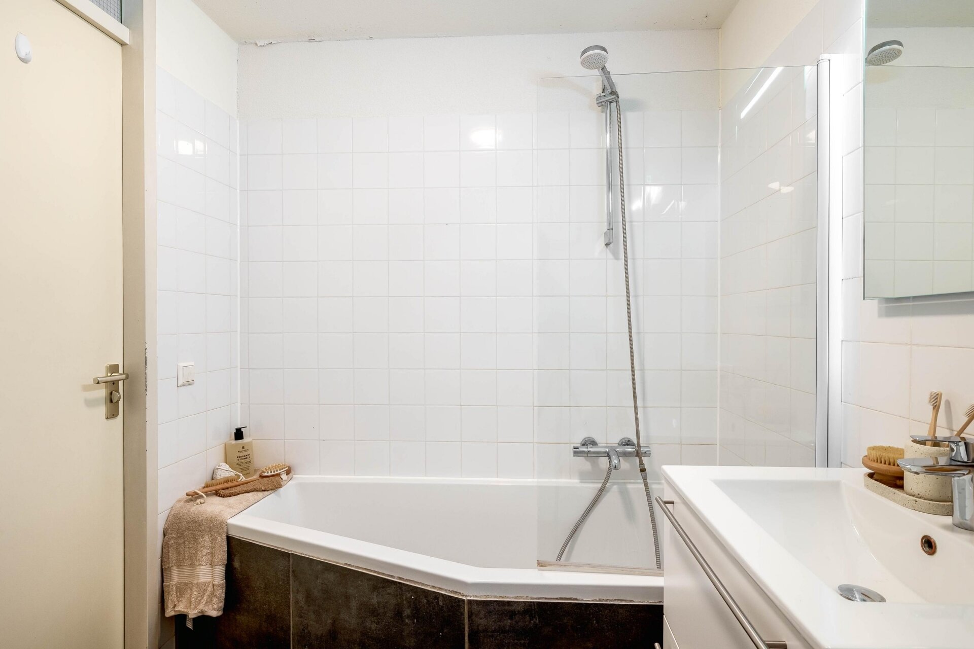 - De nette badkamer is voorzien van een toilet, wastafelmeubel en ligbad met douchescherm. Tevens is hier de opstelplaats voor de wasapparatuur;