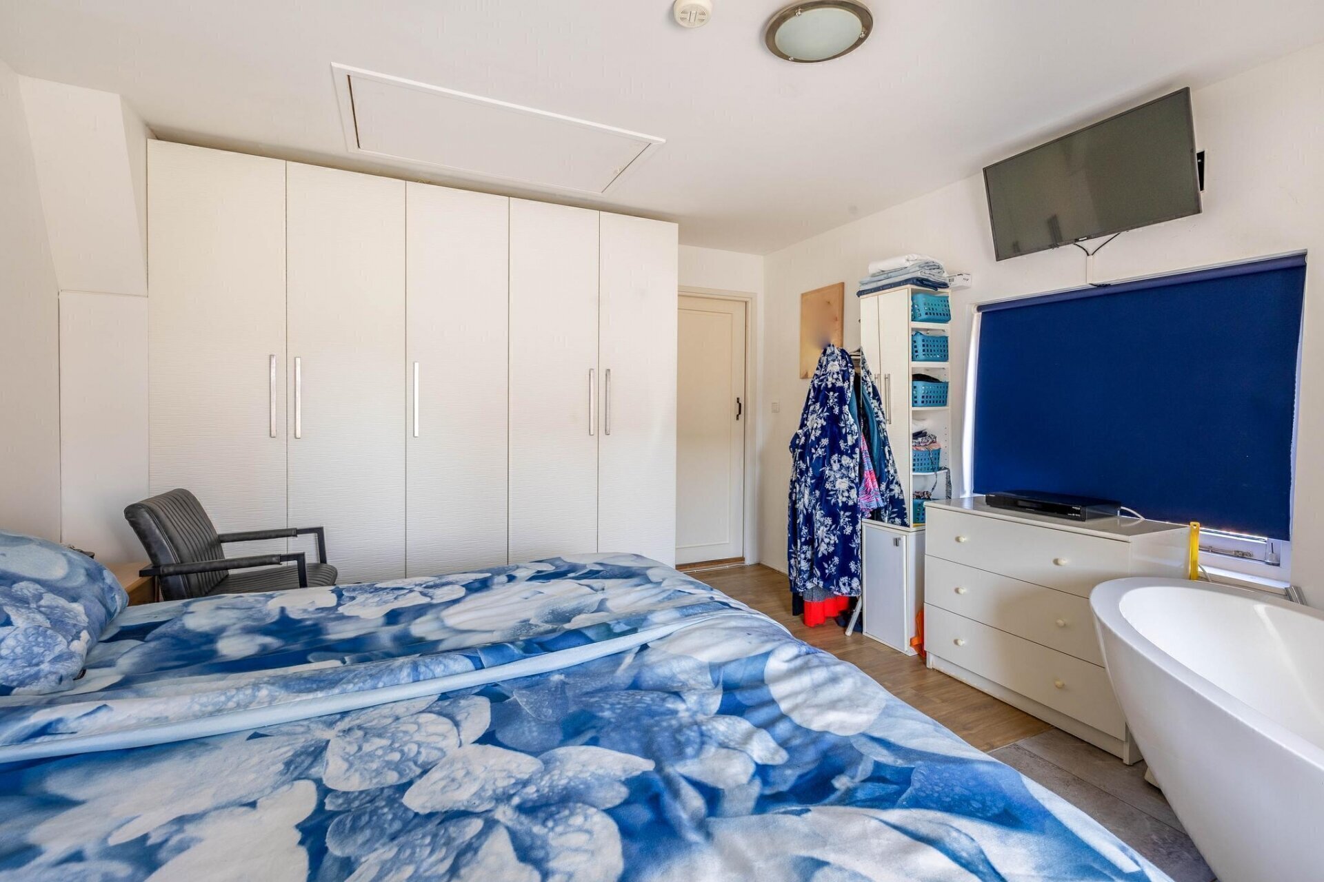 Slaapkamer 1: ruim aan de achterzijde gelegen met vrijstaand bad;