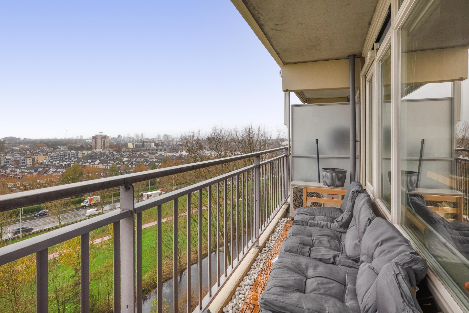 Het balkon is een fijne extra buitenruimte: op het zuidwesten gelegen en met een mooi uitzicht richting Rotterdam. Hier zit je heerlijk in de zon en geniet je van de rust en ruimte om je heen. Beneden in het gebouw beschik je bovendien over een eigen berging, ideaal voor het stallen van je fiets of het opbergen van spullen die je niet dagelijks nodig hebt.