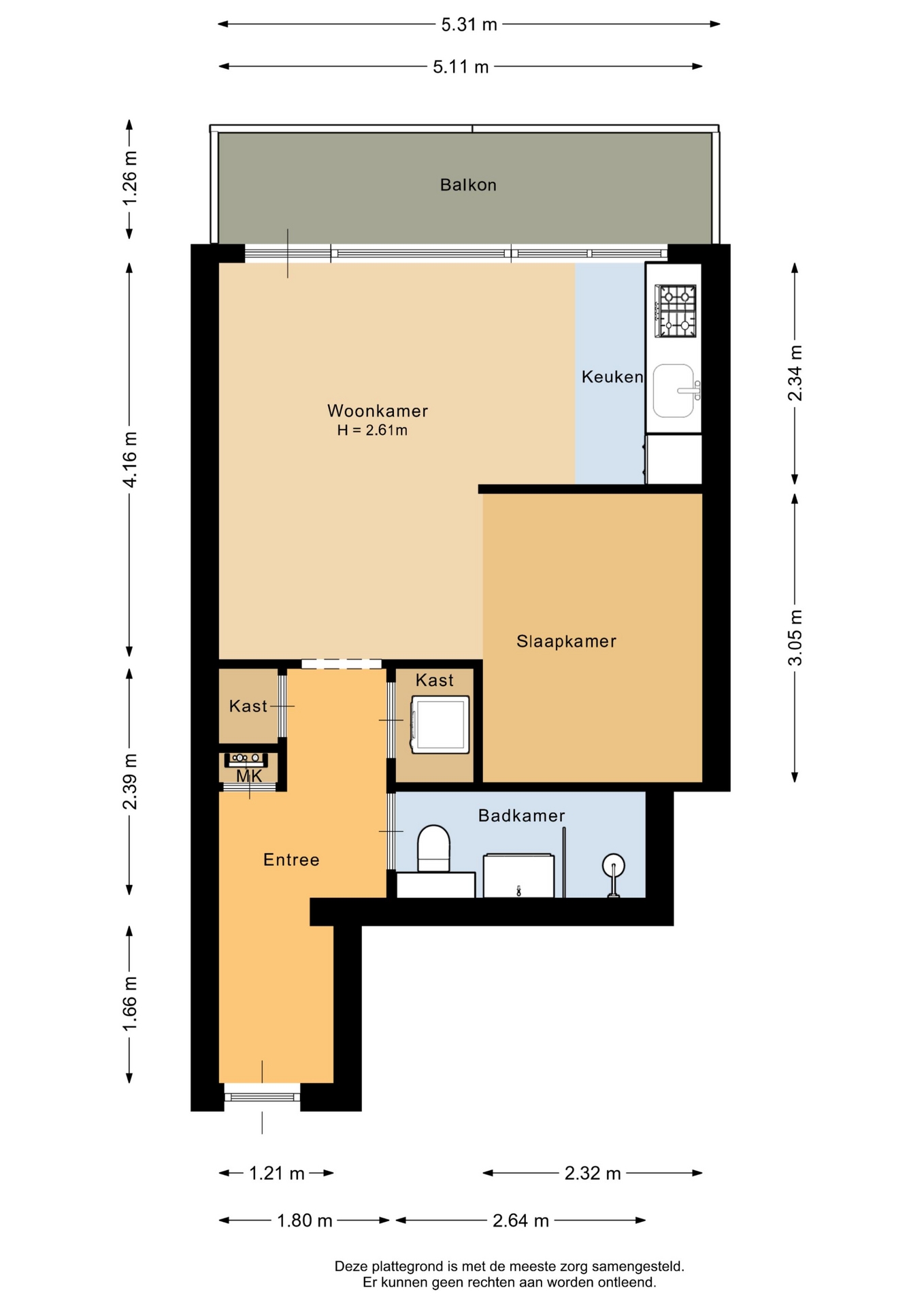 “Deze informatie is door ons met de nodige zorgvuldigheid samengesteld. Onzerzijds wordt echter geen enkele aansprakelijkheid aanvaard voor enige onvolledigheid, onjuistheid of anderszins, dan wel de gevolgen daarvan. Alle opgegeven maten en oppervlakten zijn indicatief.”