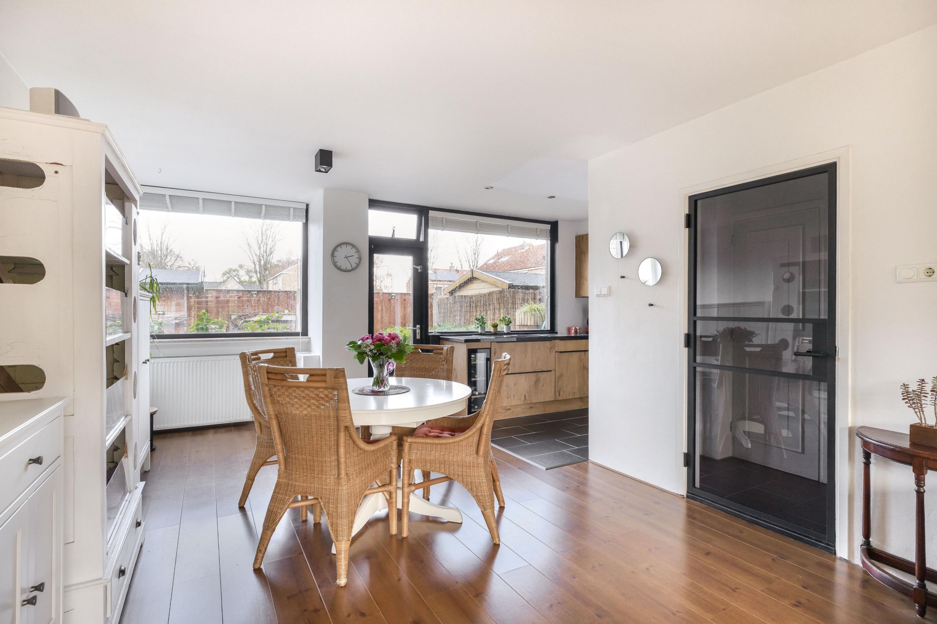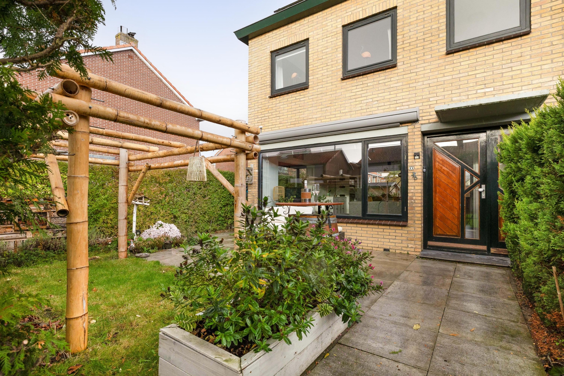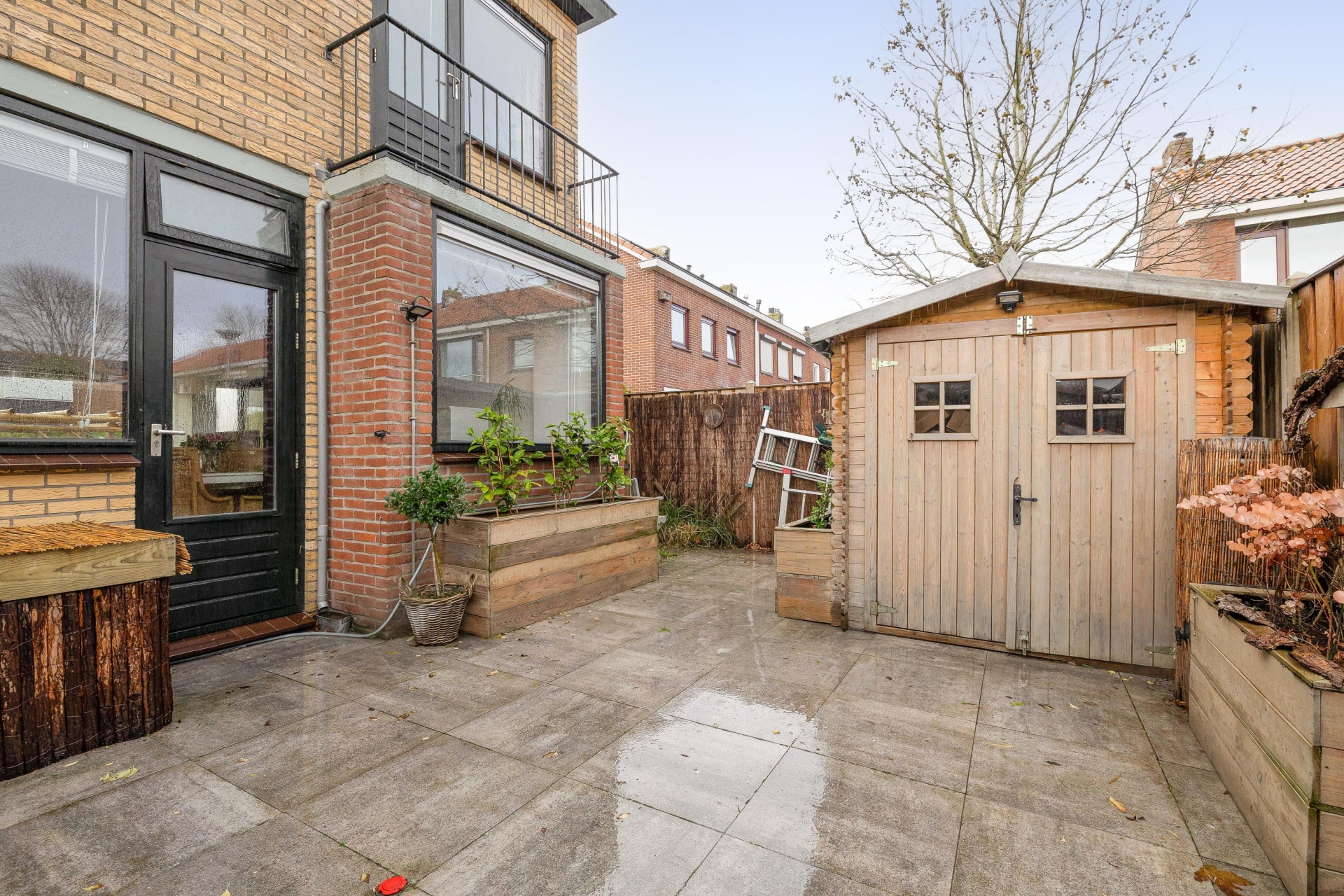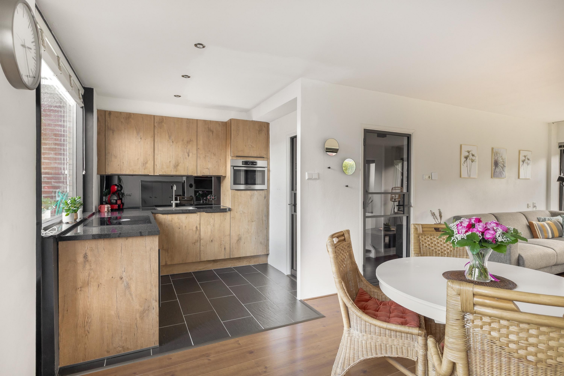 De woonkamer is ruim opgezet en heerlijk licht door de ramen, de erker en de glazen binnendeuren. Doordat het een hoekwoning betreft heb je net wat meer privacy en lichtinval dan gemiddeld. De open keuken aan de tuinzijde maakt de begane grond tot een fijne, open leefruimte. Vanuit de keuken heb je toegang tot de achtertuin op het noordoosten, waar je 's ochtends heerlijk in de zon kunt ontbijten. Aan de voorzijde ligt een goed onderhouden voortuin op het zuidwesten, perfect voor een borrel in de avondzon. Het terras heeft een automatisch bedienbaar zonnescherm met ingebouwde verlichting. Achterin de tuin staat een vrijstaande berging (voorzien van electra) voor je fietsen en gereedschap.