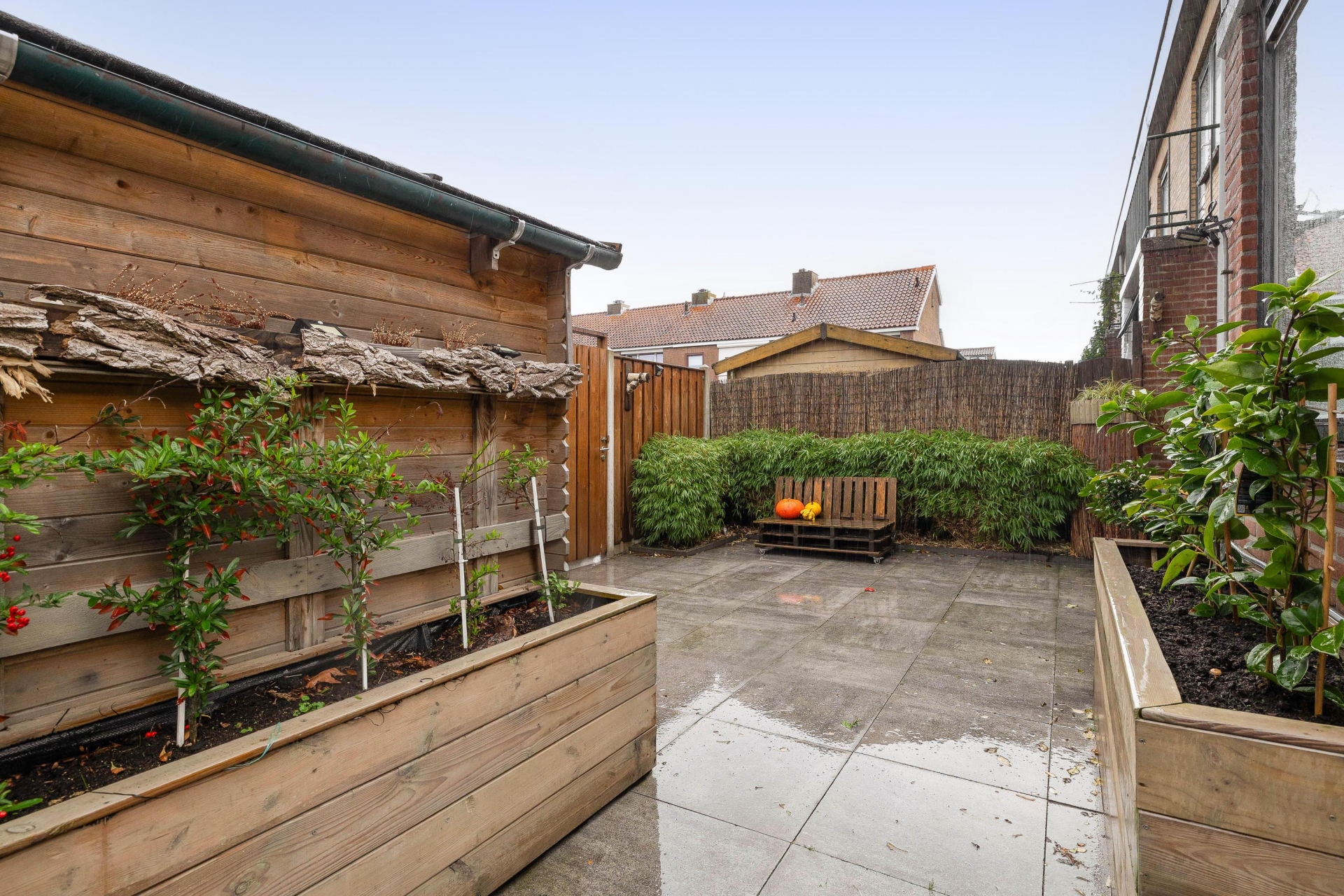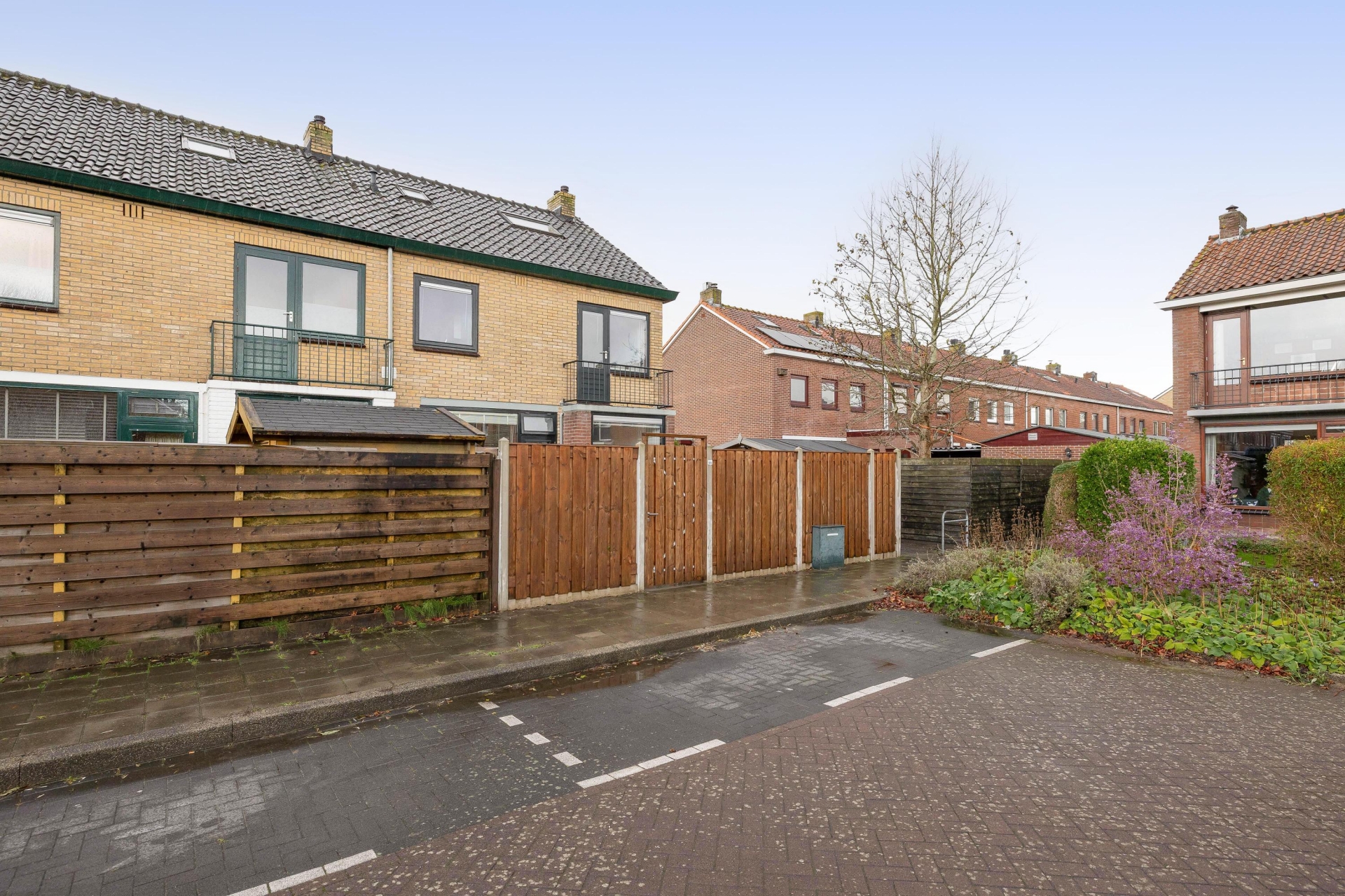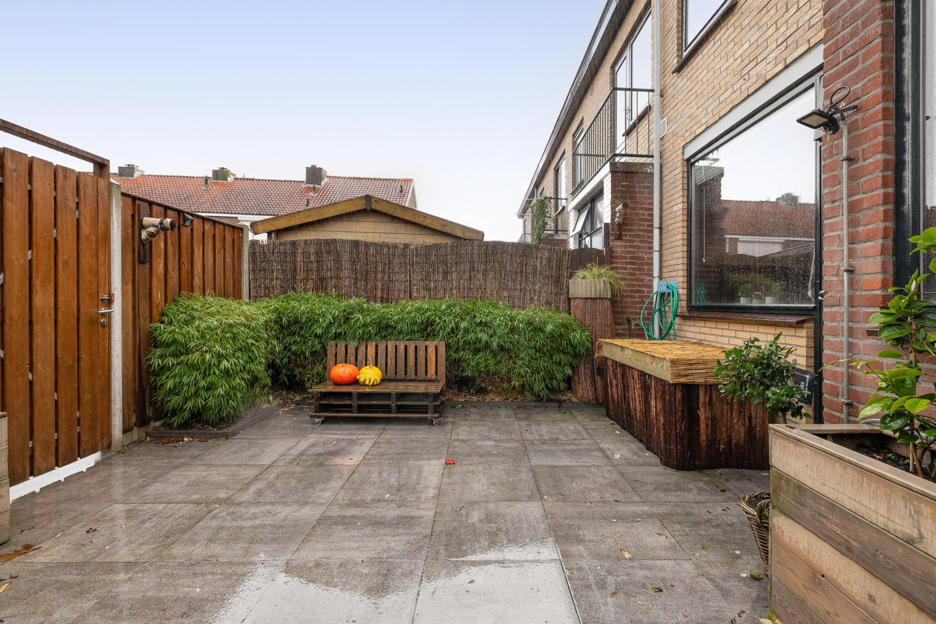 De achtertuin heeft een houten schutting (2022, geschilderd 2024). Voor -en achtertuin zijn met elkaar verbonden middels een pad langs de zijkant van het huis.