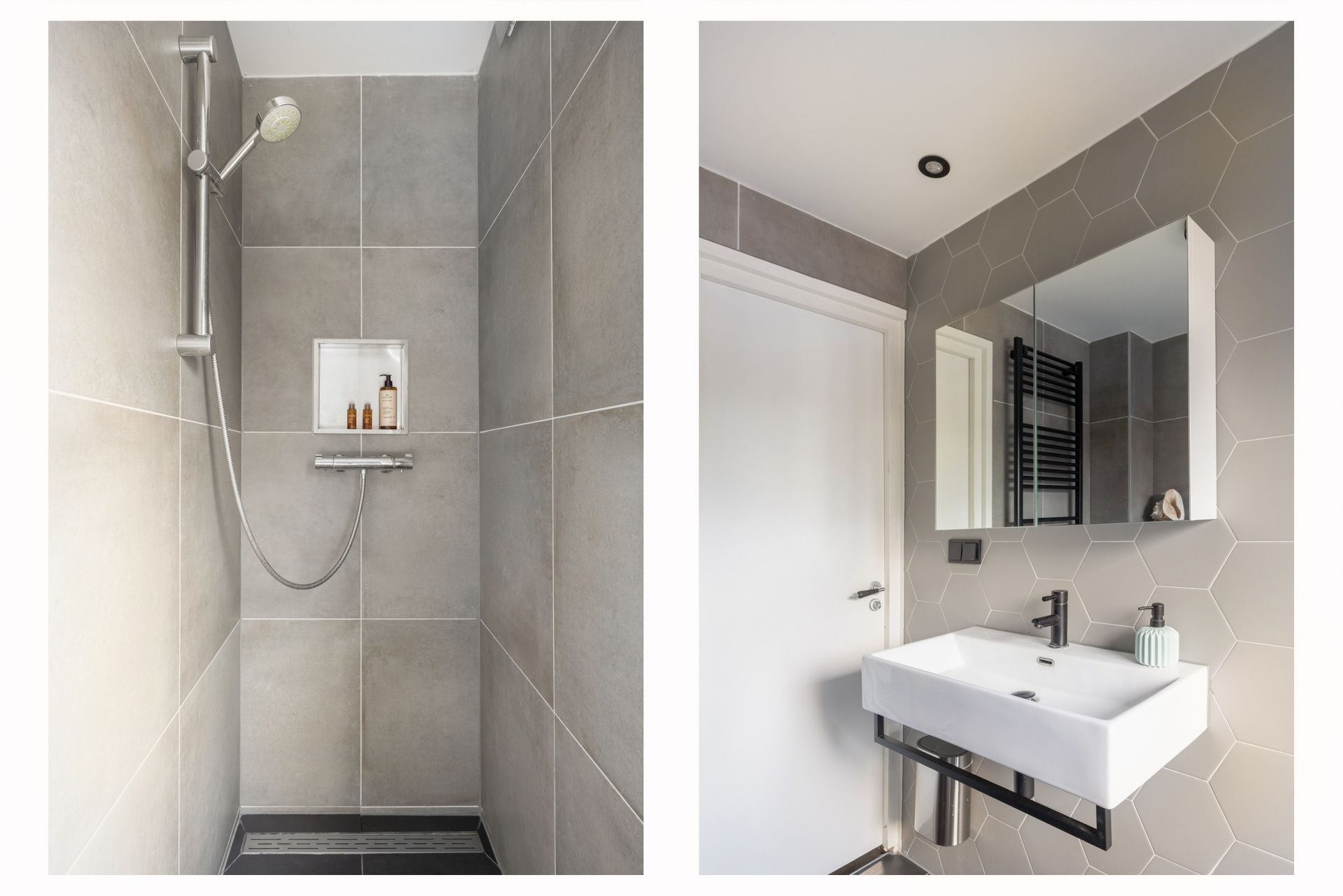 Deze hoekwoning is tussen 2021 en 2022 vrijwel volledig gemoderniseerd. De keuken, badkamer en toilet zijn vernieuwd, wanden en vloeren strak afgewerkt en alles voelt fris en verzorgd aan. De keuken aan de achterzijde is praktisch ingedeeld en voorzien van whirlpool vaatwasser, koelkast, combi/magnetron, bora inductiekookplaat met afzuiging, wijnkoeler en een afgewerkt met een natuursteen aanrecht. Een fijne plek waar je kookplezier en gezelligheid moeiteloos combineert. De badkamer op de eerste verdieping is in 2022 vernieuwd en ingericht met een inloopdouche, wastafel, toilet en whirlpool bad. Dankzij de neutrale kleurstelling sluit het helemaal aan op de rest van het huis.