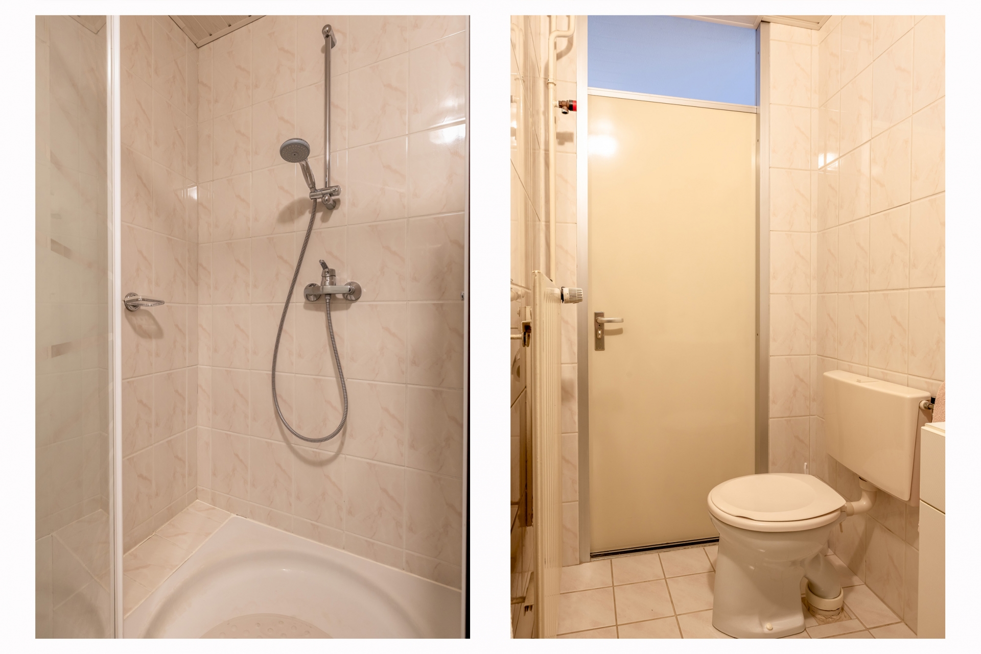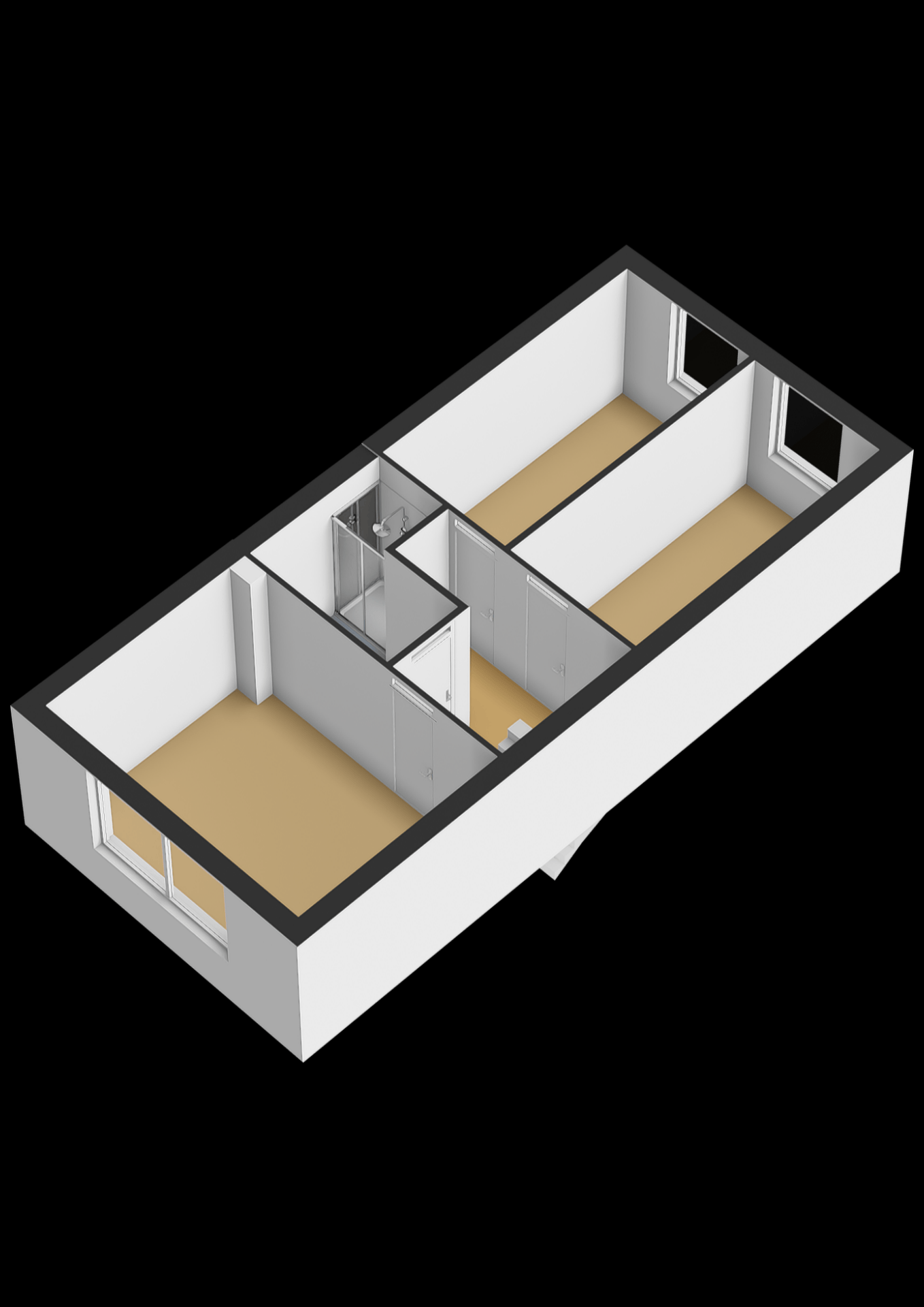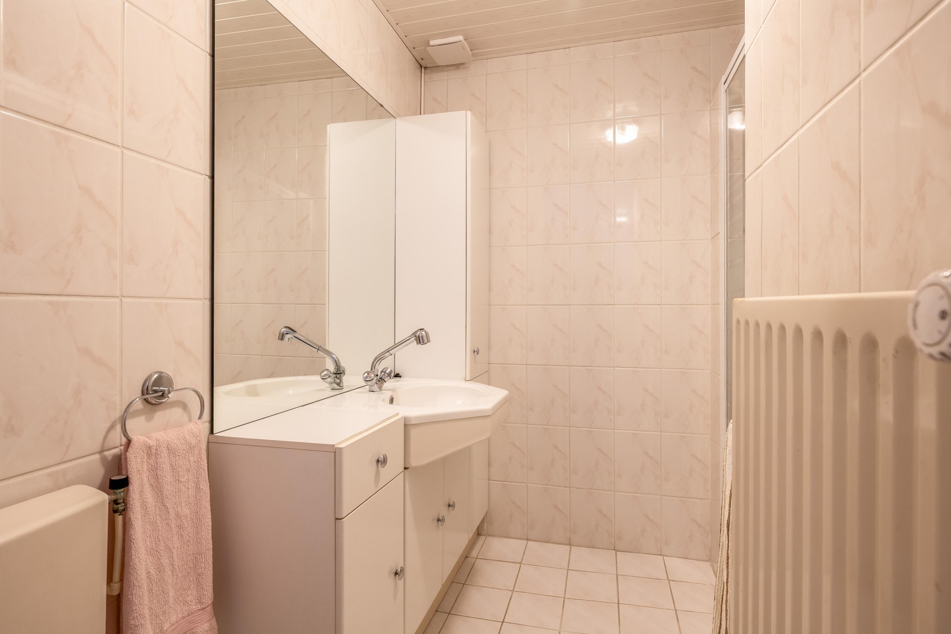 Centraal op deze verdieping ligt de badkamer, praktisch ingericht met douche, wastafel en toilet. Alles is compact maar functioneel, precies wat je nodig hebt voor dagelijks comfort. De overloop verbindt alle ruimtes en geeft toegang tot de trap naar de tweede verdieping.