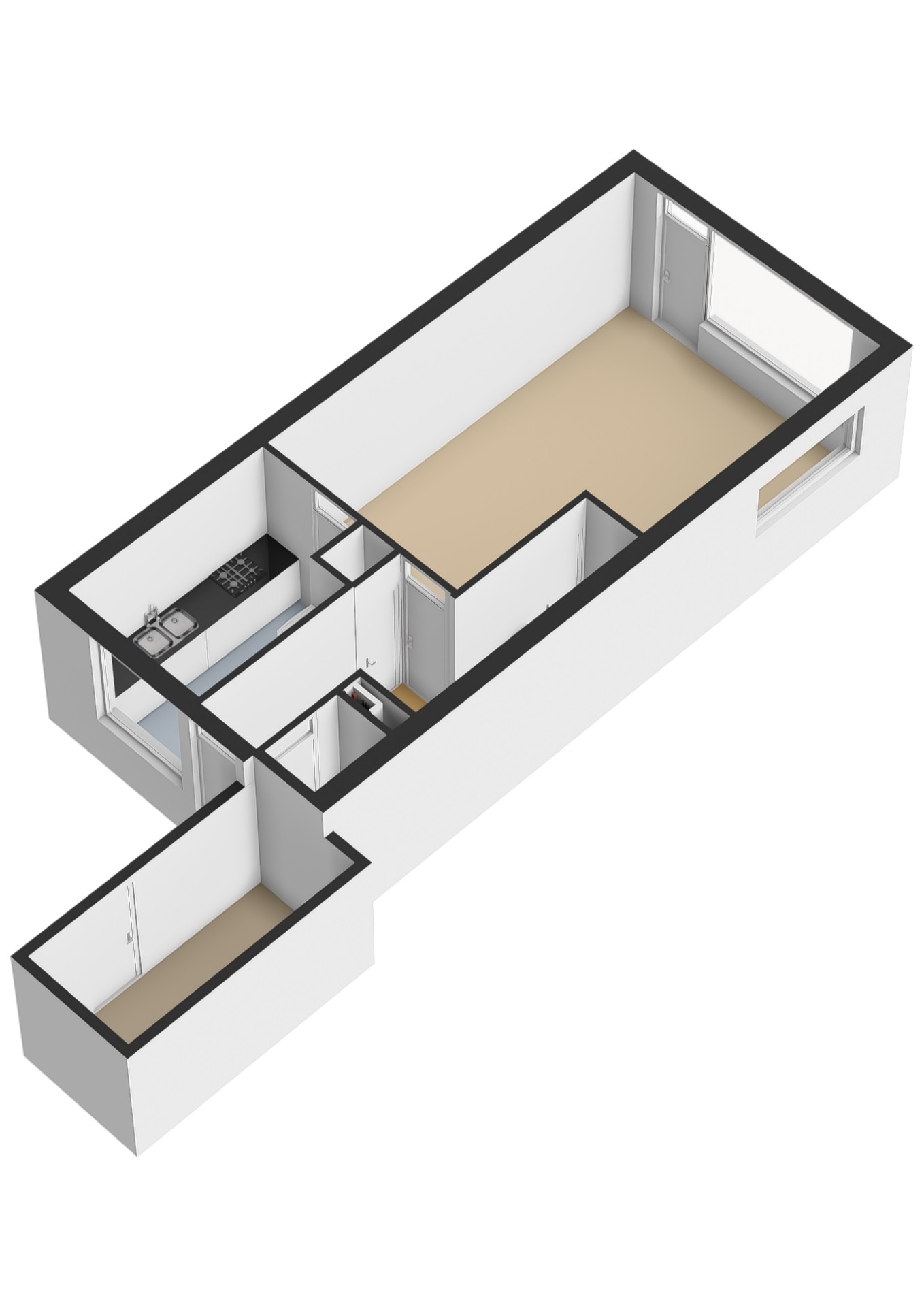 We beginnen op de begane grond, waar de indeling logisch en praktisch is opgezet. Via de entree met meterkast, trapopgang en toilet kom je in de woonkamer. De woonkamer is ruim van opzet en profiteert volop van de hoekligging, waardoor het daglicht mooi naar binnen valt. Er is voldoende ruimte voor een comfortabele zithoek én een eettafel, waardoor dit een fijne plek is om samen te komen.